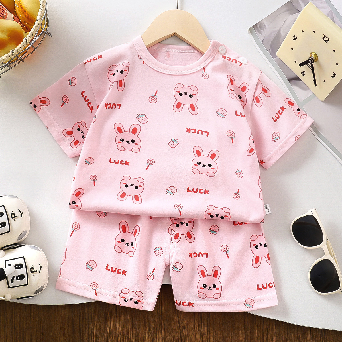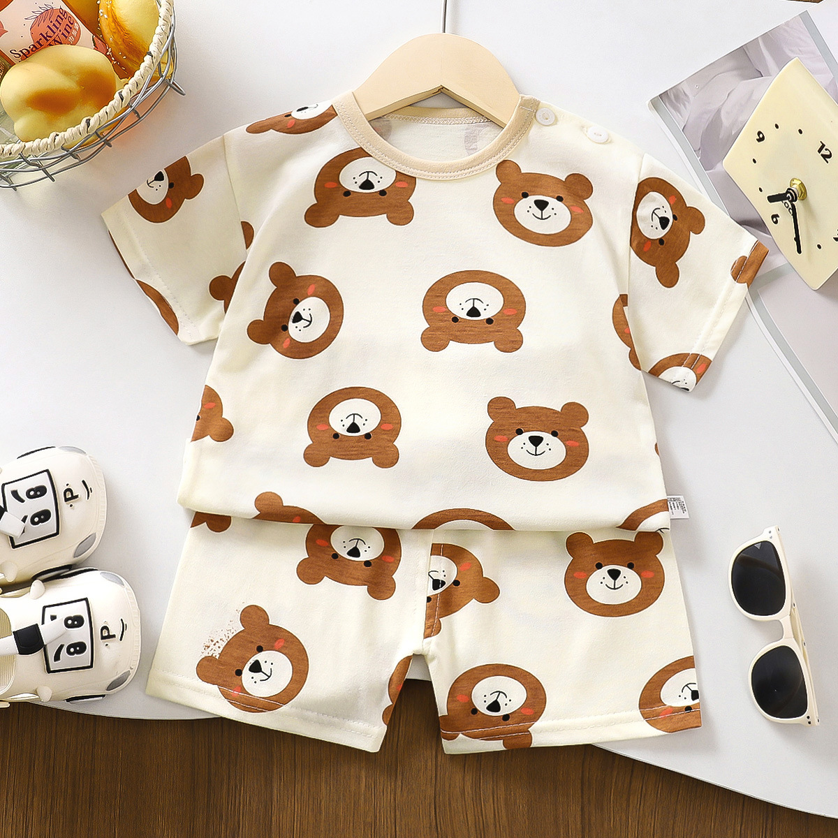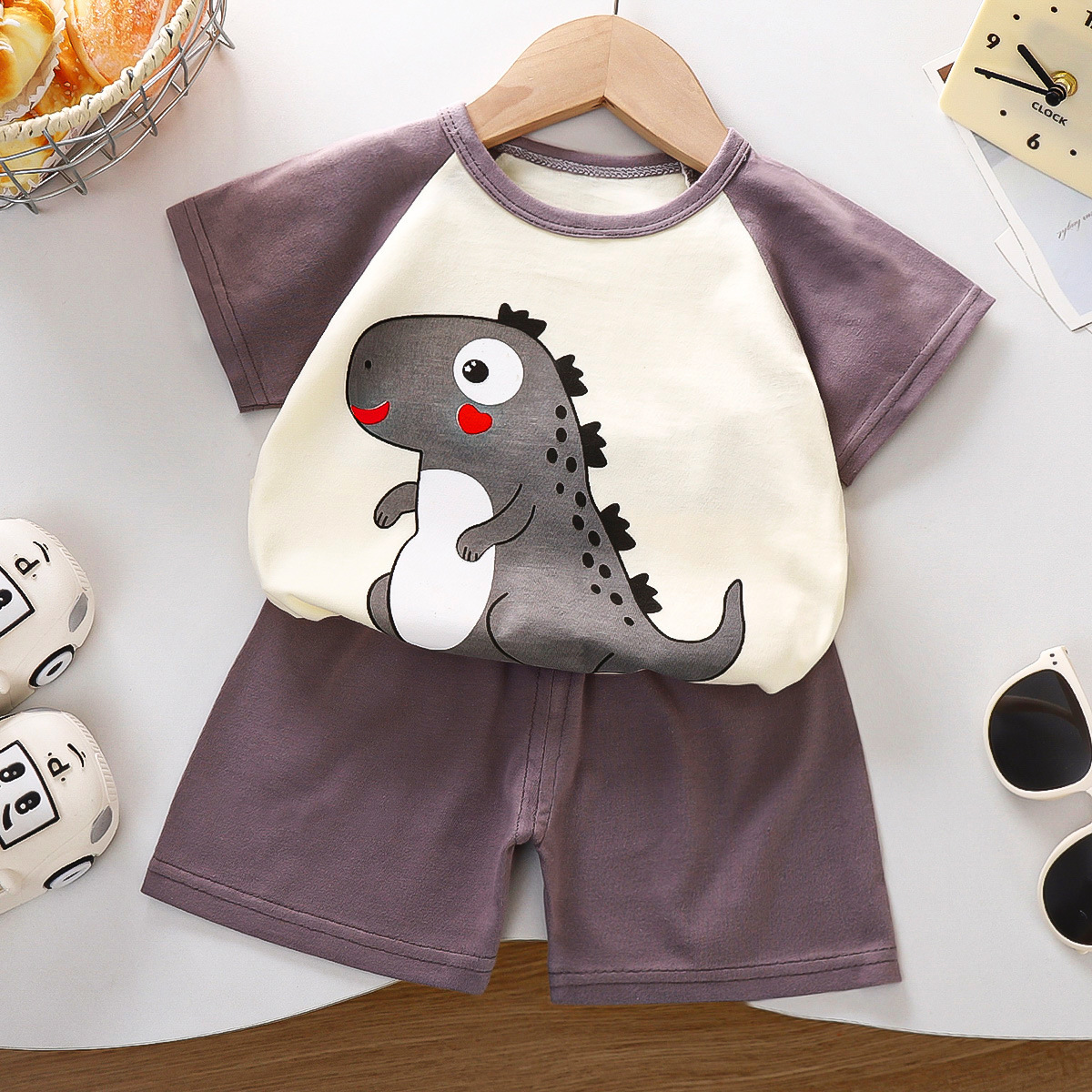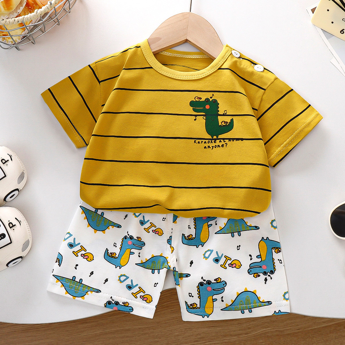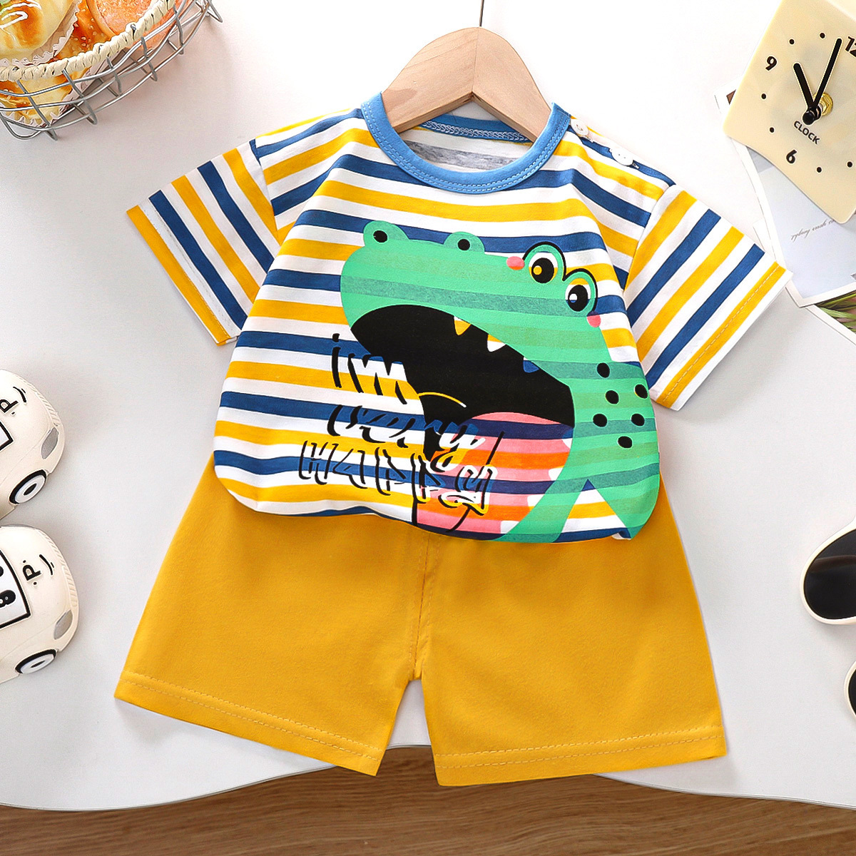 여름 새 면 어린이 반팔 세트 한국식 소년 반바지 아기를위한 얇은 아동복 소녀 여름 옷스토어 가기