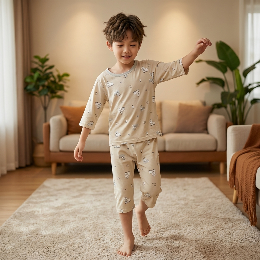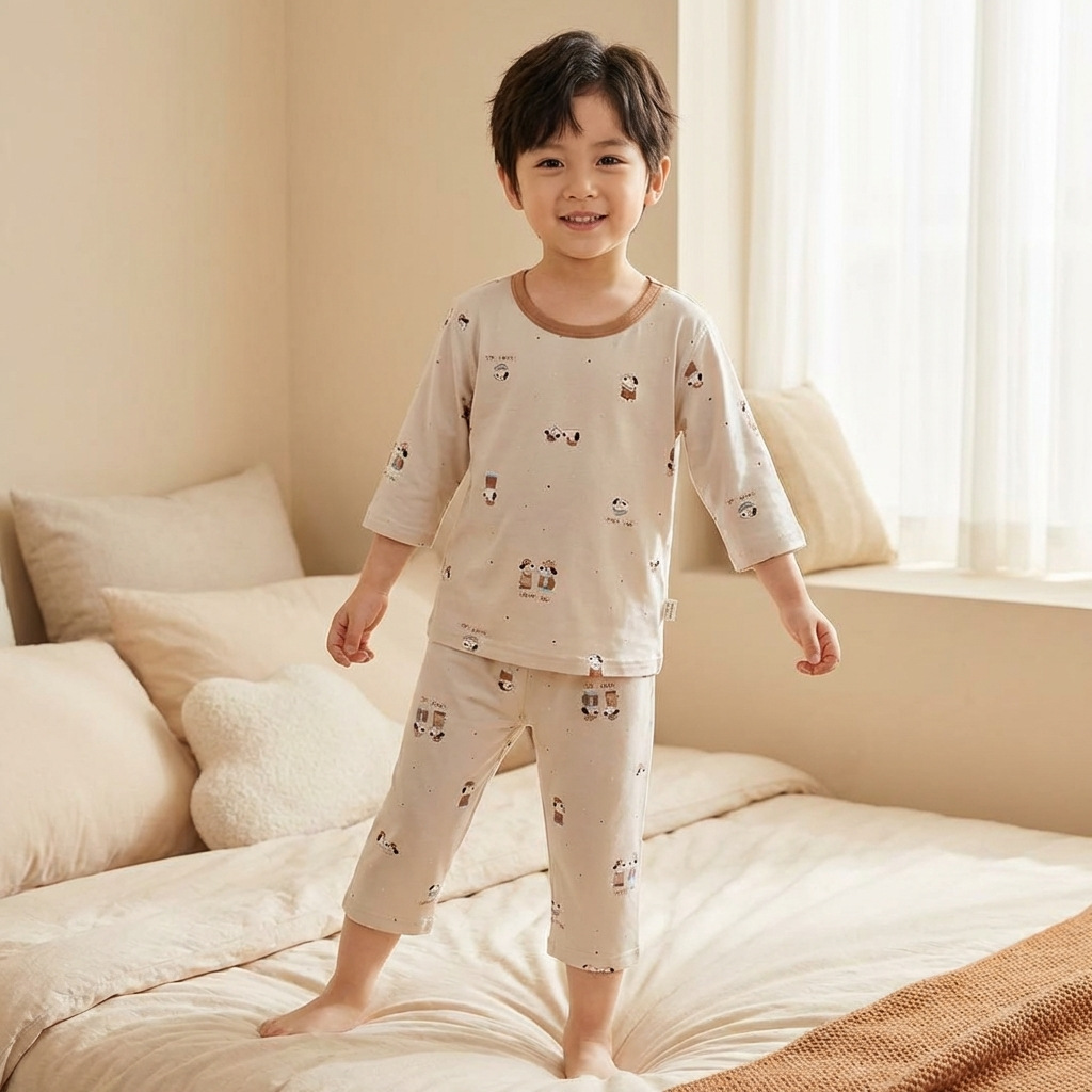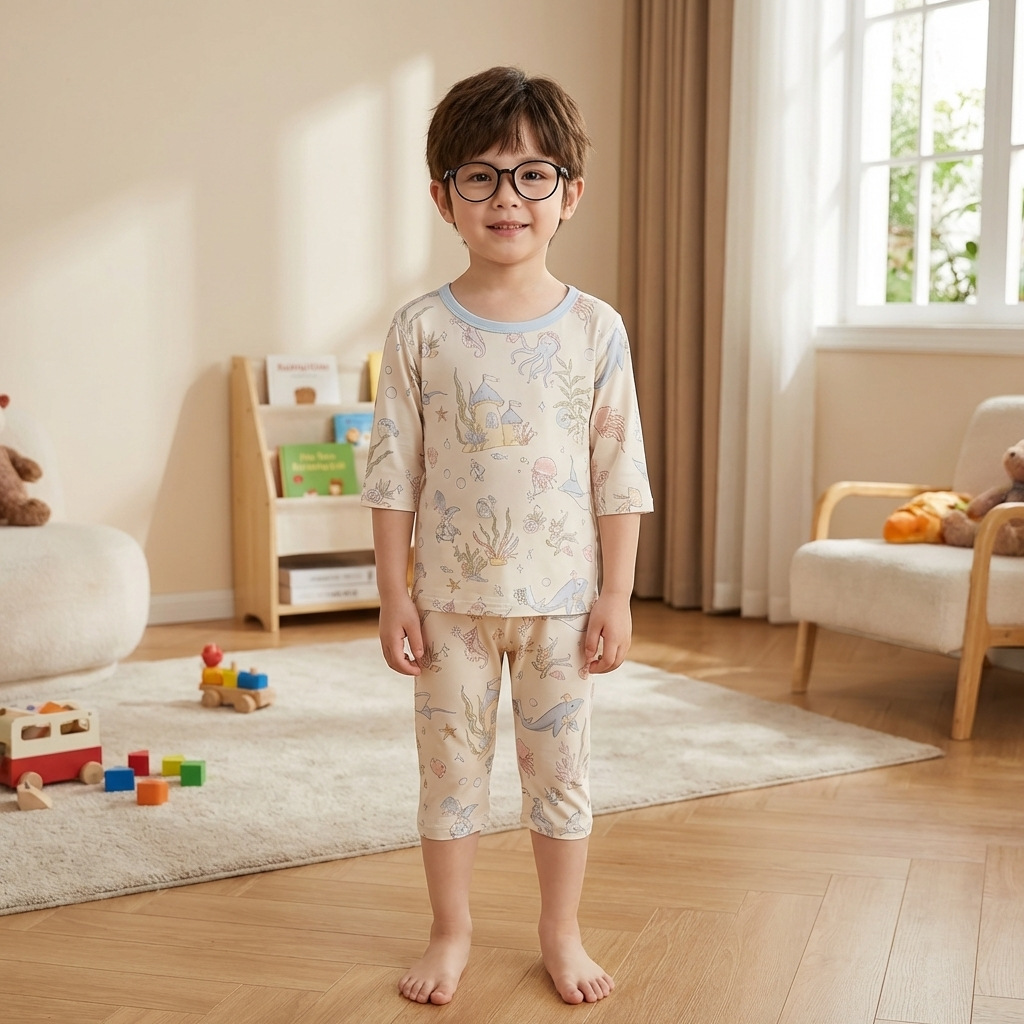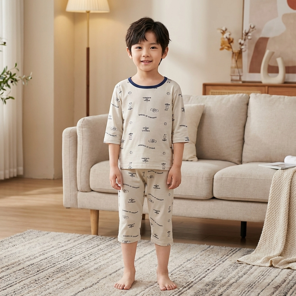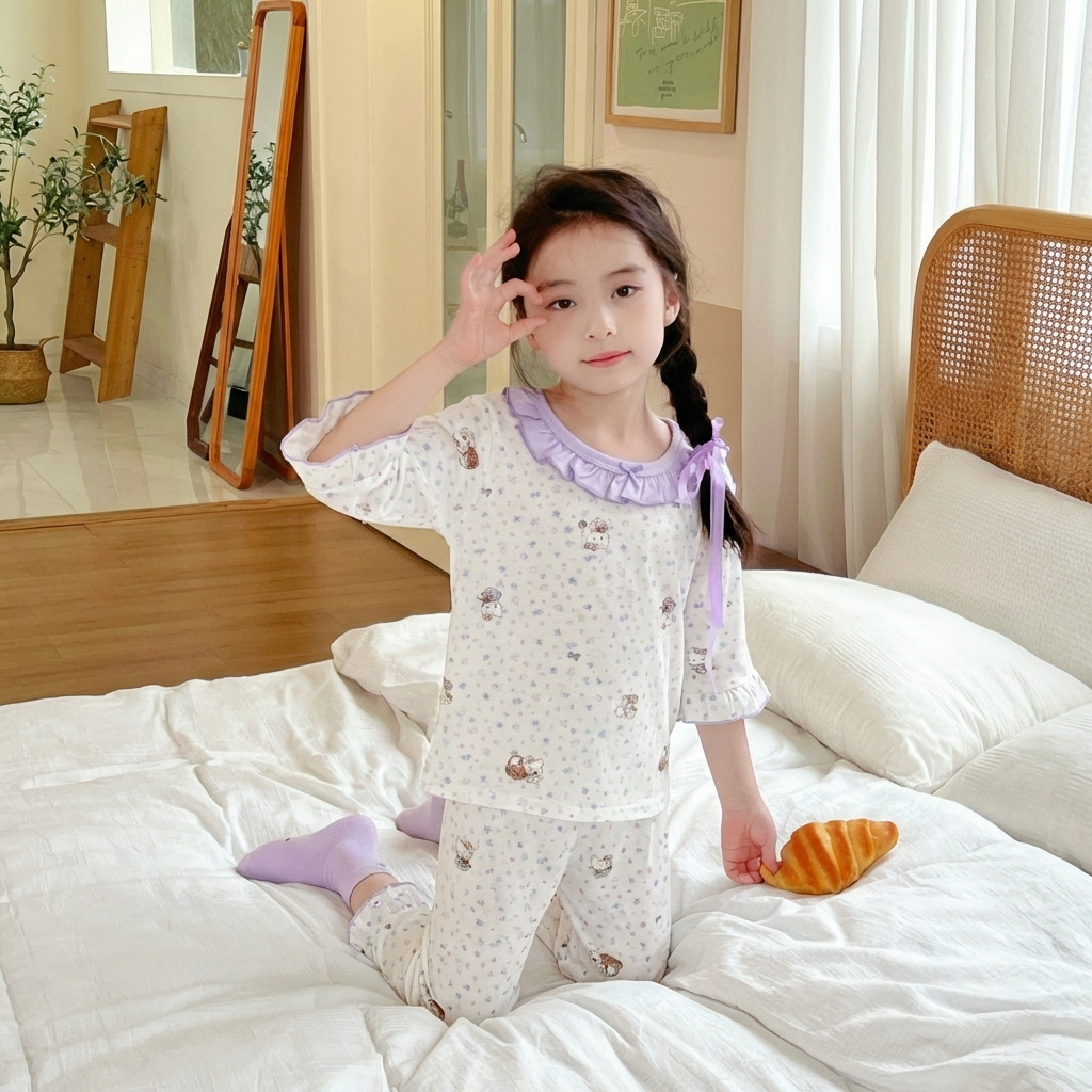 어린이 여름 얇은 잠옷 야셀 아기 에어컨 옷 소녀 7 점 슬리브 레이스 소녀 홈 의류 세트