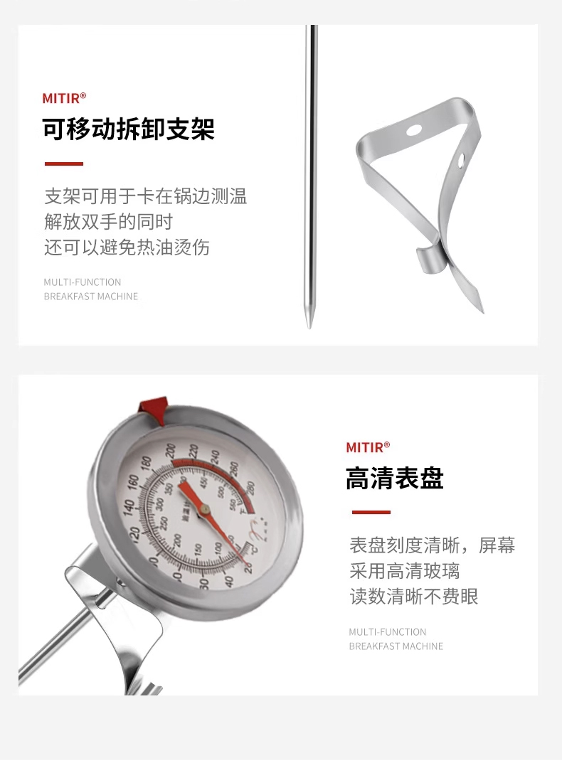 오일 온도 측정기 온도계 상업용 식품 주방 오일 온도 측정기 오일 프라이어 오일 온도 측정 바늘 가정용 프로브 유형