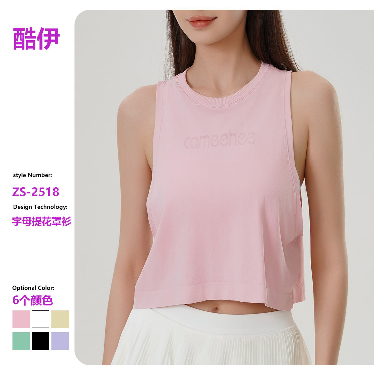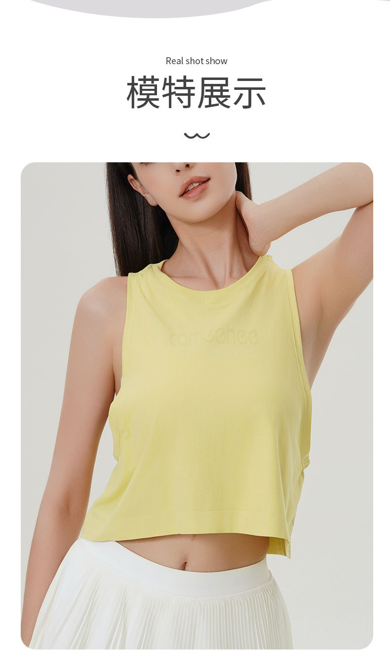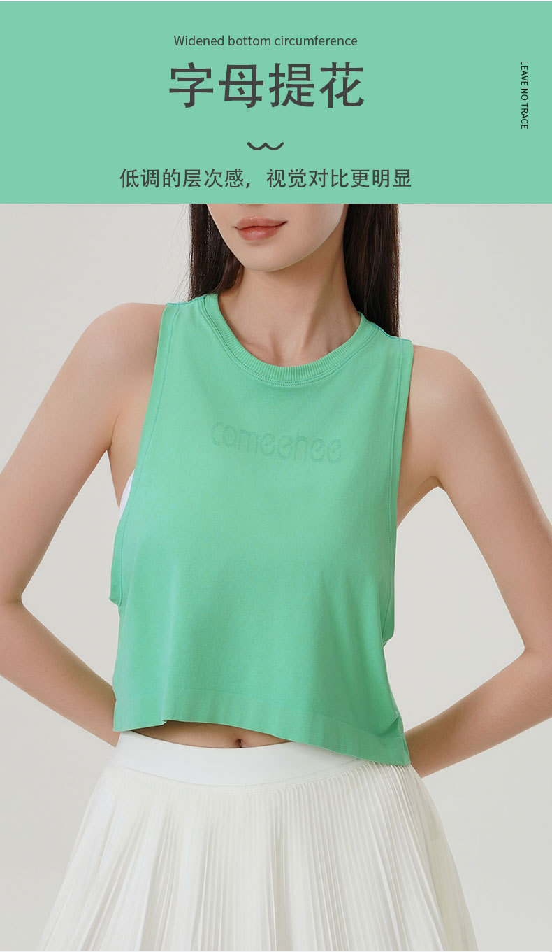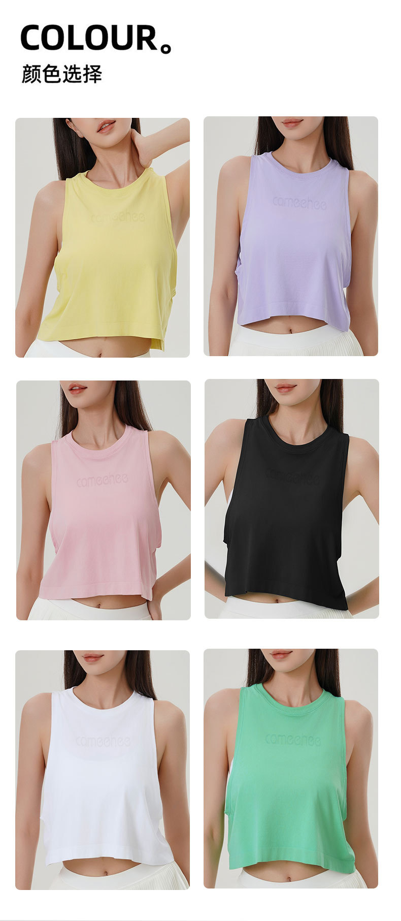 2025lulu 요가 피트니스 최고 빠른 건조 짧은 둥근 목 느슨한 편지 자카드 조끼 유행 스포츠 블라우스