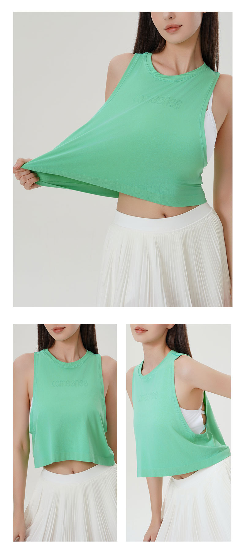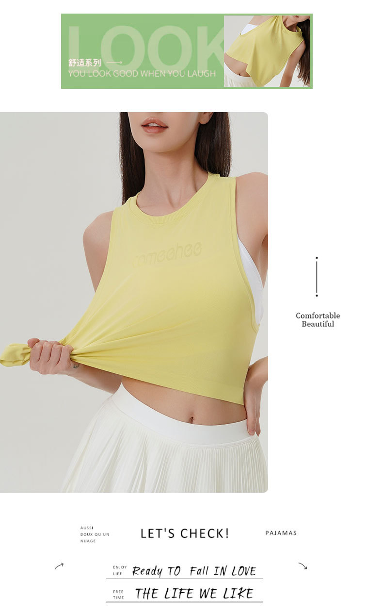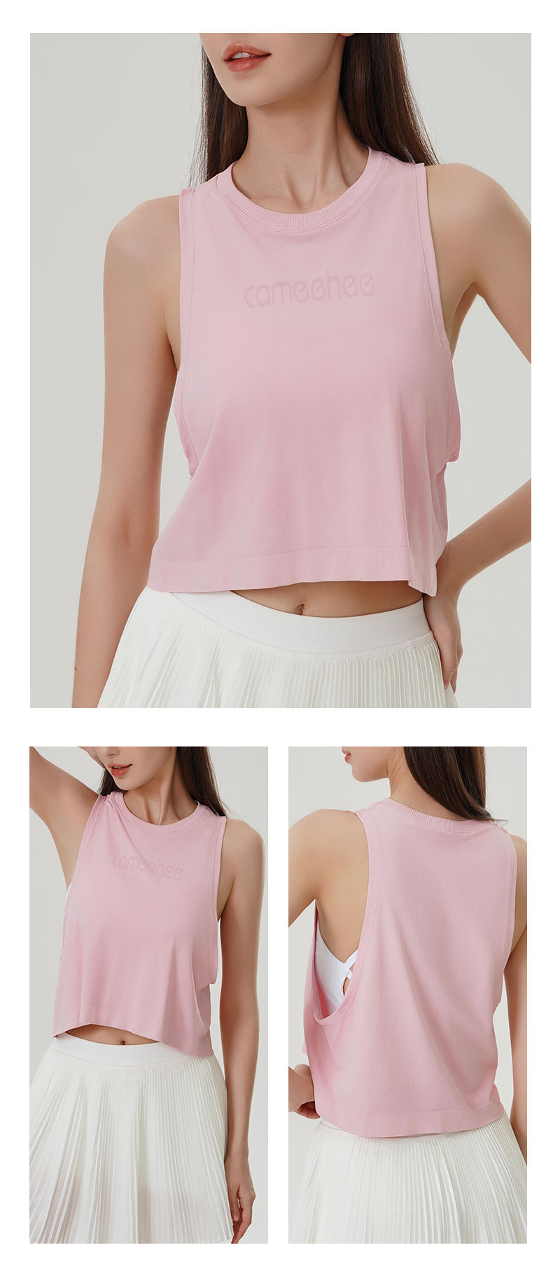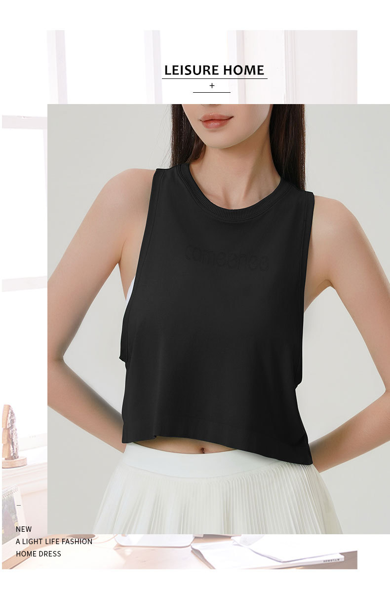 2025lulu 요가 피트니스 최고 빠른 건조 짧은 둥근 목 느슨한 편지 자카드 조끼 유행 스포츠 블라우스
