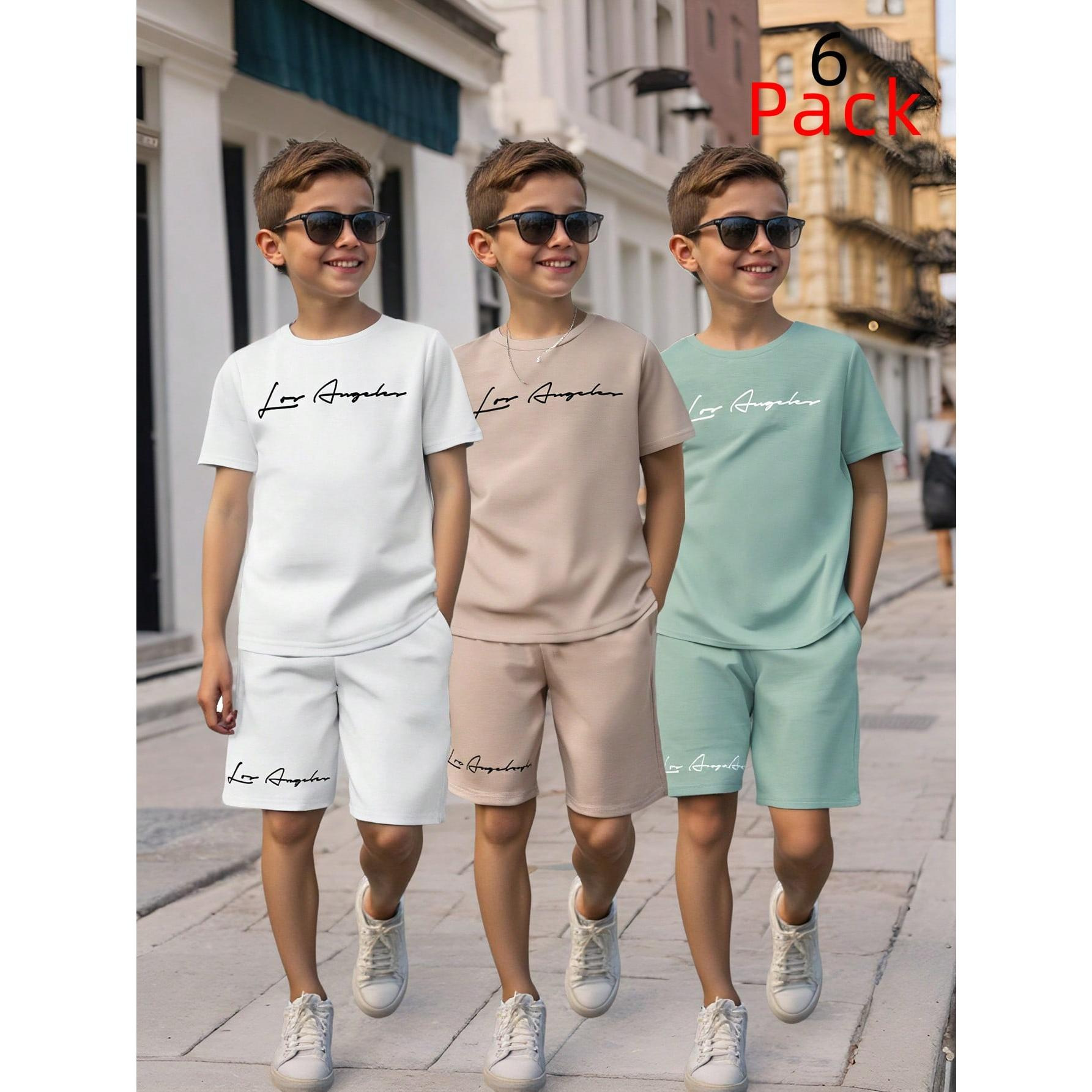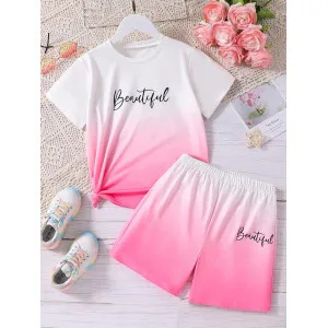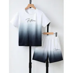여름 새 소년 하이 엔드 그라데이션 캐주얼 반팔 티셔츠 탑 반바지 투피스 슈트 RA01+RD02