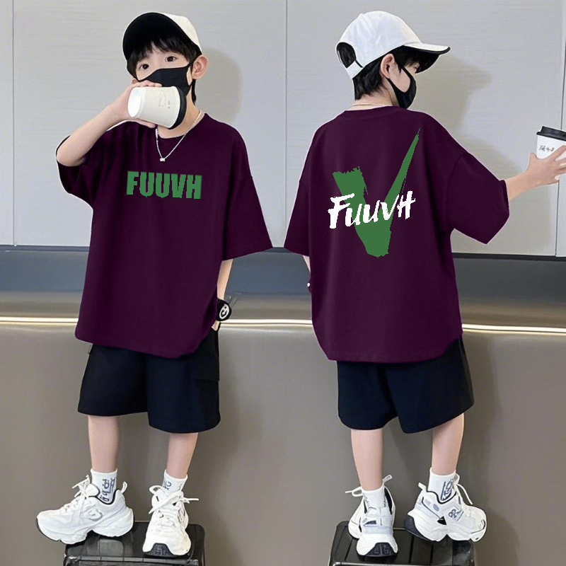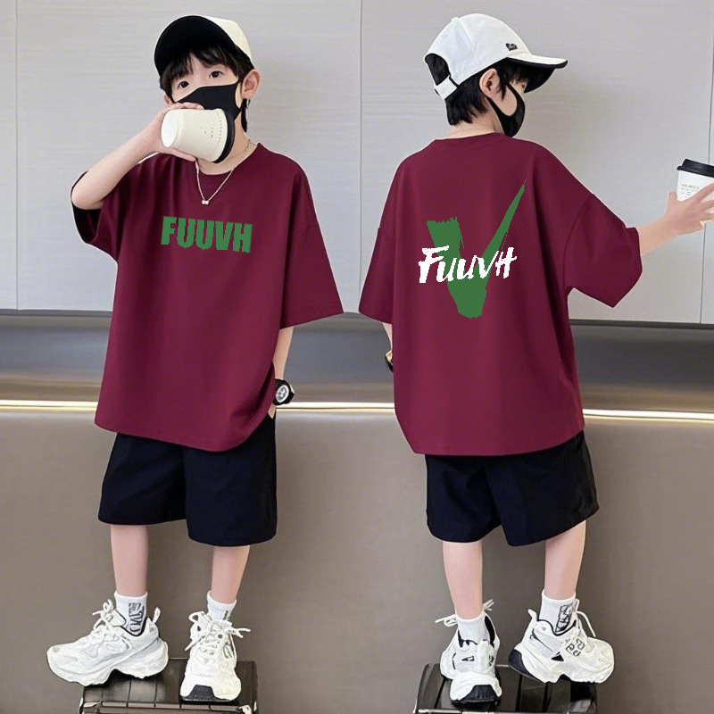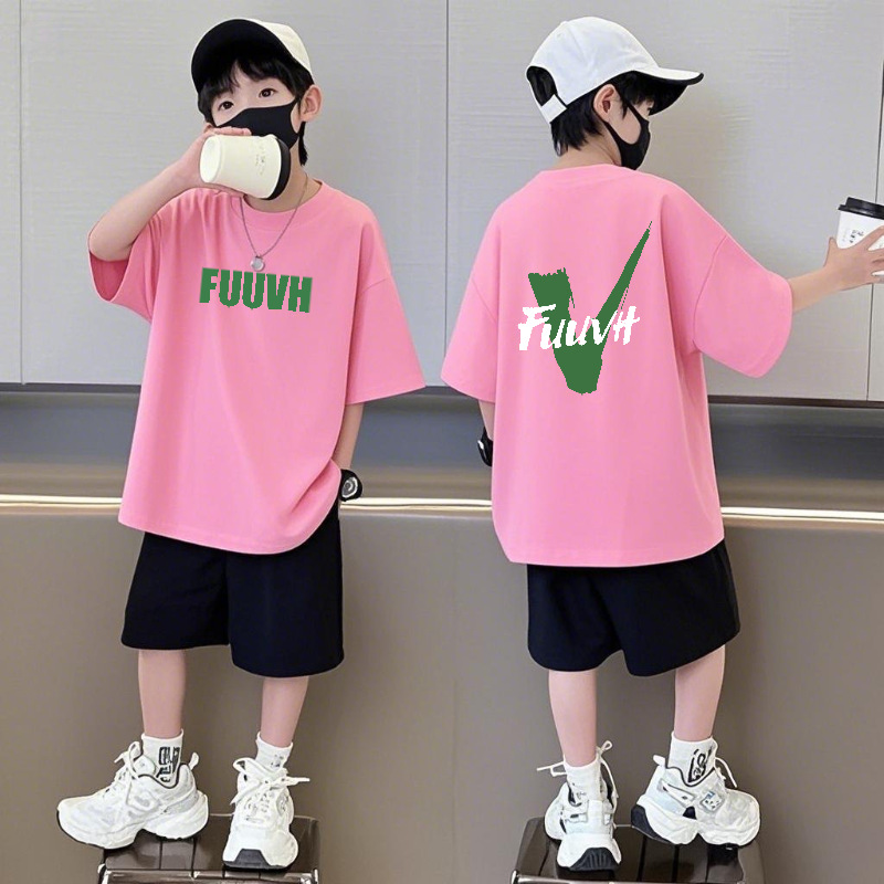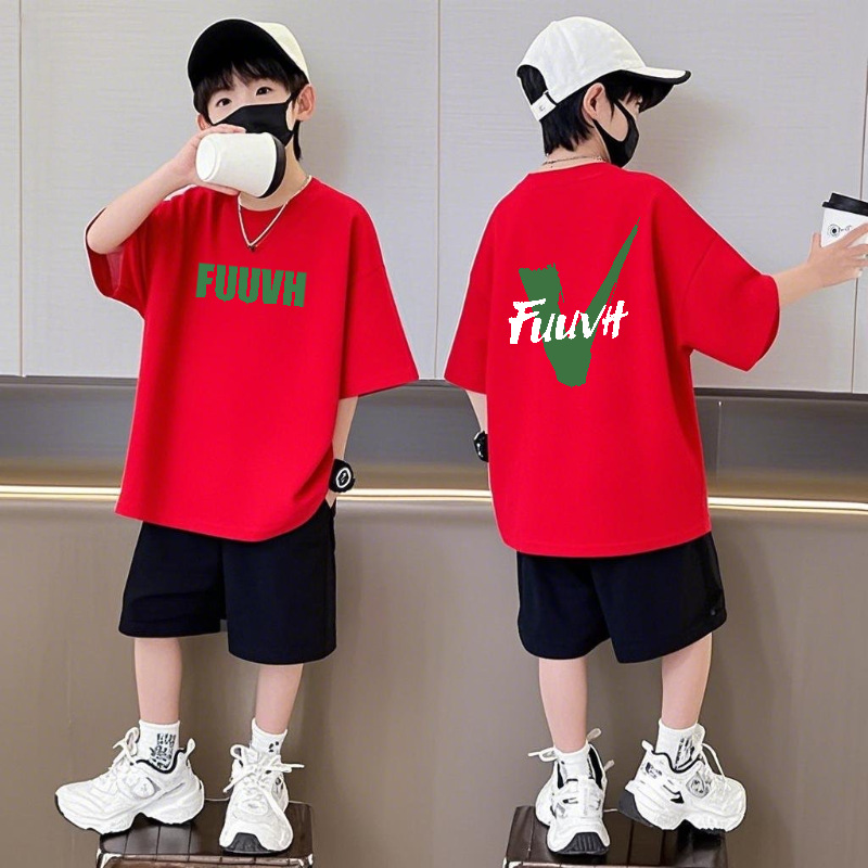 순수 코튼 반팔 반바지 소년 정장 캐주얼 패션 어린이 느슨한 라운드 넥 여름 새로운 중대형 어린이 투피스 세트