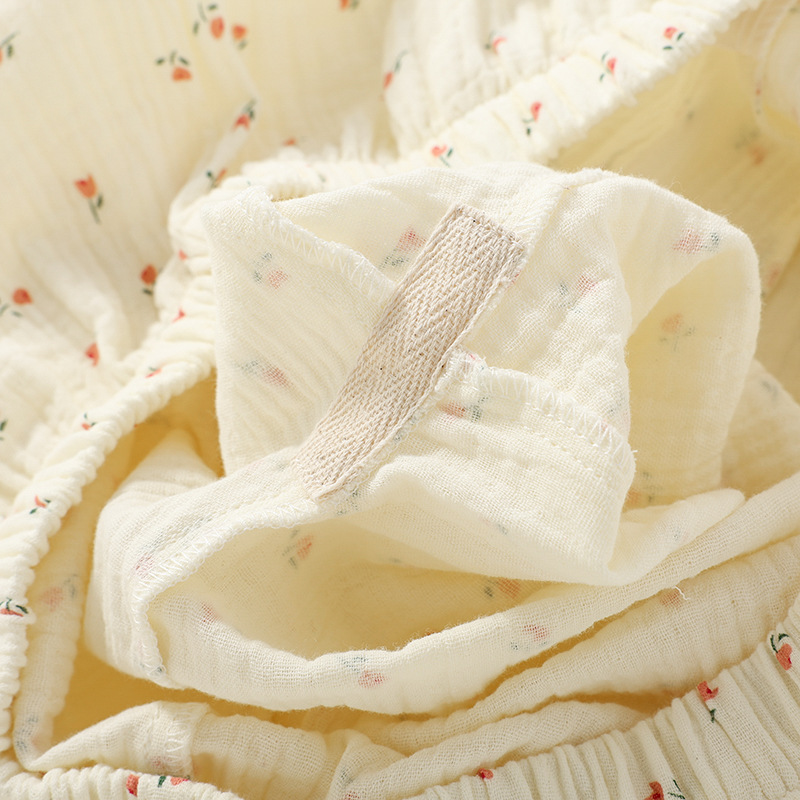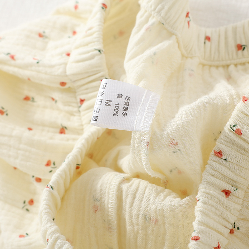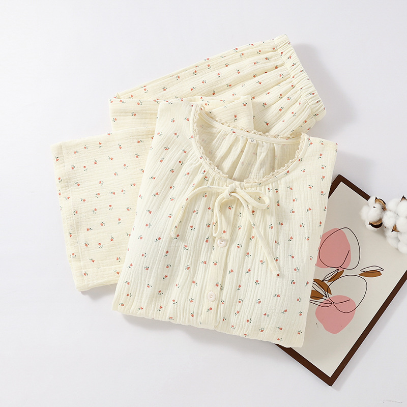 여성용 봄 가을 이중 순면 컵 소형 꽃무늬 크레이프 라운드넥 가디건 부드러운 여성 홈웨어 잠옷스토어 가기