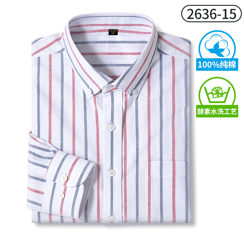 국경 간 순면 남성용 셔츠 봄과 가을 순면 체크 무늬 긴 소매 셔츠 피부 친화적 인 캐주얼 셔츠 남성 대외 무역