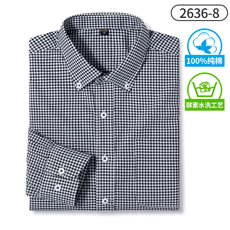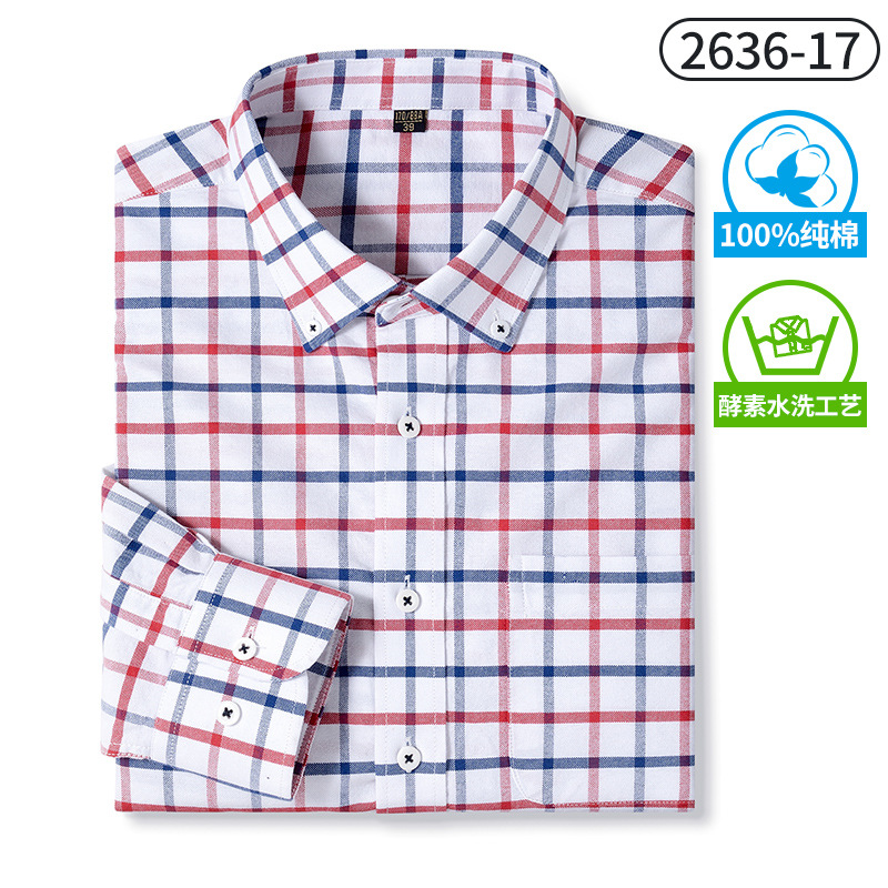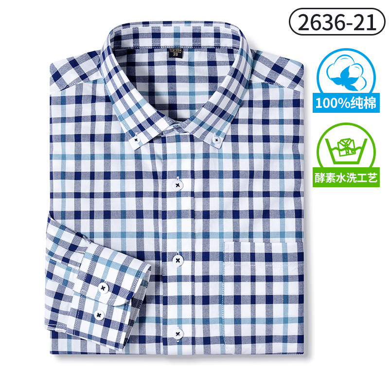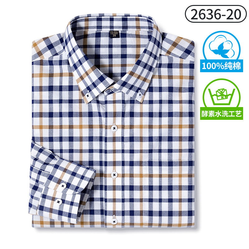 국경 간 순면 남성용 셔츠 봄과 가을 순면 체크 무늬 긴 소매 셔츠 피부 친화적 인 캐주얼 셔츠 남성 대외 무역스토어 가기