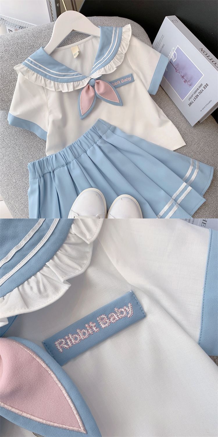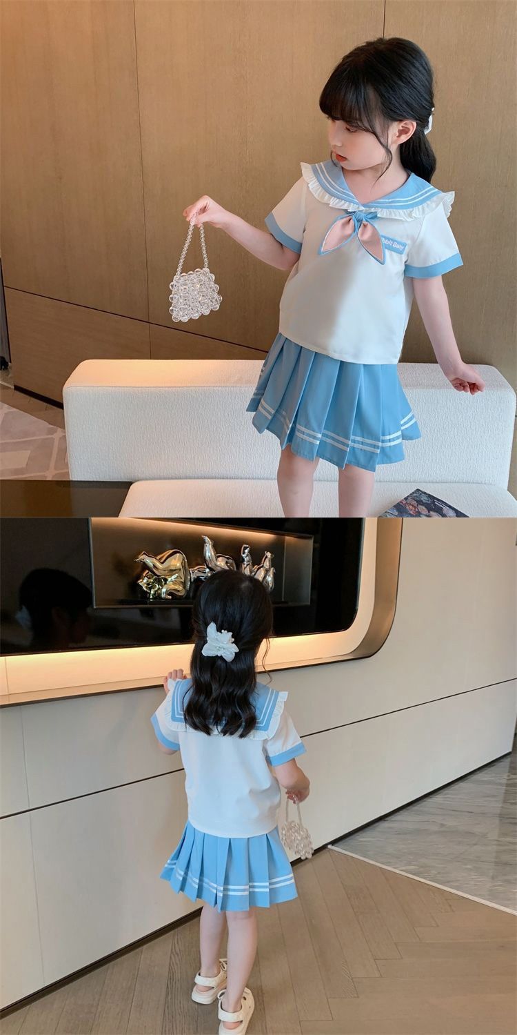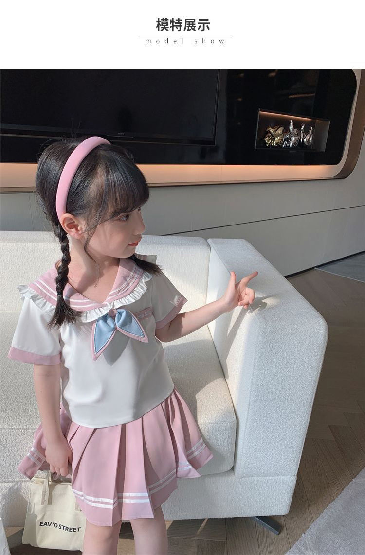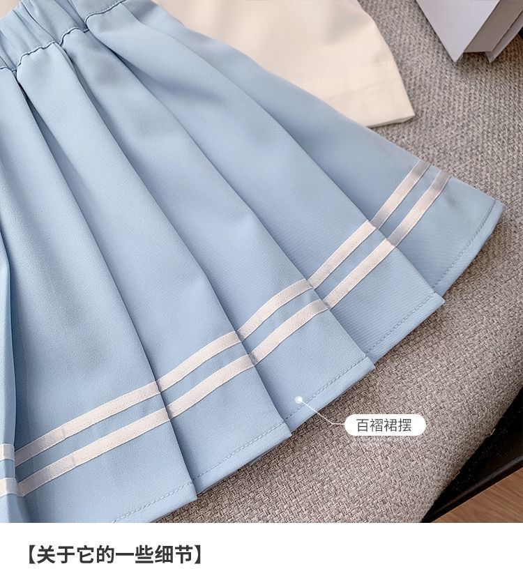 여자 대학 스타일 스커트 여름 어린이 JK 정장 2025 새로운 스타일 여자 셔츠 주름 치마 투피스 세트스토어 가기