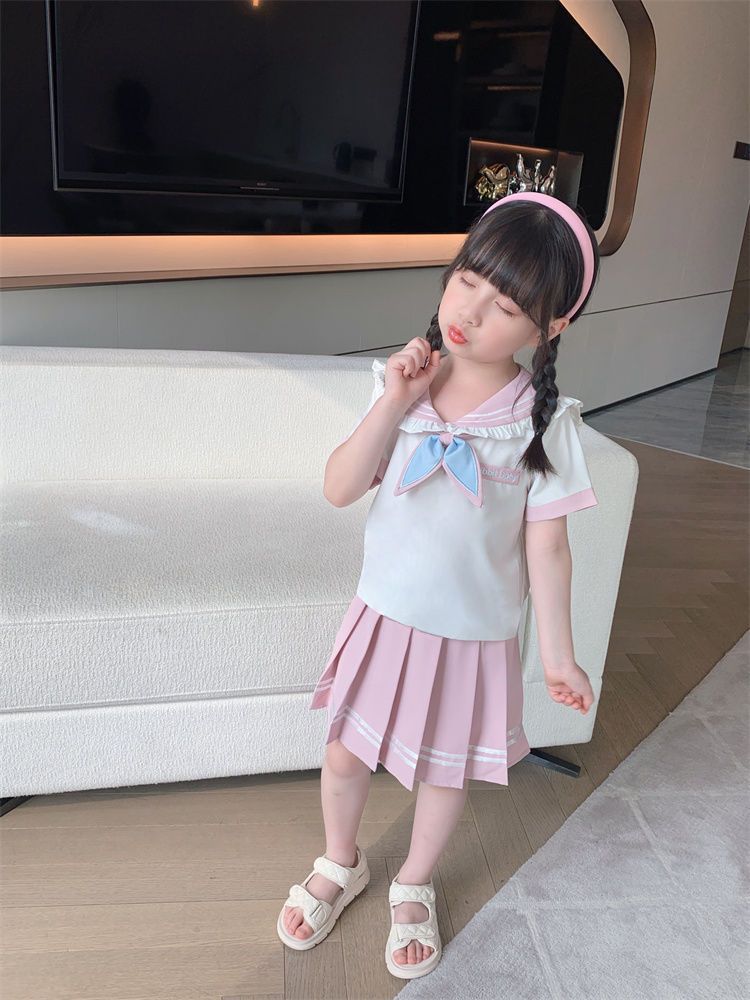 여자 대학 스타일 스커트 여름 어린이 JK 정장 2025 새로운 스타일 여자 셔츠 주름 치마 투피스 세트