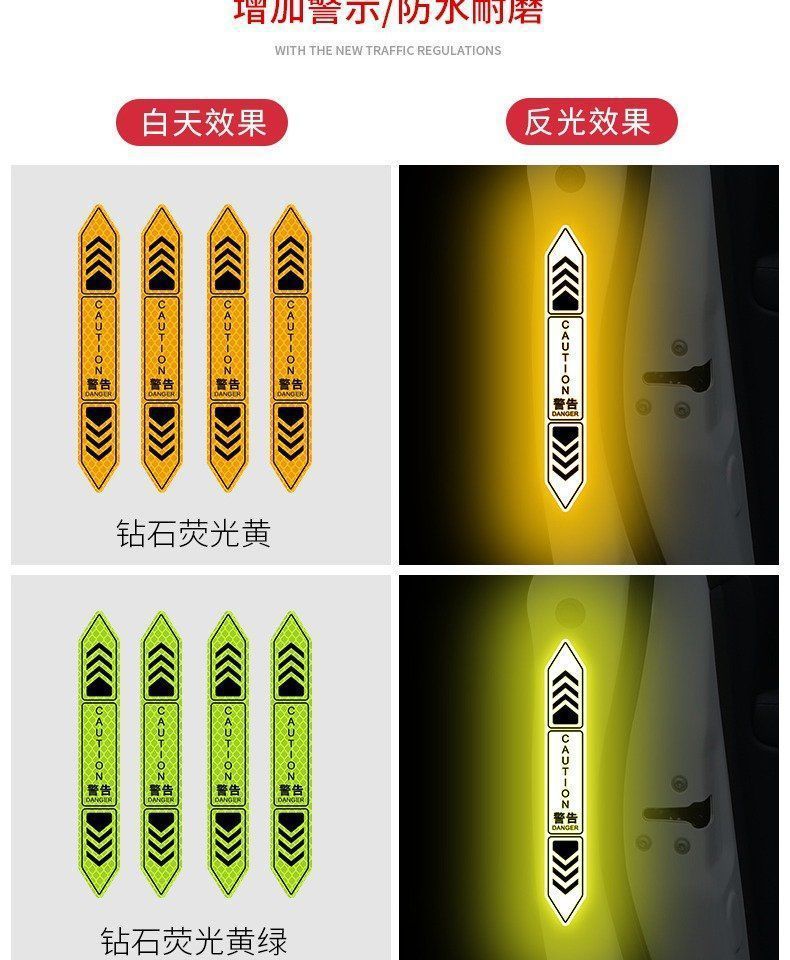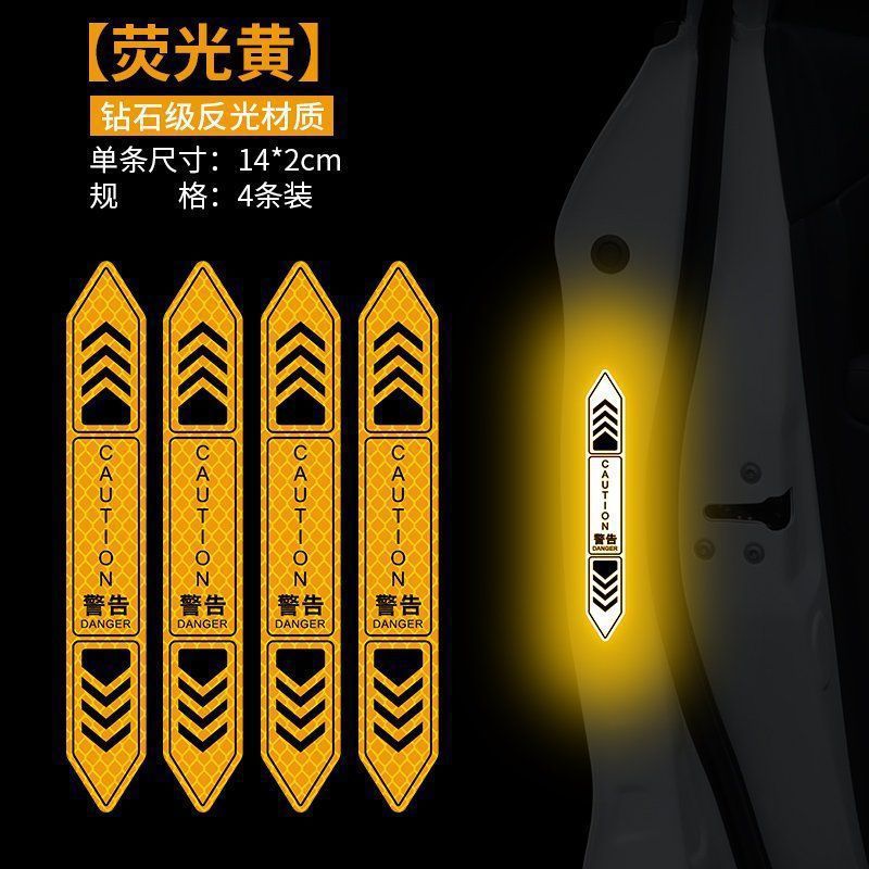 • 도어 개방형 충돌 방지 반사 스티커 다이아몬드 등급 형광 노란색 4팩