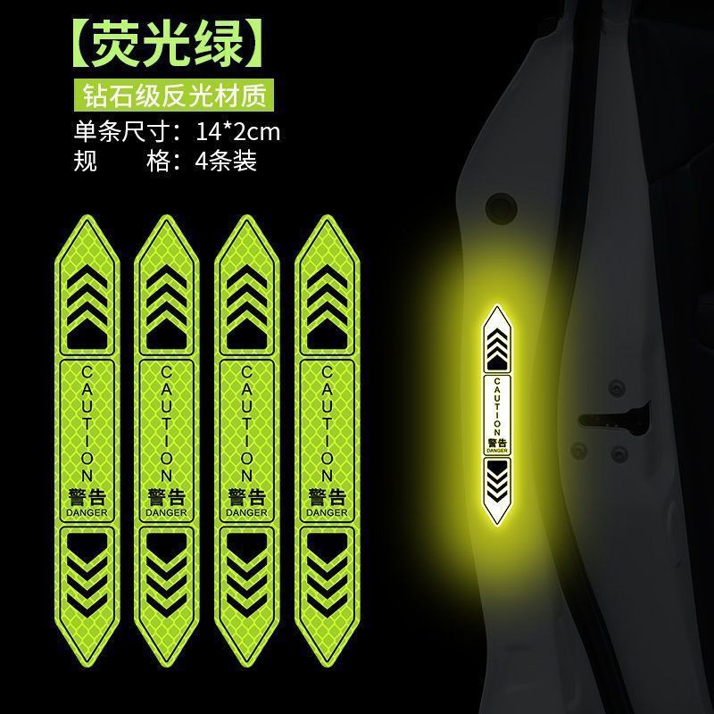 • 도어 개방형 충돌 방지 반사 스티커 다이아몬드 등급 형광 녹색 4팩