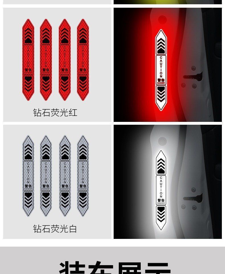 • 도어 개방형 충돌 방지 반사 스티커 다이아몬드 등급 형광 빨간색 4팩