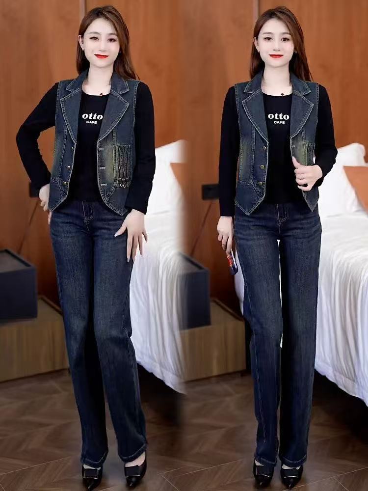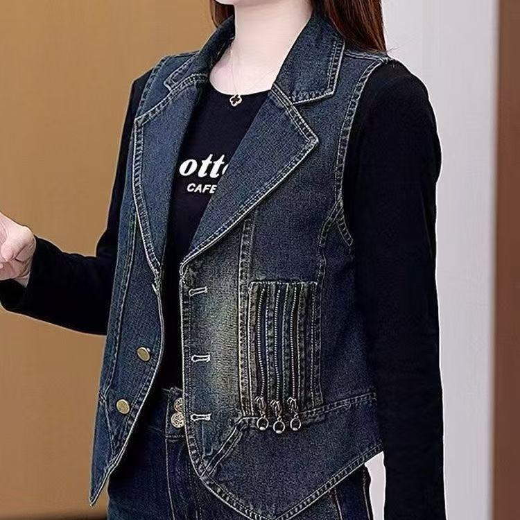레트로 데님 조끼 여성용 2026 봄 신상 한국 스타일 패셔너블 슬림 디자인 민소매 라펠 데님 조끼