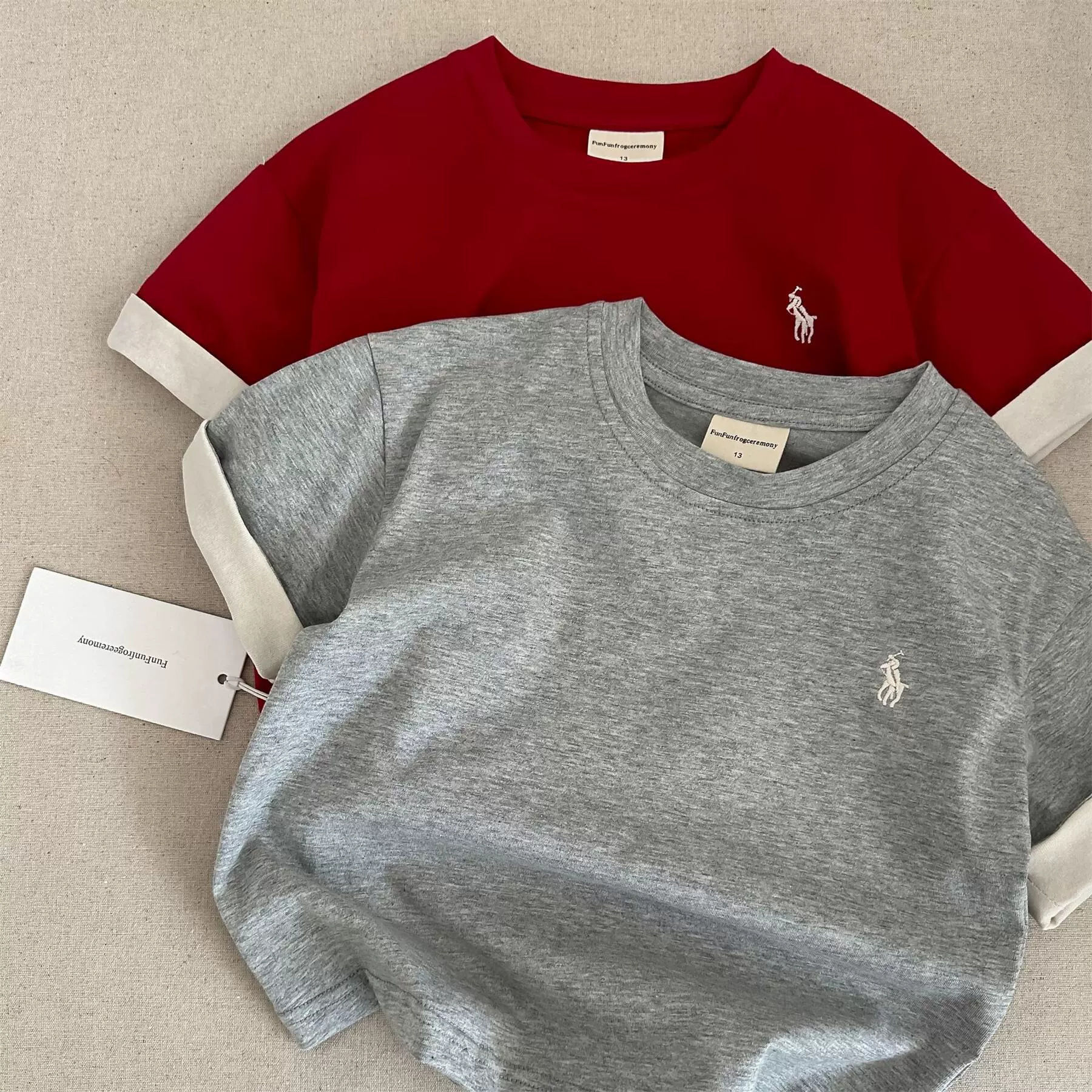 어린이 반소매 2025 여름 소년 일본식 포니 라벨 명암 T 아기 어린이 면 반소매 여자 서양식 티셔츠스토어 가기