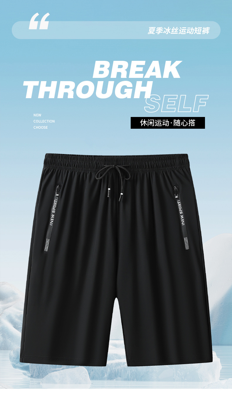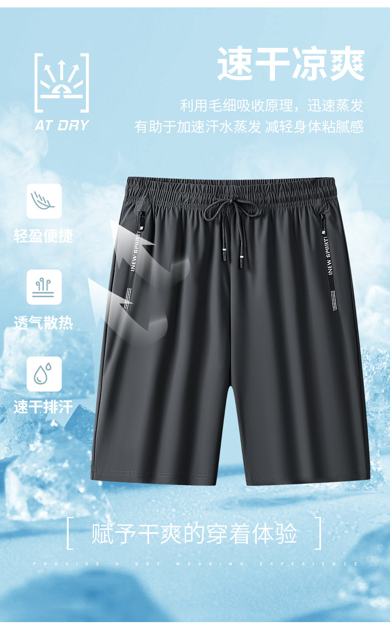여름 남성 스포츠 나일론 아이스 실크 대형 느슨한 5 점 바지 고품질 지퍼 아이스 실크 반바지 남성 반바지 남성 여름스토어 가기