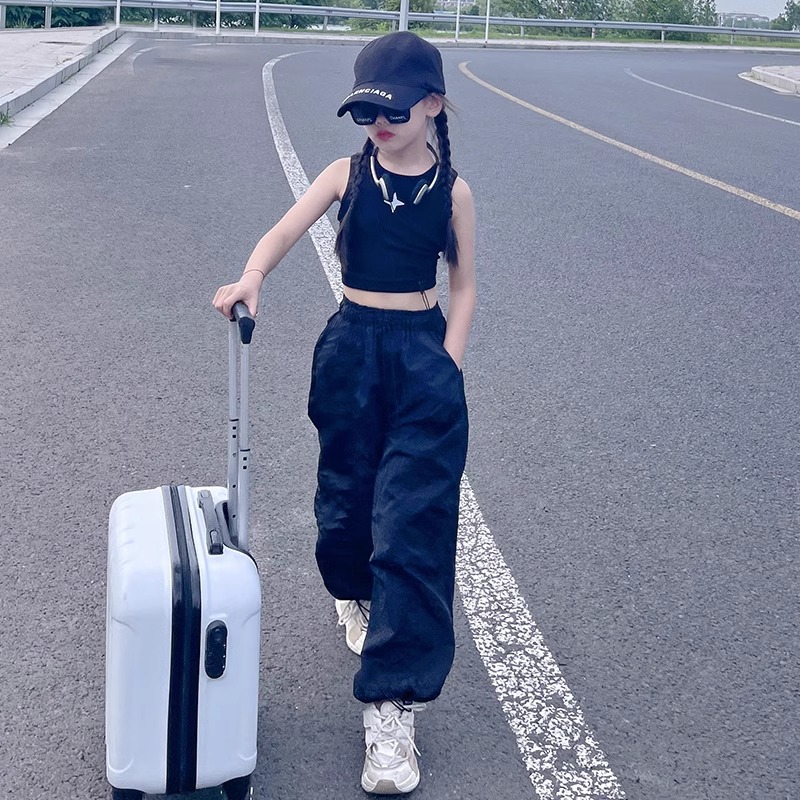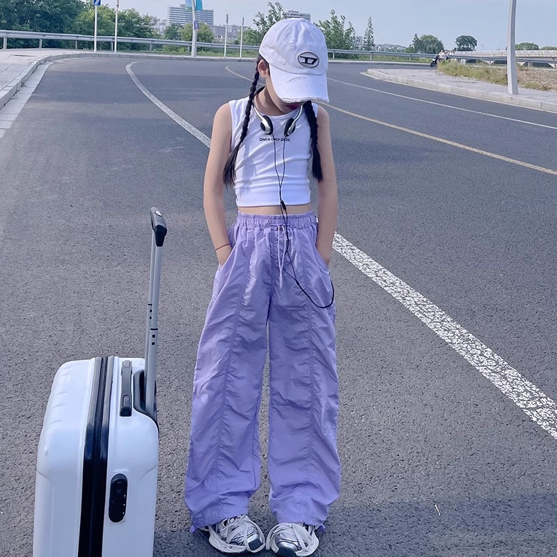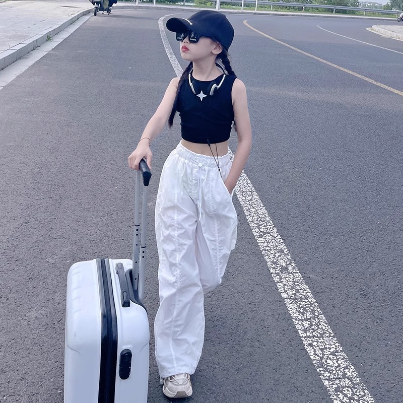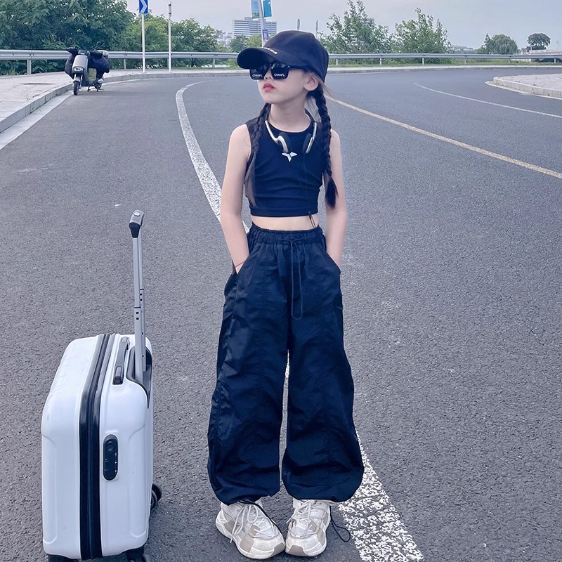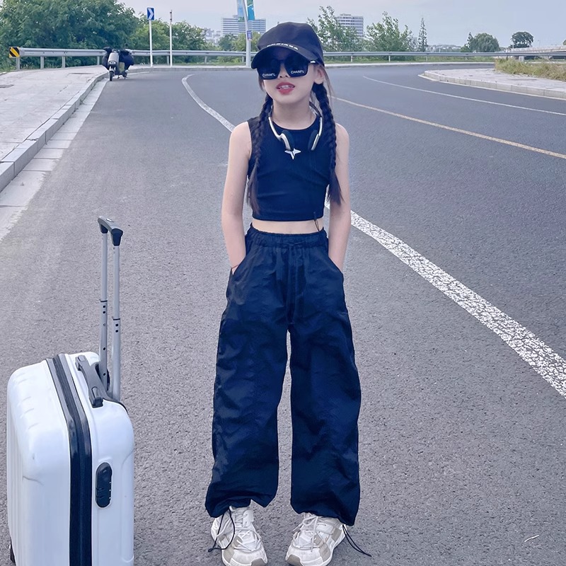 여자 캐주얼 바지 여름 2025 새로운 스타일 어린이 여름 착용 느슨한 스트레이트 튜브 아동복 작업복 긴 바지 아동복