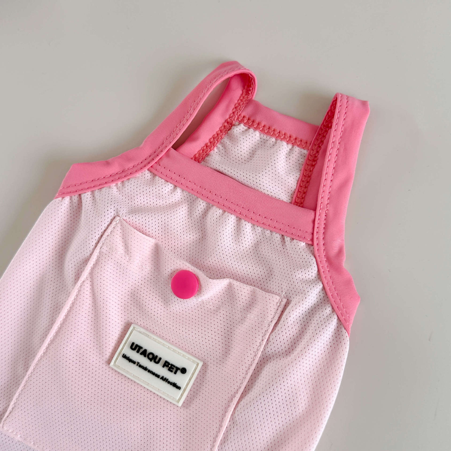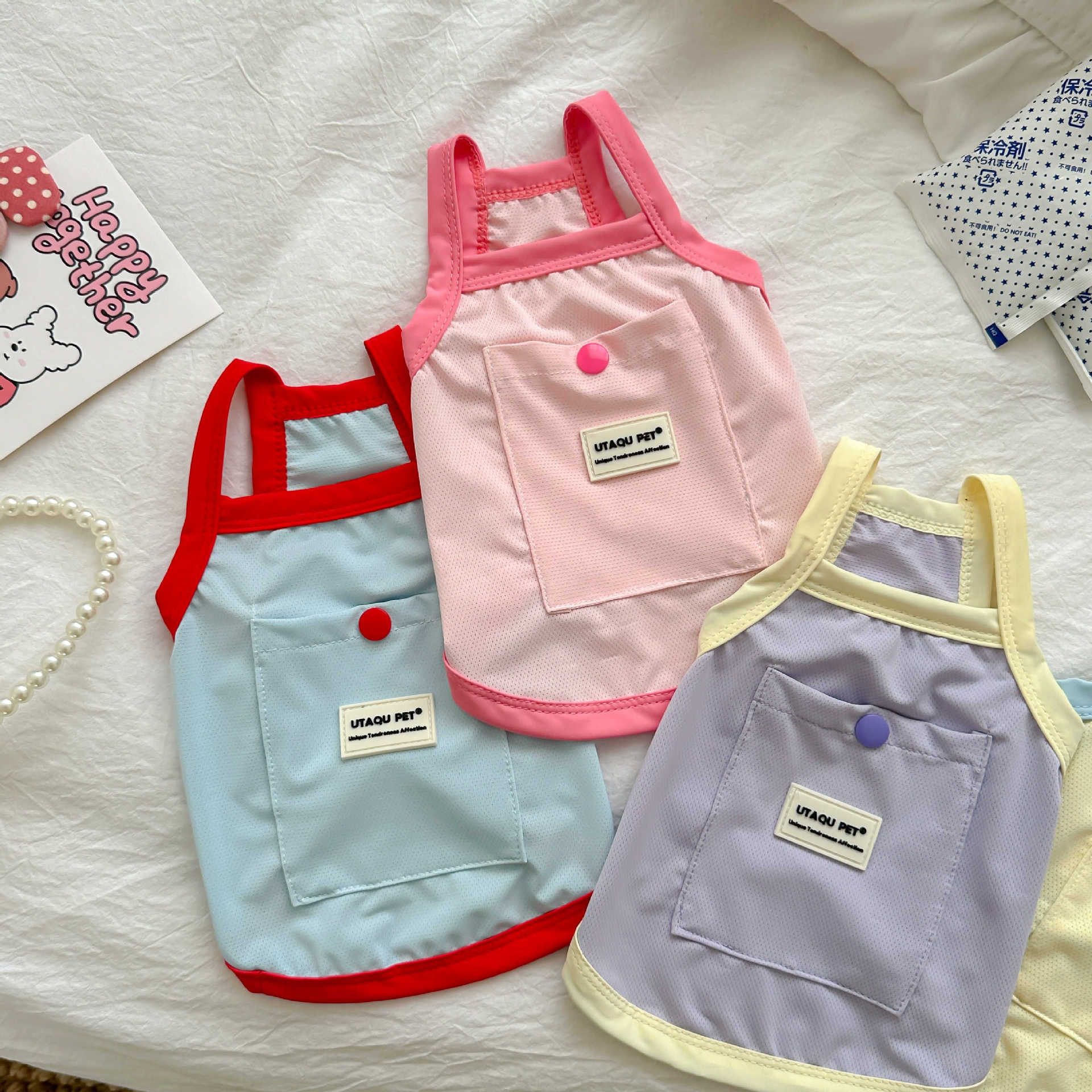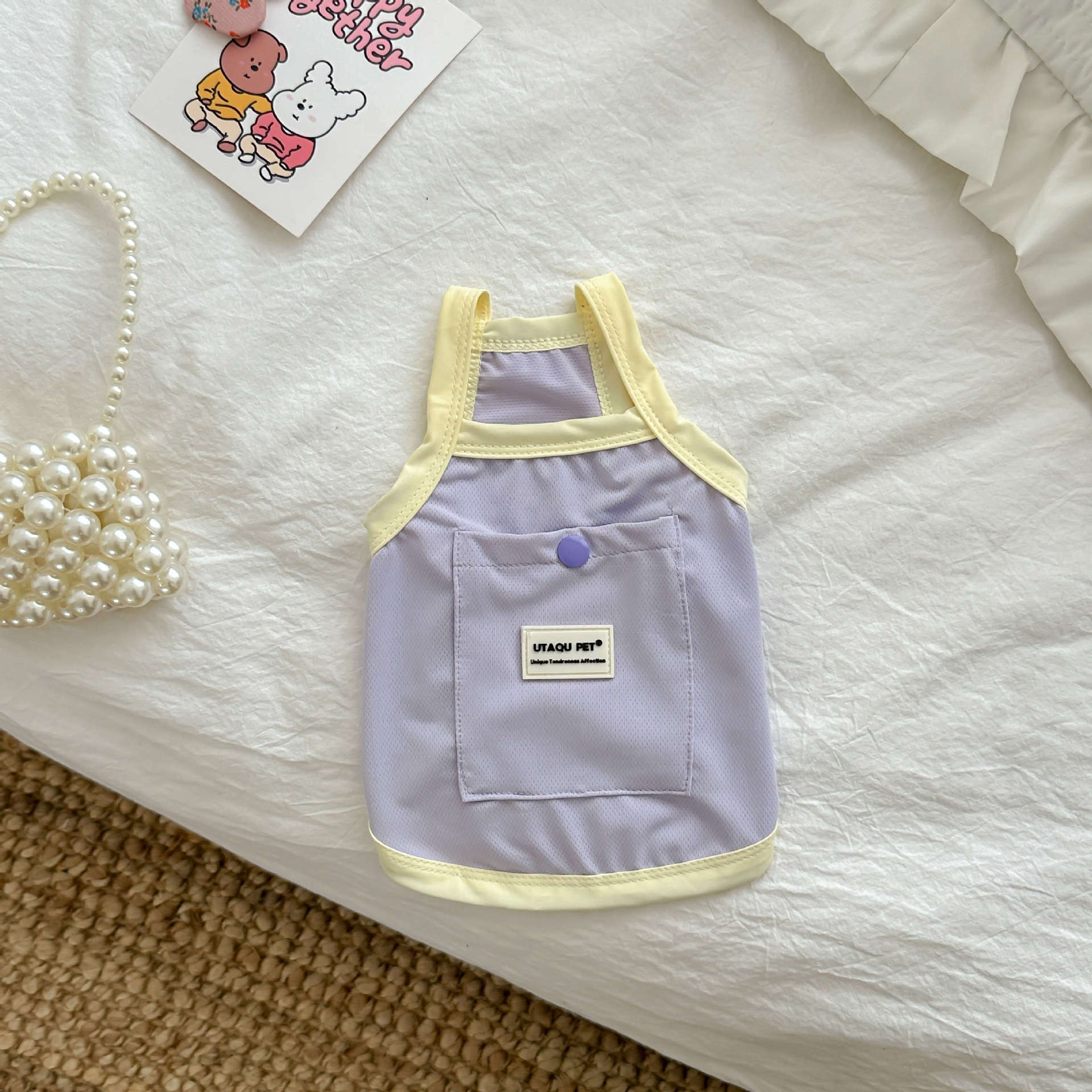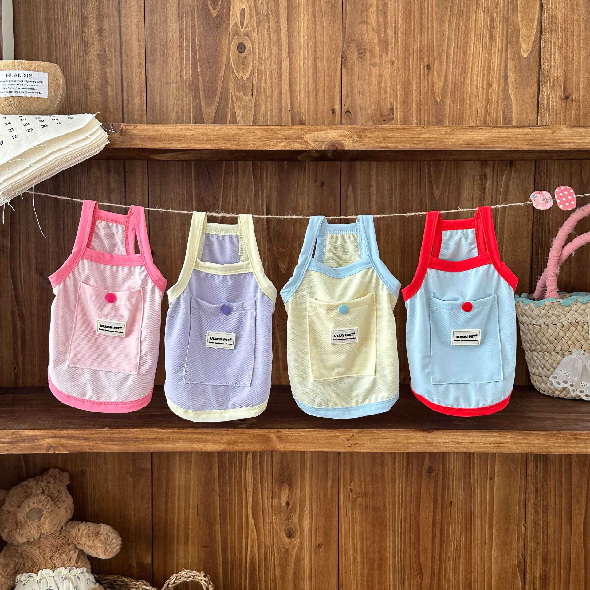 블루 컬러 블록 네발옷 소형견 고양이 여름 얇은 통기성 애완동물 옷 캐주얼 스타일스토어 가기