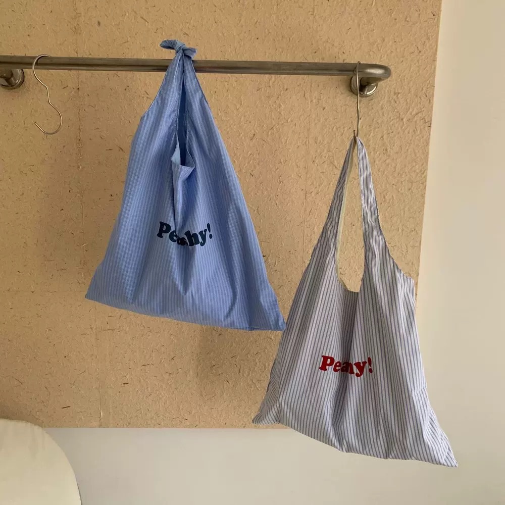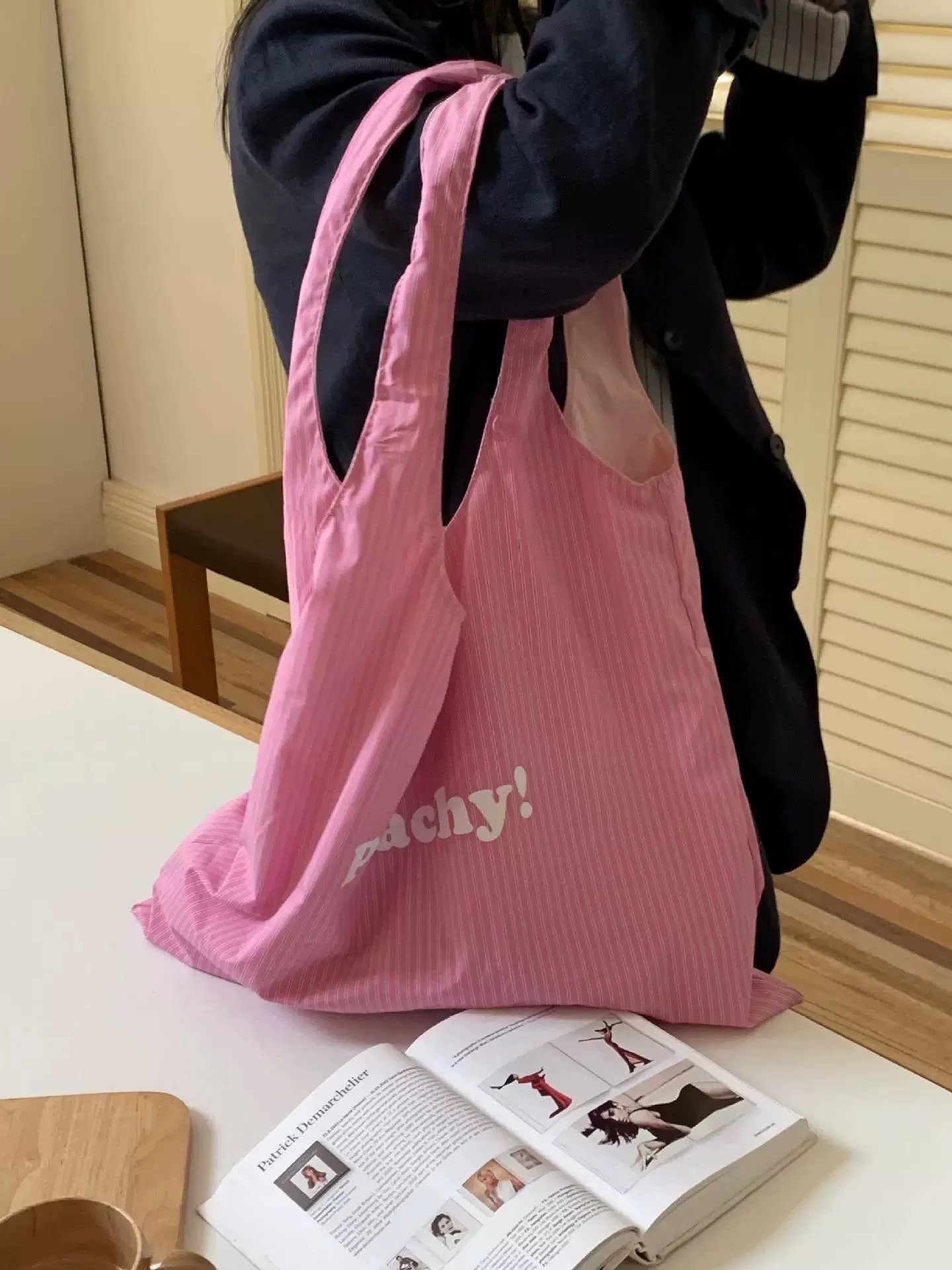 2026 봄 여름 신상 한국식 스트라이프 레터링 캔버스백, 레이지 스타일, 심플하고 다재다능한 대용량 숄더 토트백스토어 가기