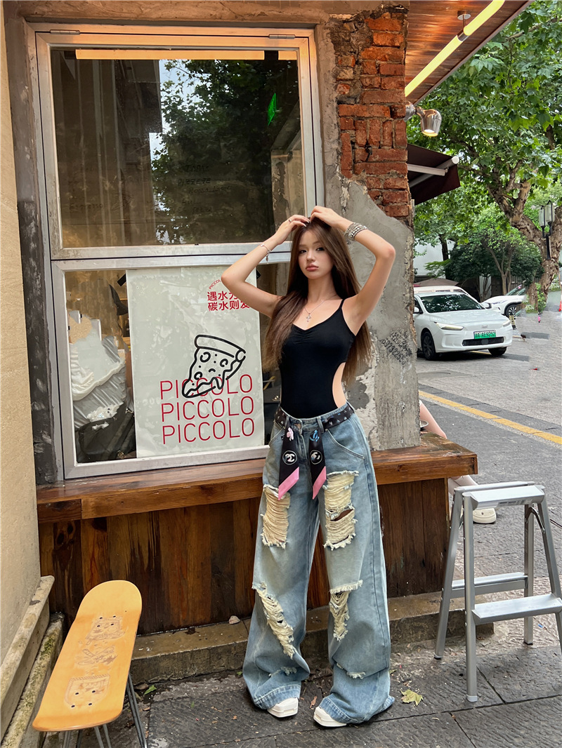 L:腰围72cm 臀围107cm 腿围64cm 脚围65cm 裤长104cm