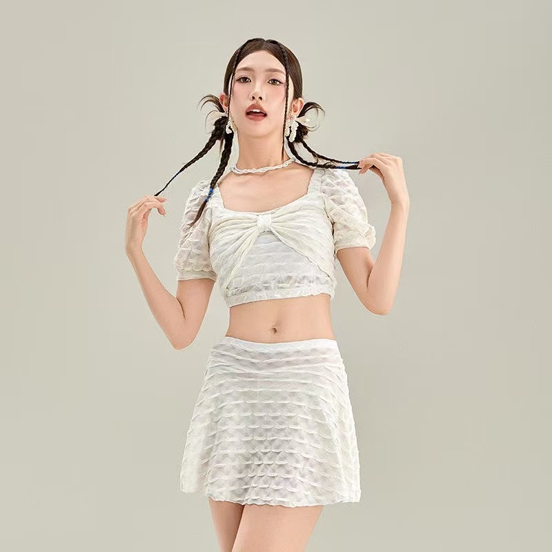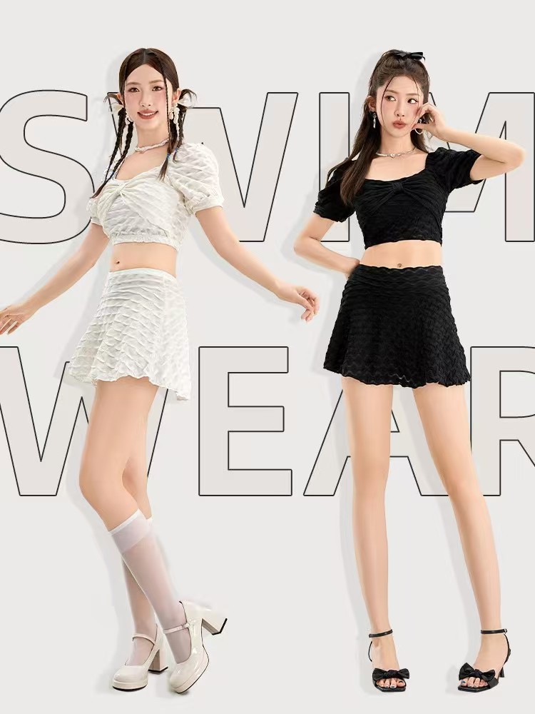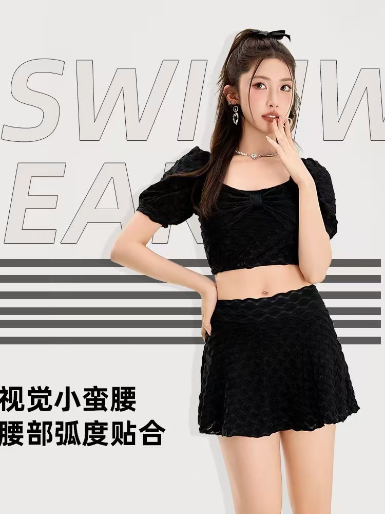 2025년 신형 스플릿 스커트 수영복 여성 투피스 고급 온천 수영복 보수적인 배 커버 슬리밍 수영복 도매