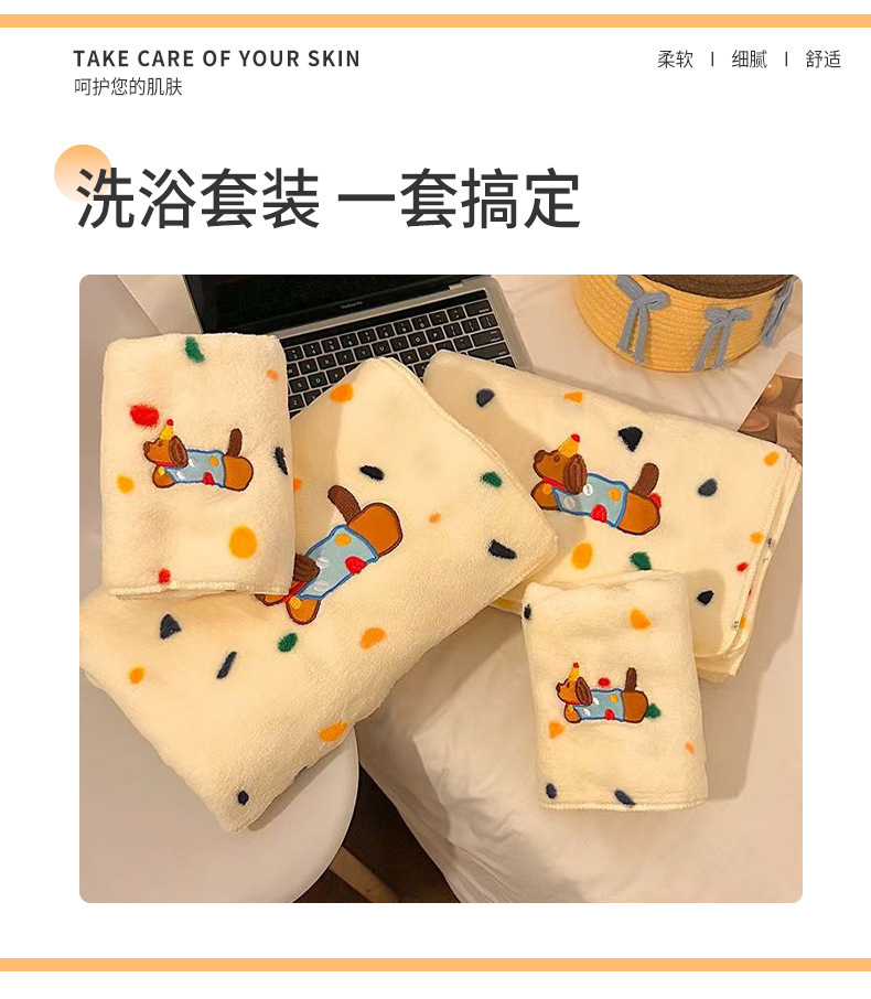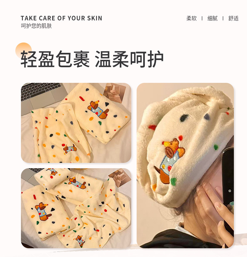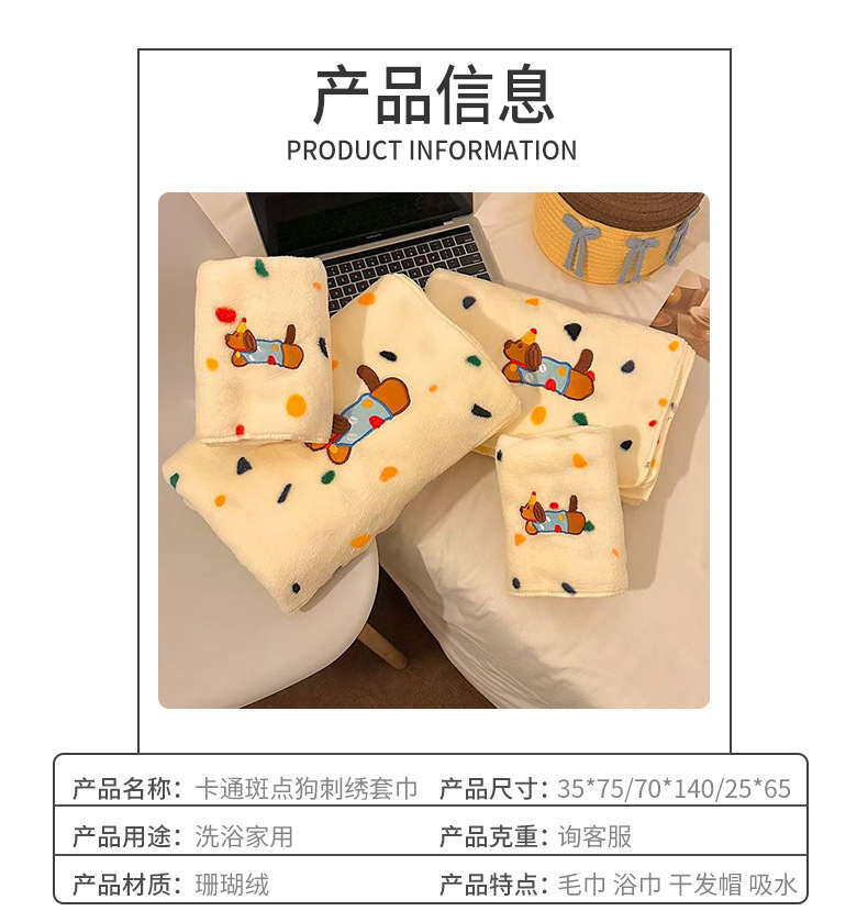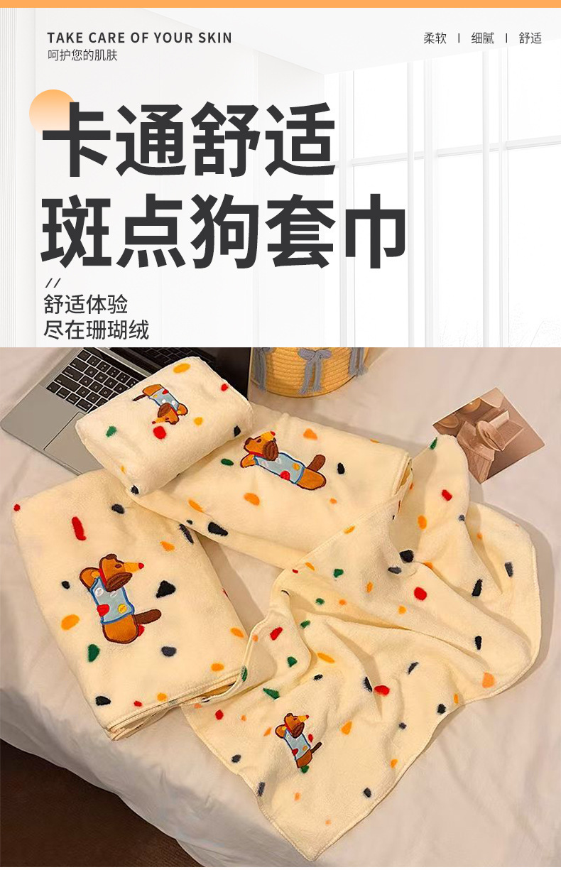 도매 만화 닥스 훈트 개 목욕 타월 여성 가정용 수건 드라이 헤어 캡 목욕 타월 3 피스 세트 흡수성 산호 양털 수건스토어 가기