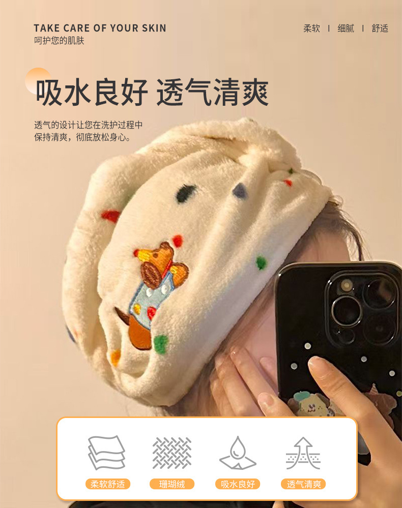 도매 만화 닥스 훈트 개 목욕 타월 여성 가정용 수건 드라이 헤어 캡 목욕 타월 3 피스 세트 흡수성 산호 양털 수건