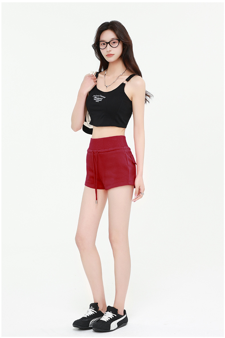 개미 허리 3 점 반바지 여성 여름 2025 새로운 높은 허리 끈 슬림 핏 디자인 센스 캐주얼 화이트 스포츠 바지스토어 가기