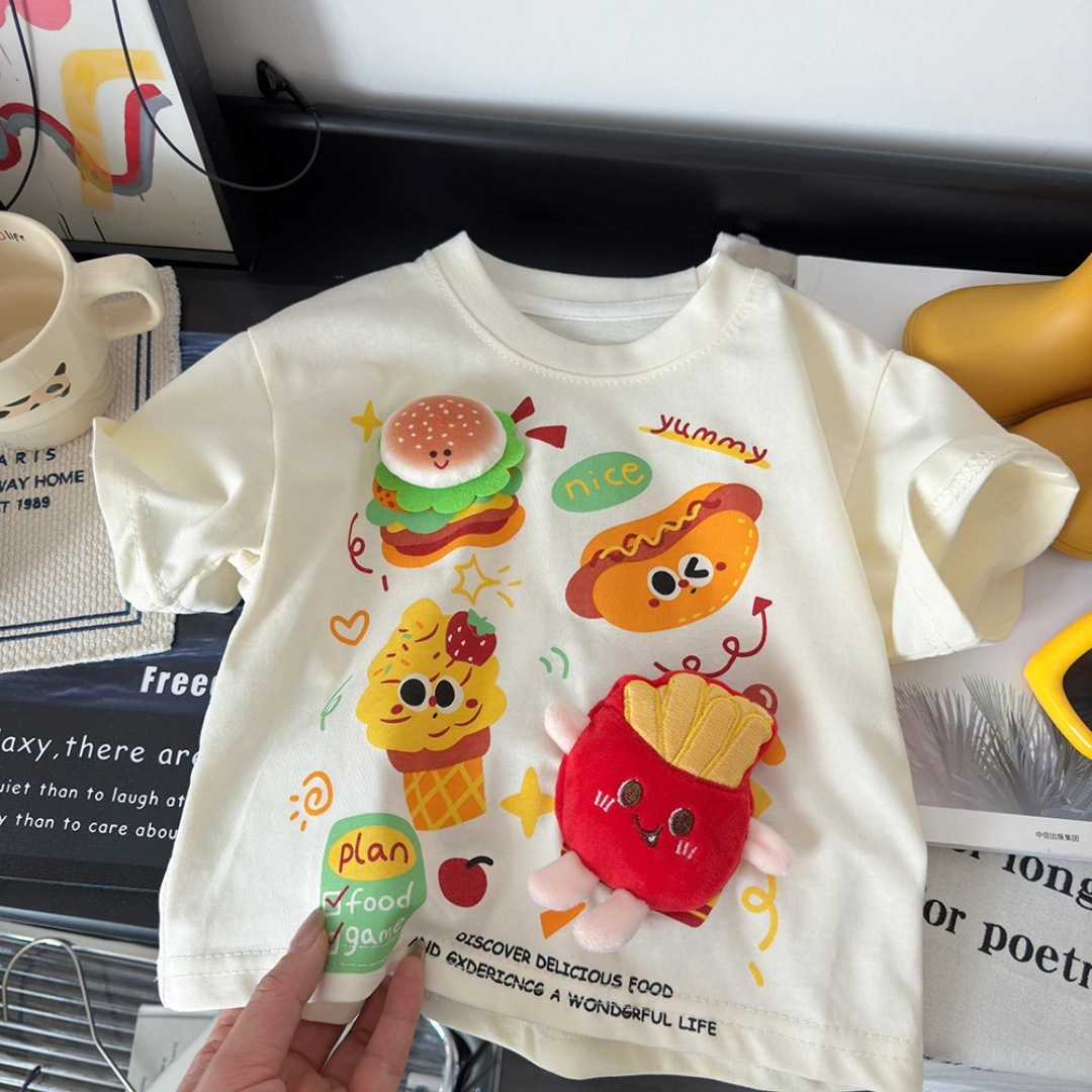 라임 3 차원 인형 어린이 반팔 티셔츠 여름 새로운 느슨한 한국 만화 탑 서양식 베이스 셔츠 트렌디 T
