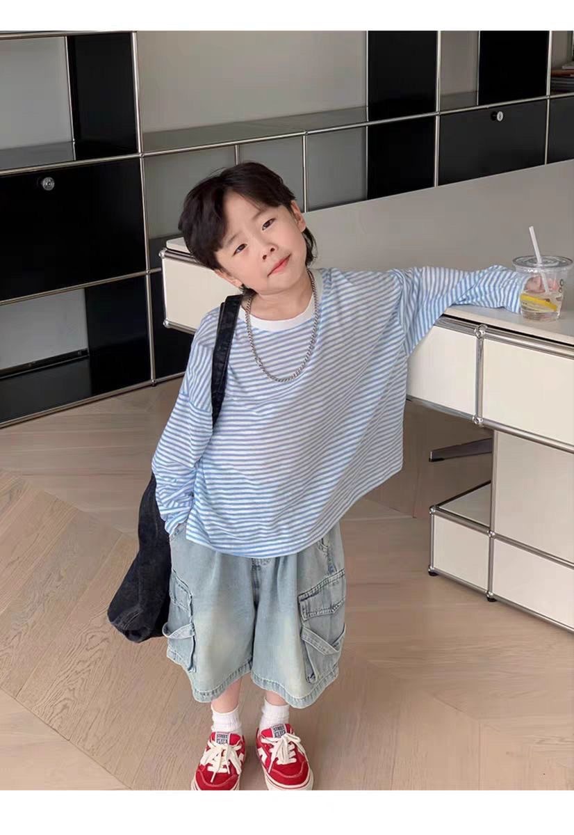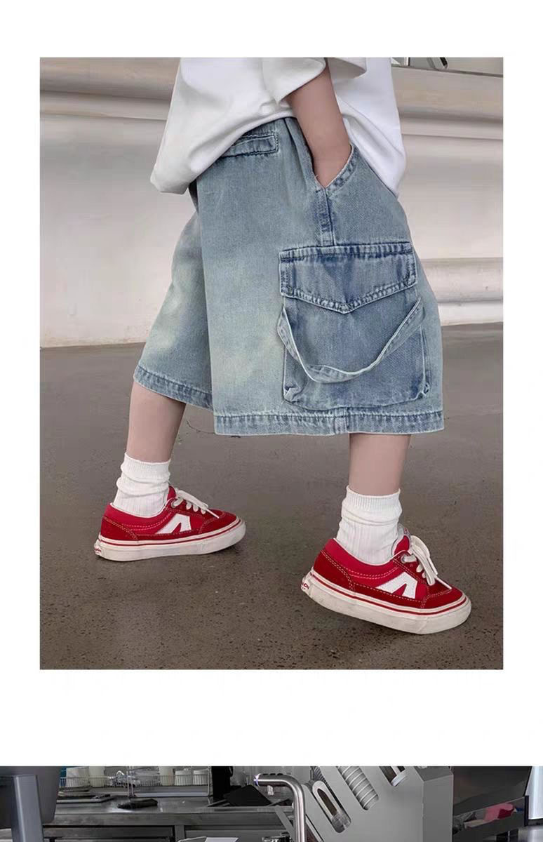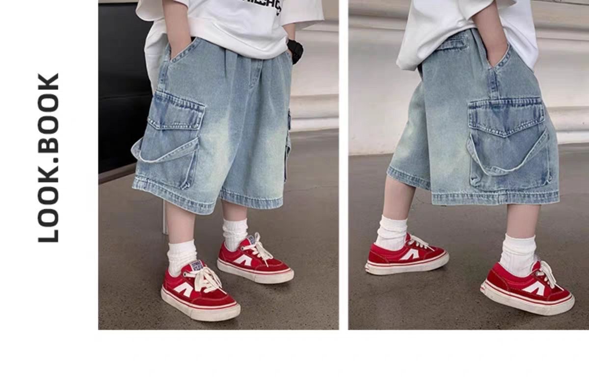 아동 데님 반바지 여름 2025 새로운 스타일 소년의 멋진 캐주얼 다목적 중간 바지 어린 소년의 5부 바지는 트렌디하고 멋집니다.