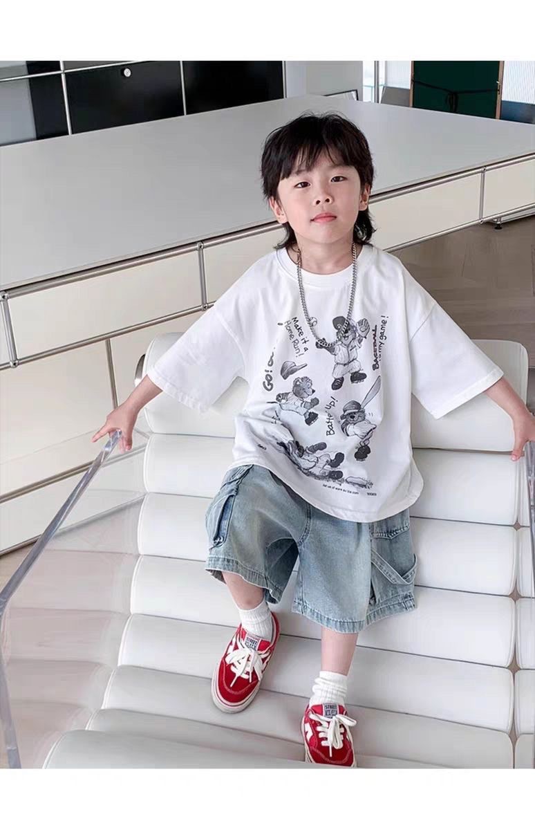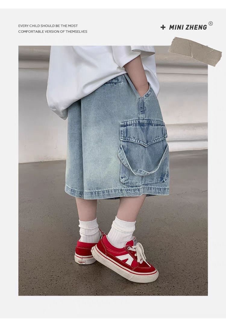 아동 데님 반바지 여름 2025 새로운 스타일 소년의 멋진 캐주얼 다목적 중간 바지 어린 소년의 5부 바지는 트렌디하고 멋집니다.스토어 가기
