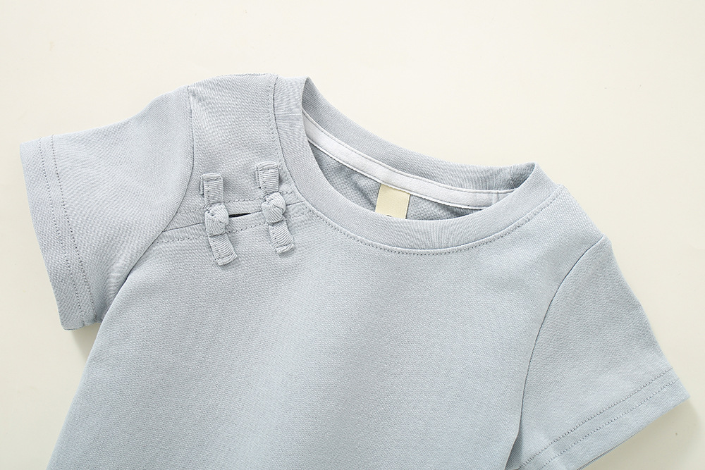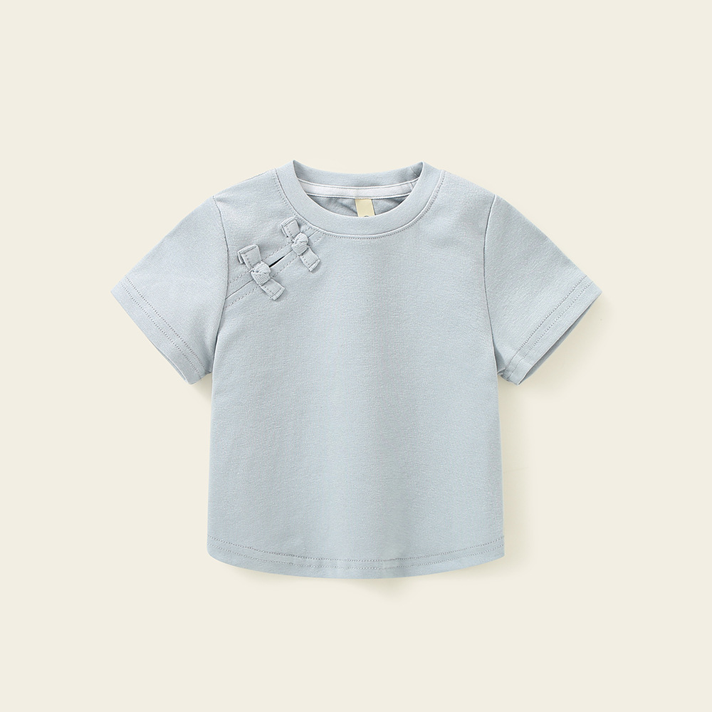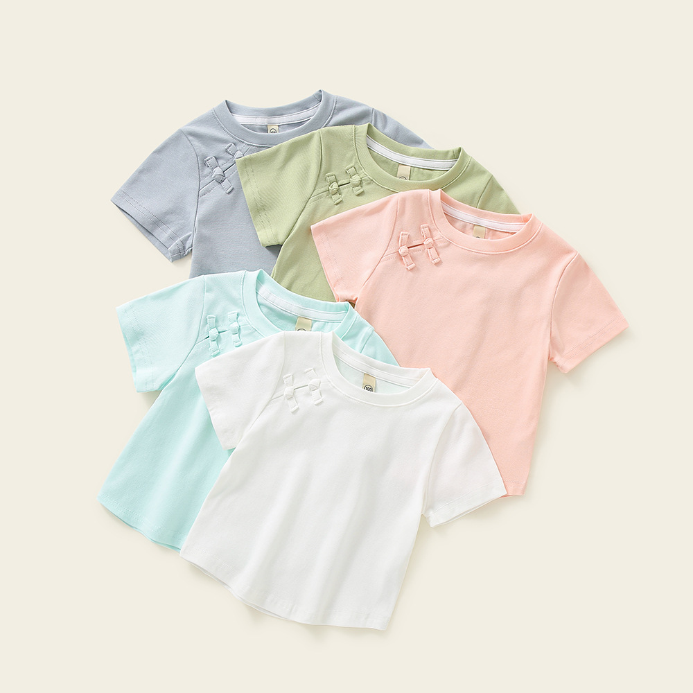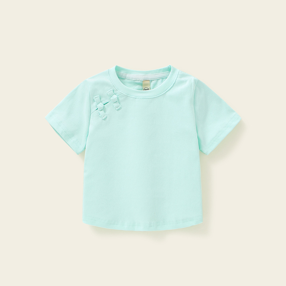 소녀 탑 퓨어 코튼 니치 아동복 여름 여름 캐주얼 2025 새로운 어린이 만화 크루 넥 반팔 티셔츠