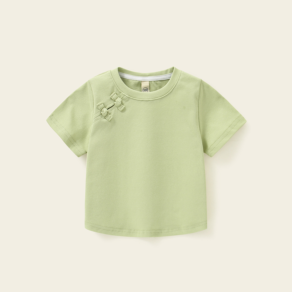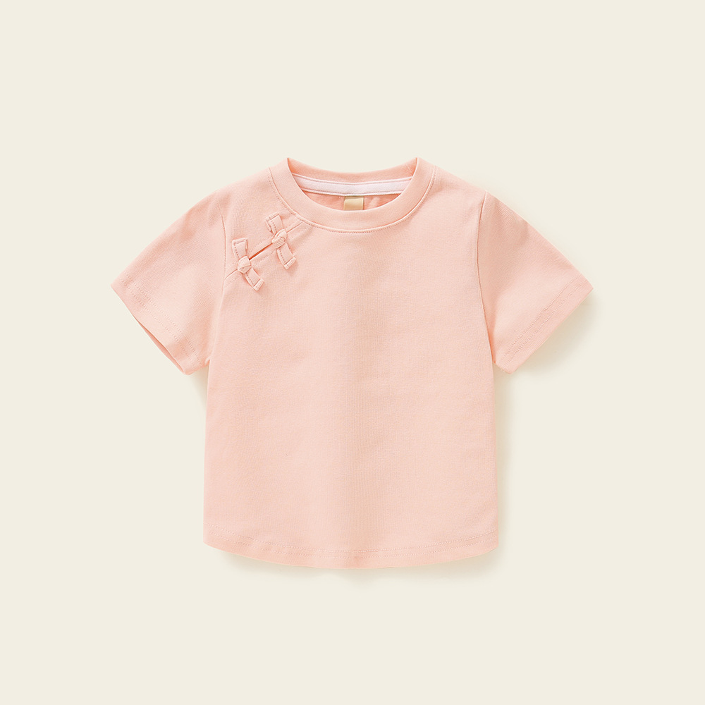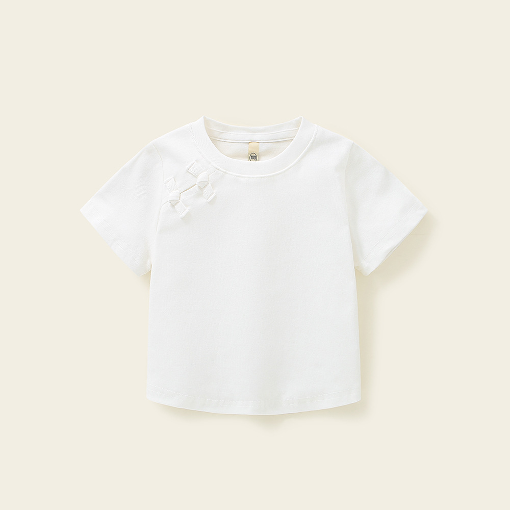 소녀 탑 퓨어 코튼 니치 아동복 여름 여름 캐주얼 2025 새로운 어린이 만화 크루 넥 반팔 티셔츠스토어 가기