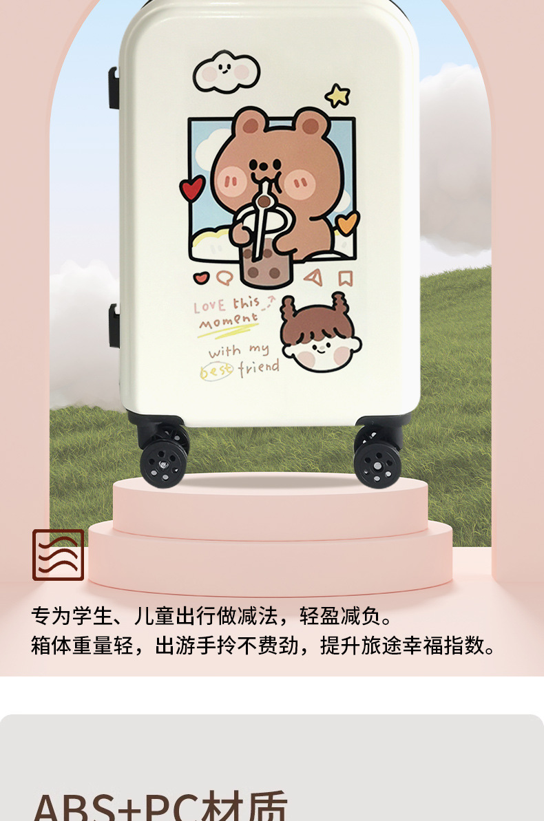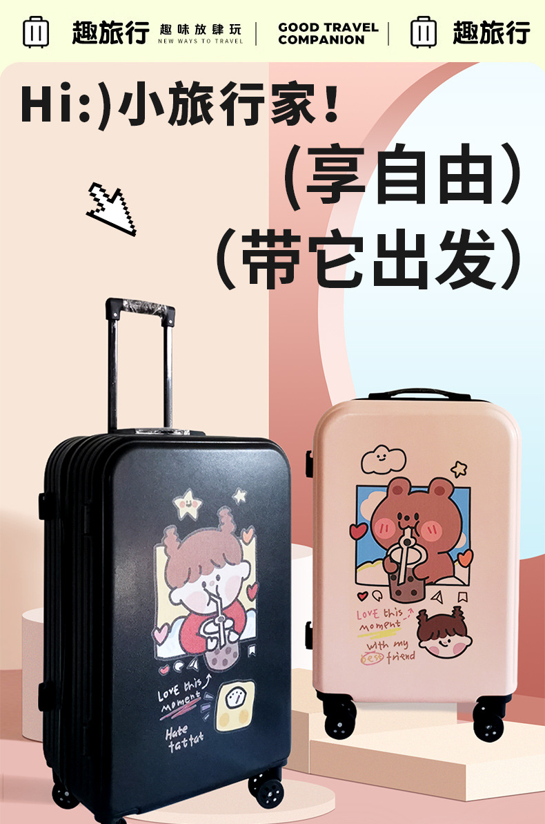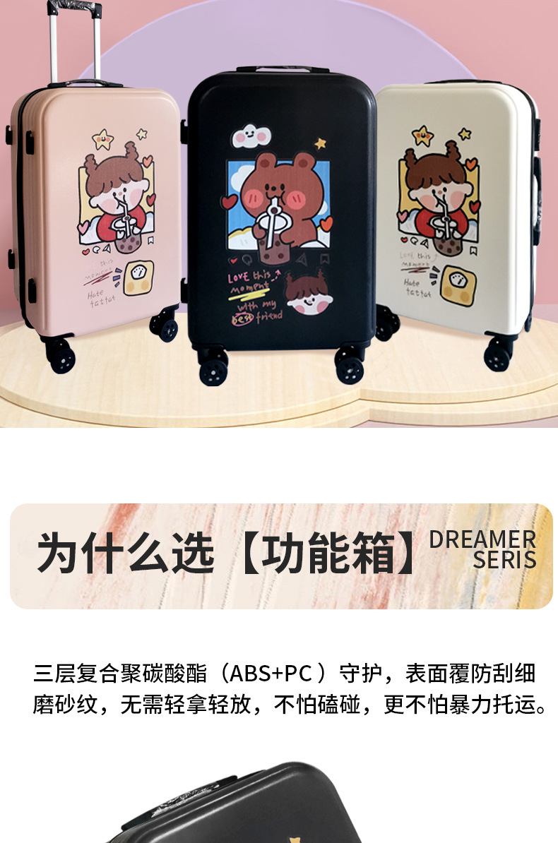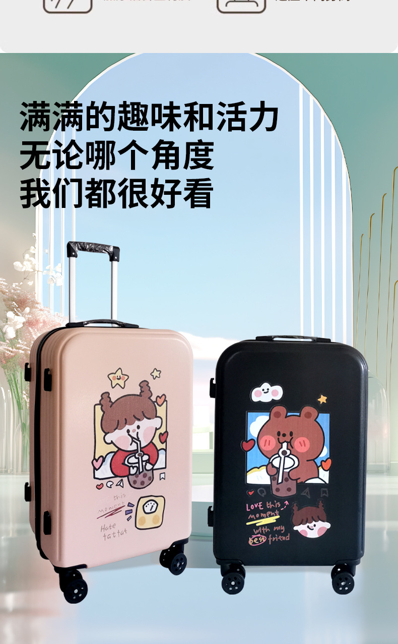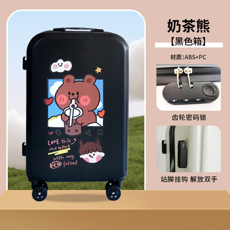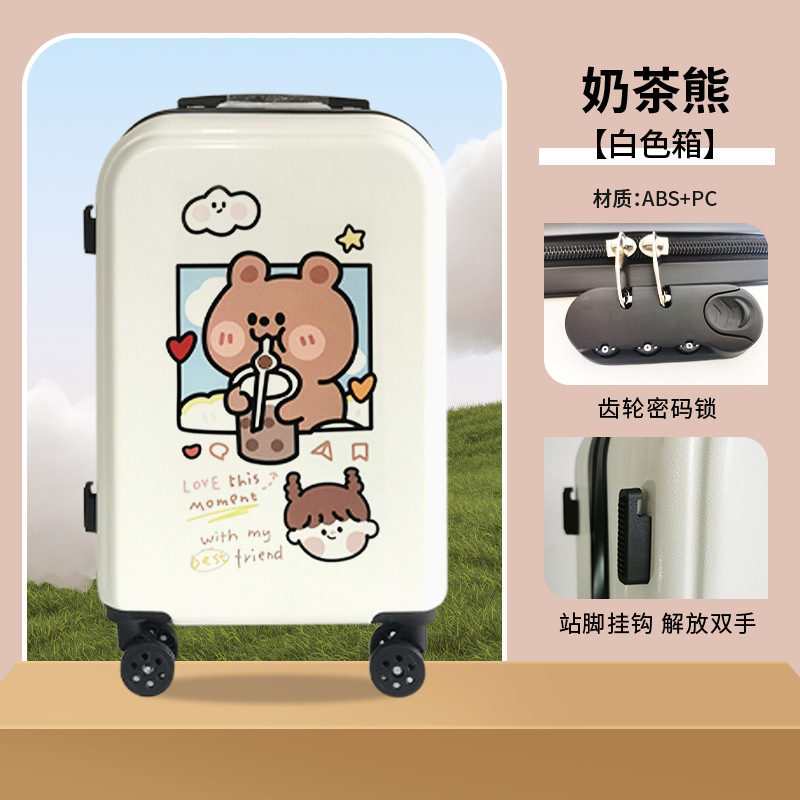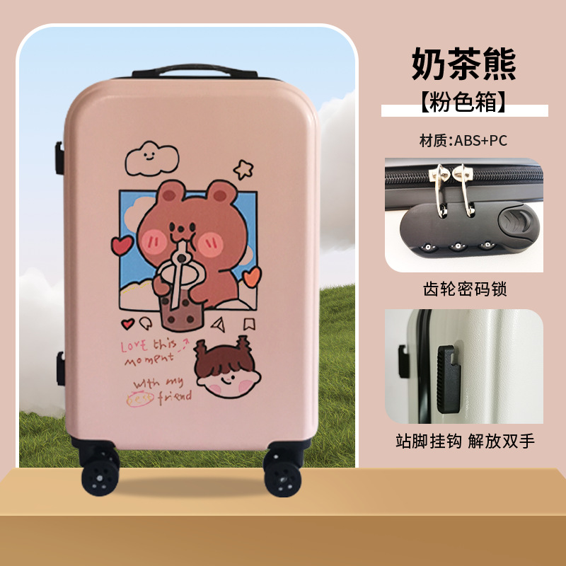 공장 도매 귀여운 우유 차 곰 수하물 케이스 남성과 여성의 여행 탑승 수하물 20 인치 만화 보관 가방스토어 가기