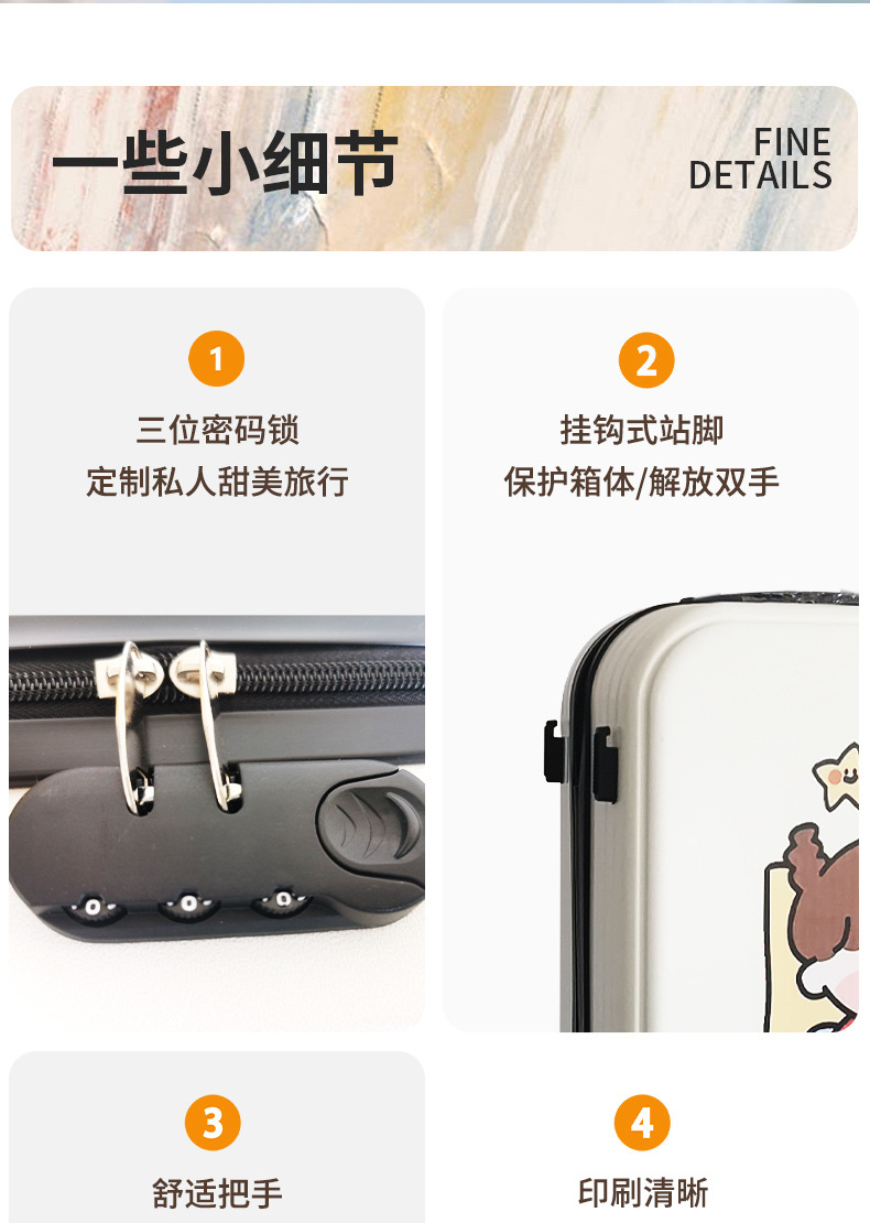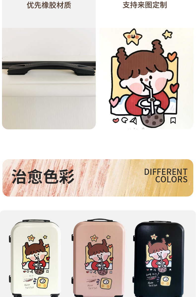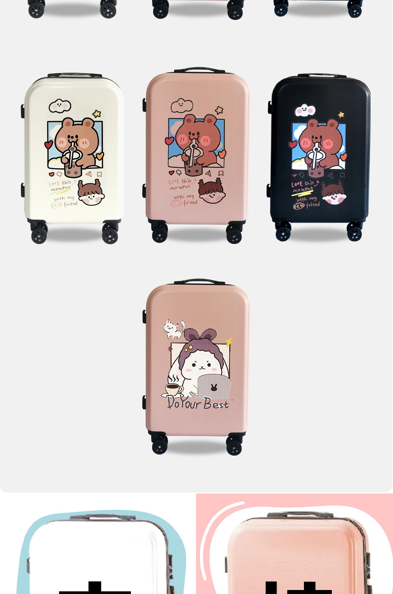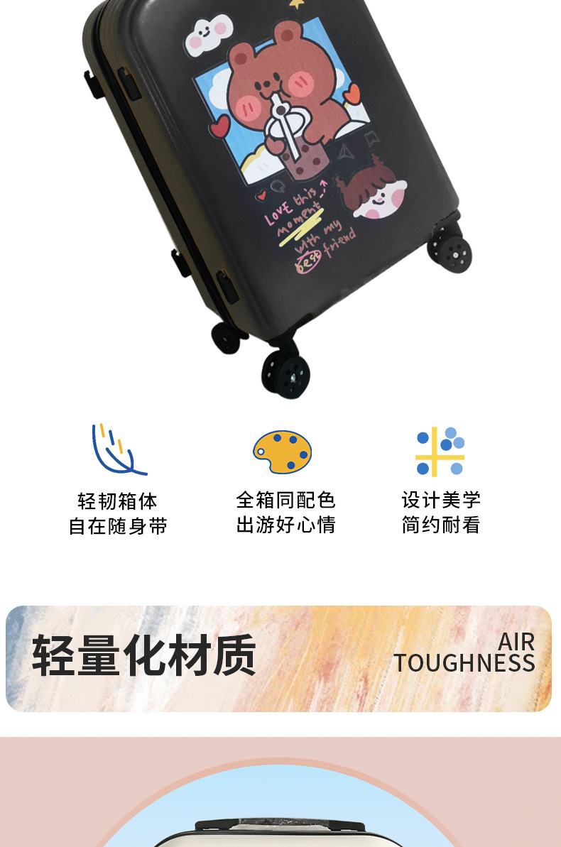공장 도매 귀여운 우유 차 곰 수하물 케이스 남성과 여성의 여행 탑승 수하물 20 인치 만화 보관 가방