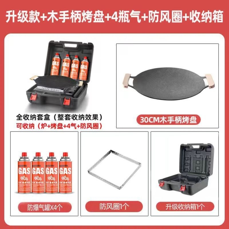 • 강력한 화재 업그레이드로 + 방풍 링 + 여행 가방 + 가스 4병 + 30CM 베이킹 팬