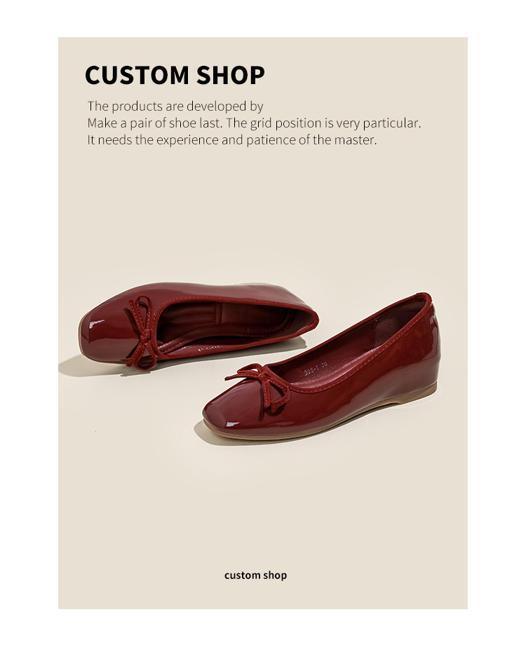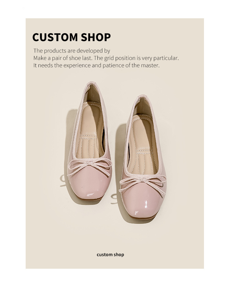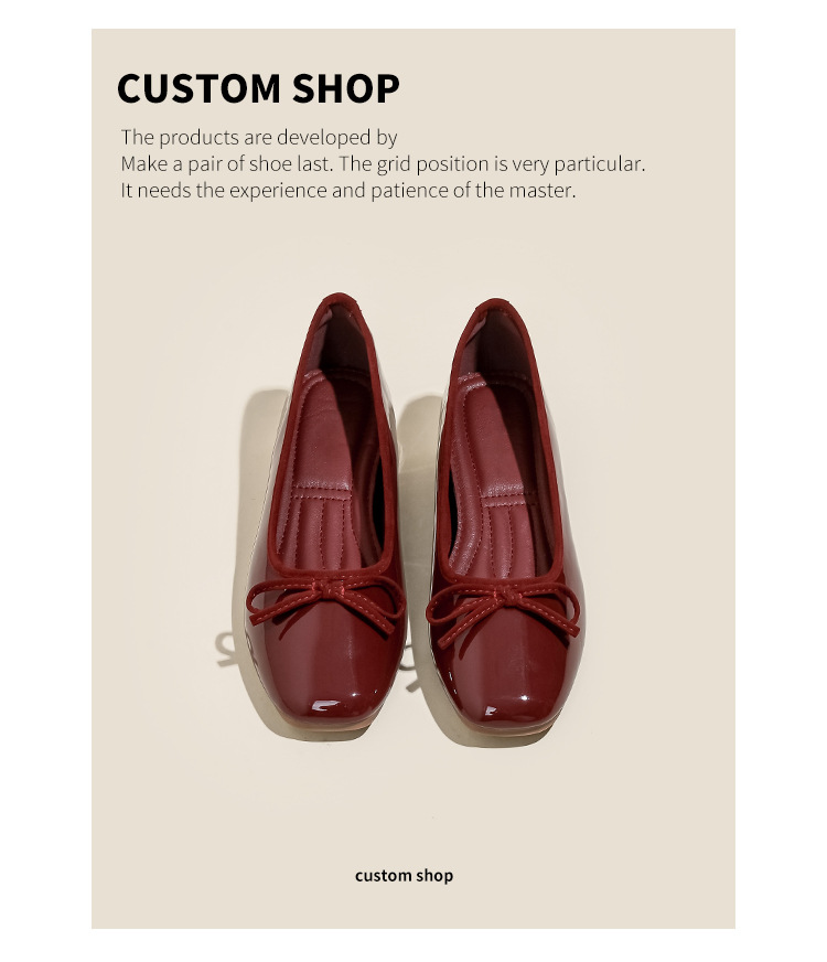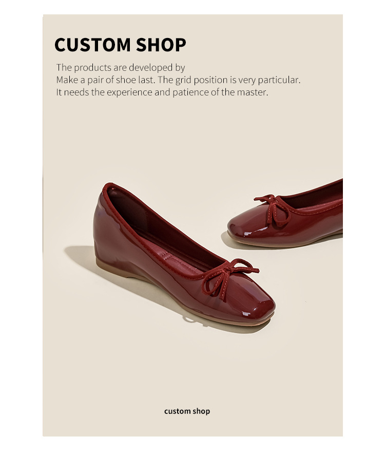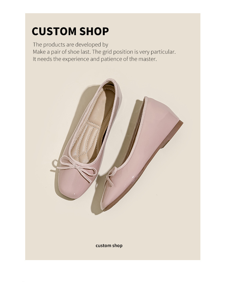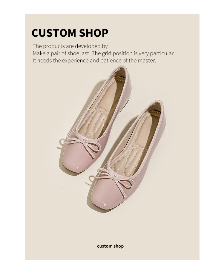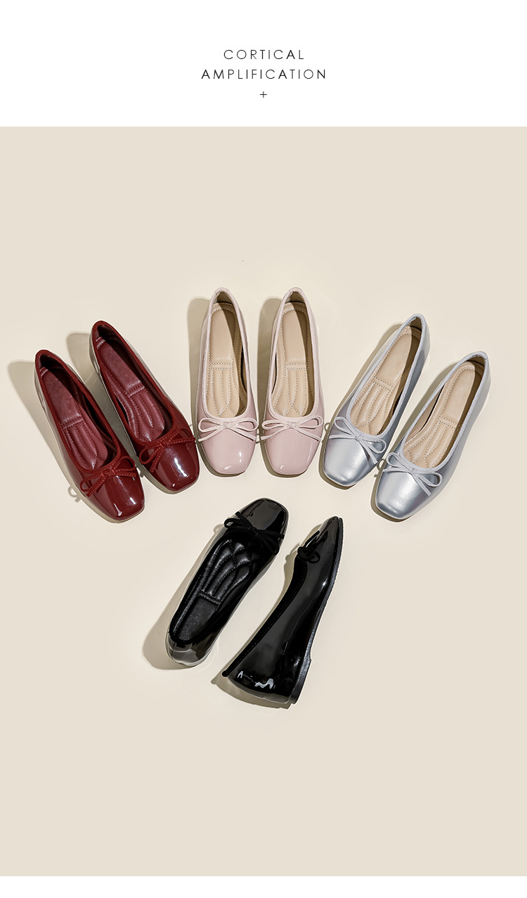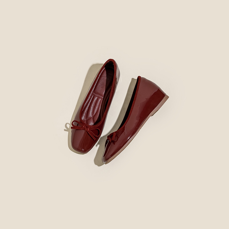 여성용 작은 빨간 구두 2026년 신상 키높이 숏컷 스퀘어토 리본 장식 연분홍 프렌치 스타일의 아름다운 플랫 슈즈스토어 가기