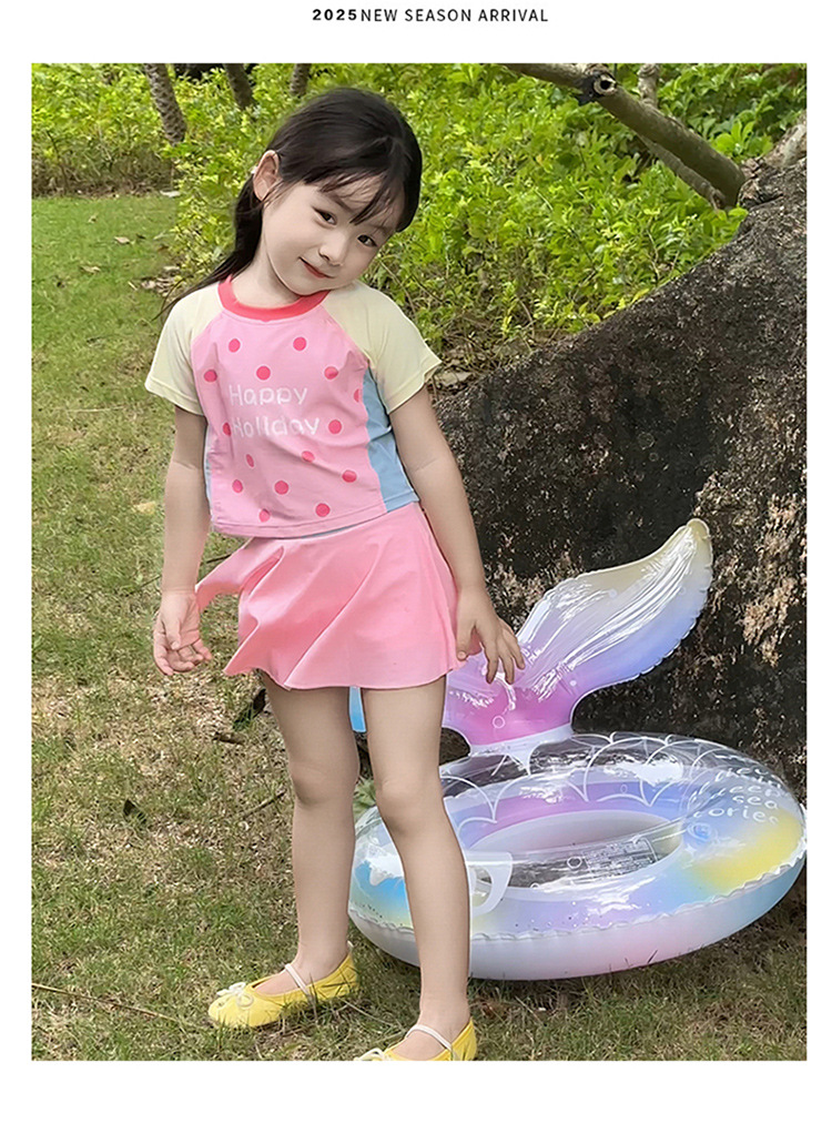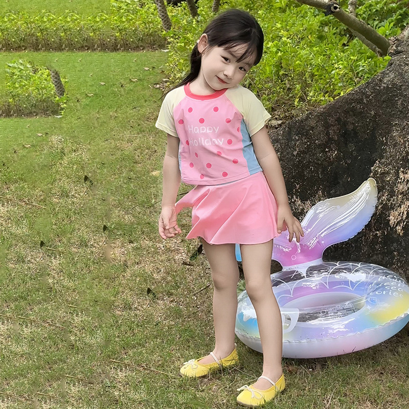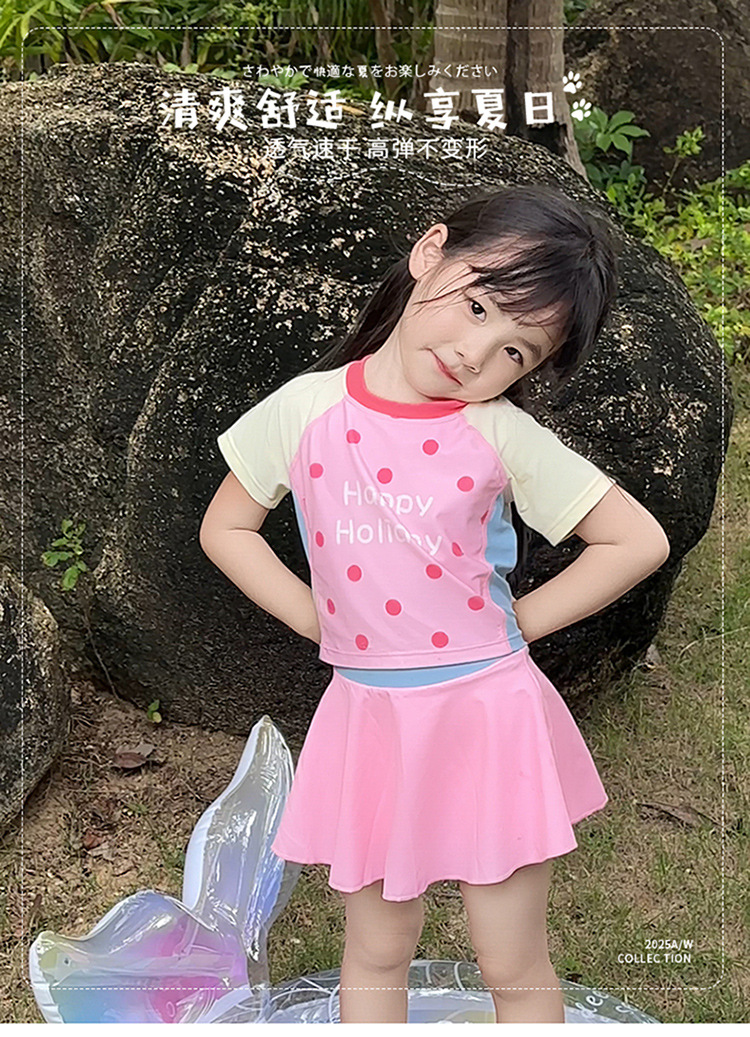 2025 새로운 소녀 아기 핑크 원산지 분할 수영복 소녀 휴가 스타일 수영복 수영복 세트