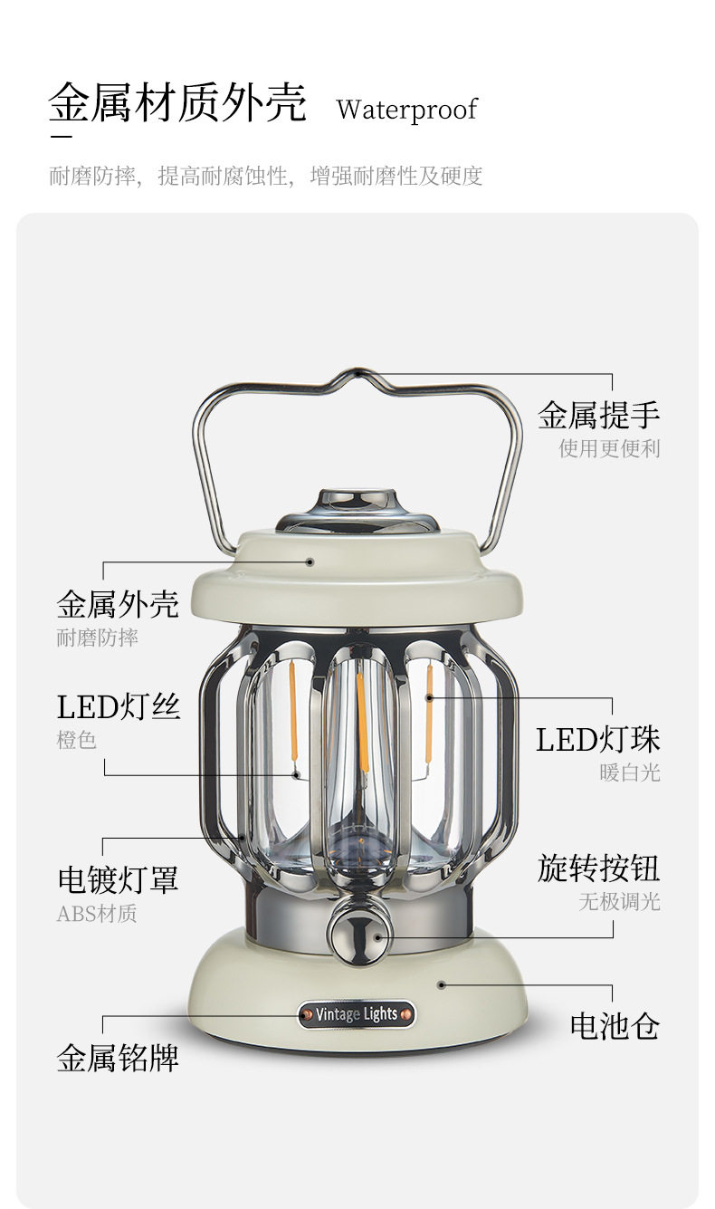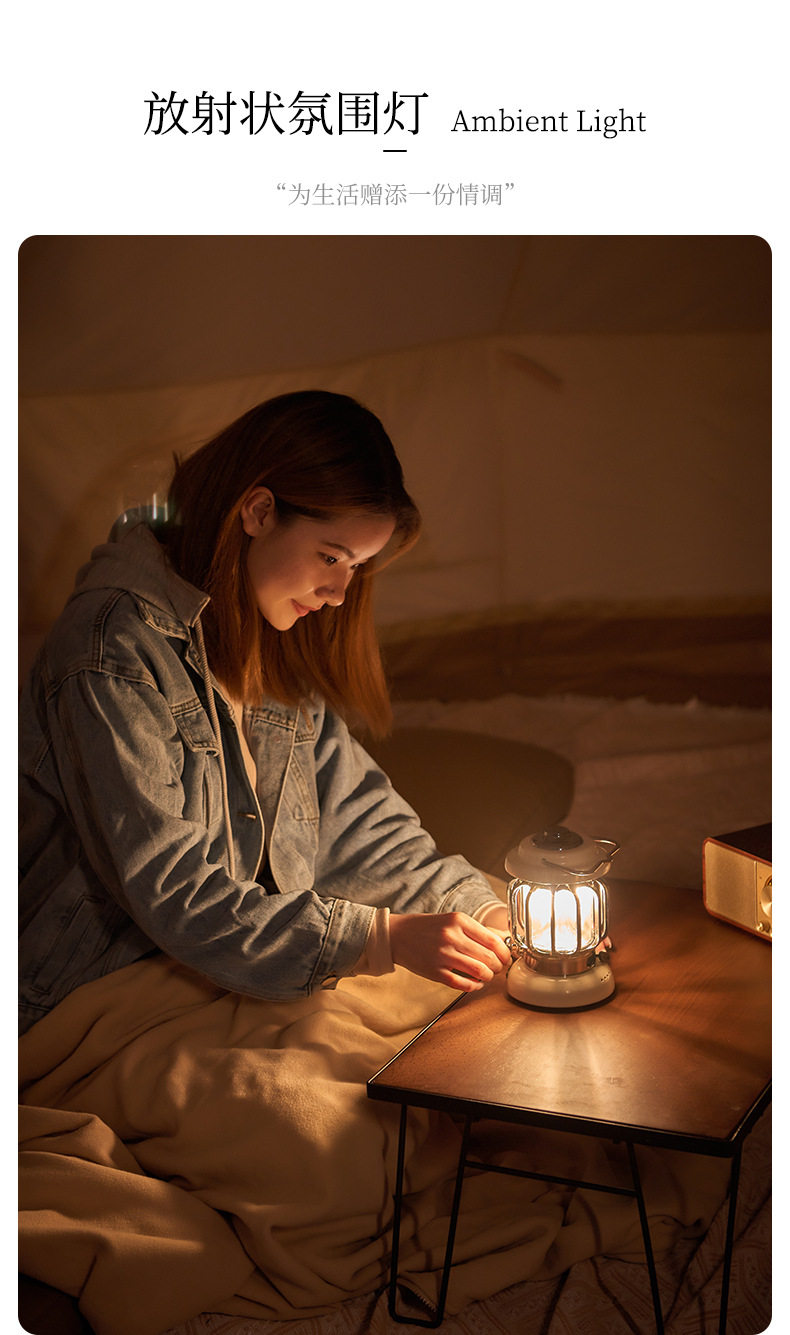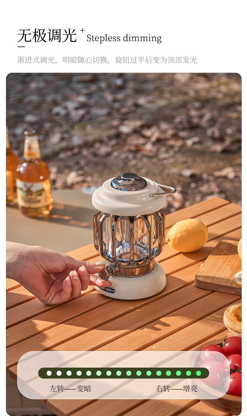 • 캠핑 레트로 램프 - 아이보리 화이트 [충전식 버전] 긴 배터리 수명/무단계 디밍