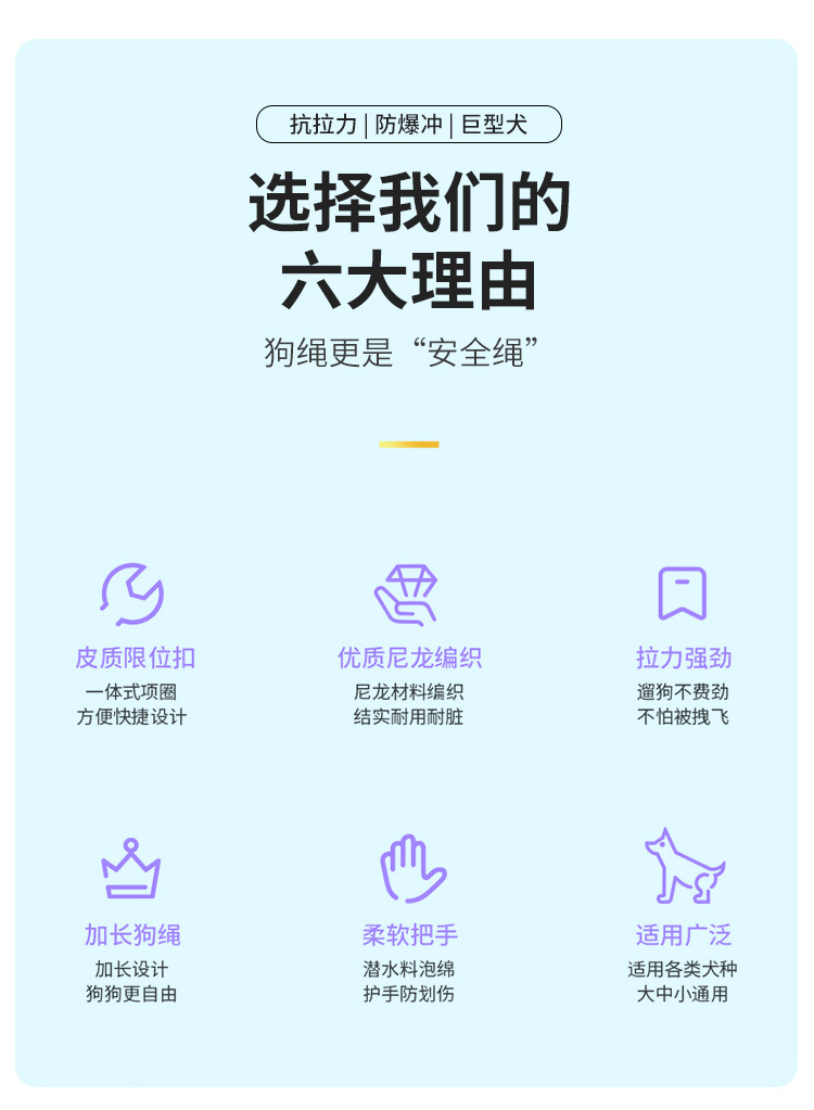 持久耐用,制作结构安全合理,拉力强劲,超级牢固,做工精细,外观简洁大气,精致缝线,每一条牵引都是用心制作。