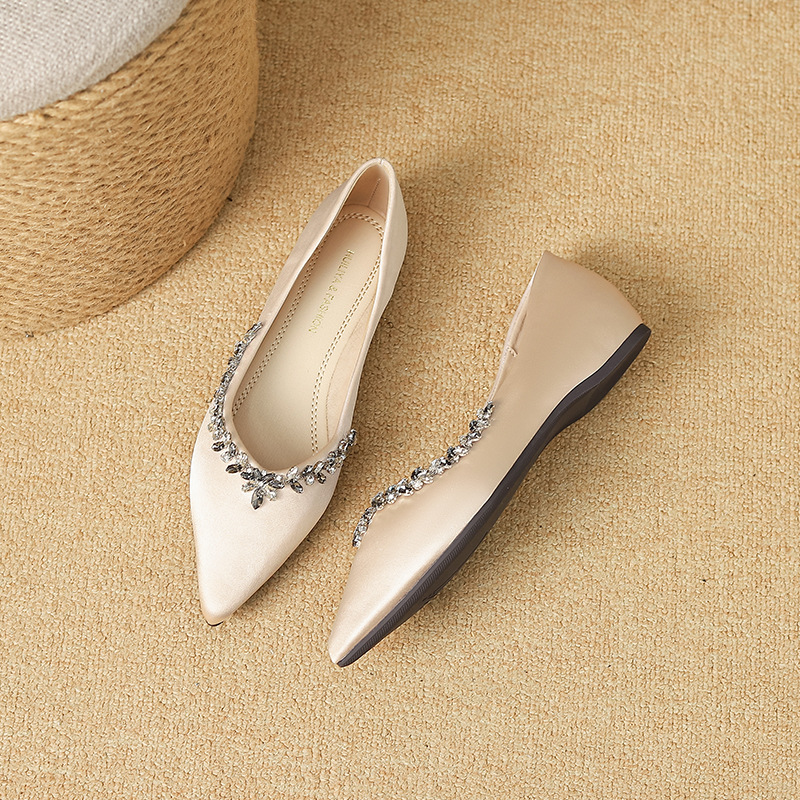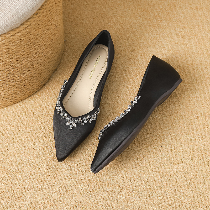 W1022-70 여성용 플랫 슈즈 2026년 여름 신상품 워터다이아몬드 요정 슈즈 포인티드 토 싱글 슈즈 여성 플랫힐 신부 슈즈스토어 가기
