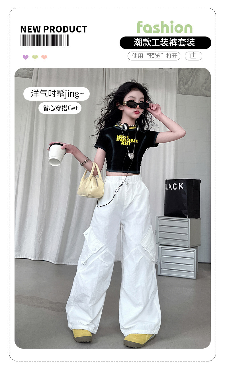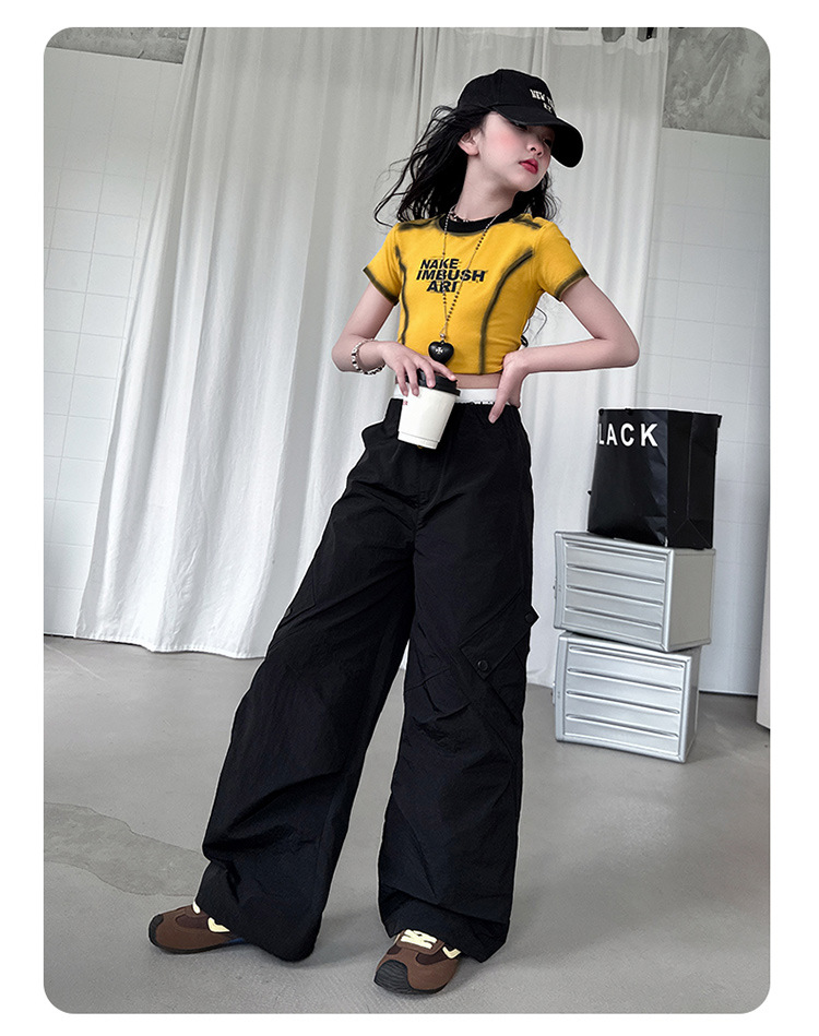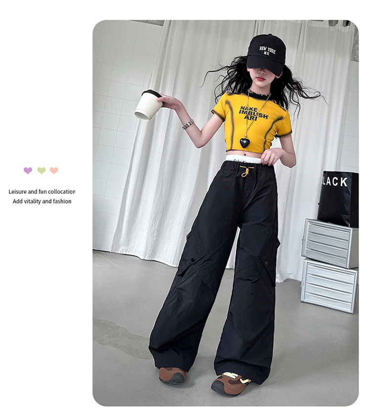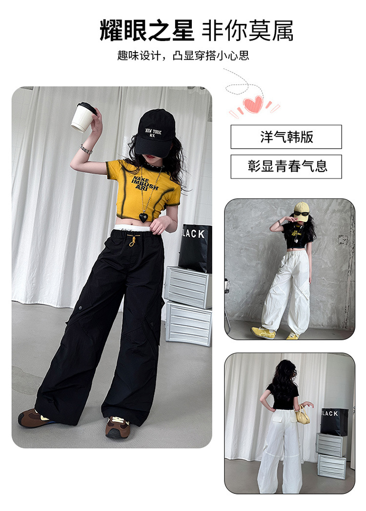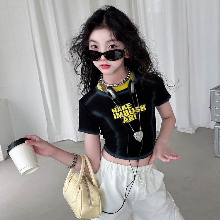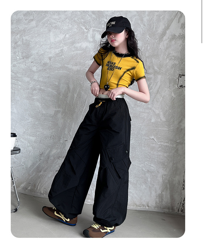 국경 간 여름 새로운 아동복 소녀 슬림 반팔 티셔츠, 어린이 재즈 댄스 공연 의류 세트 조수스토어 가기