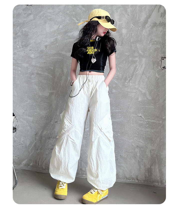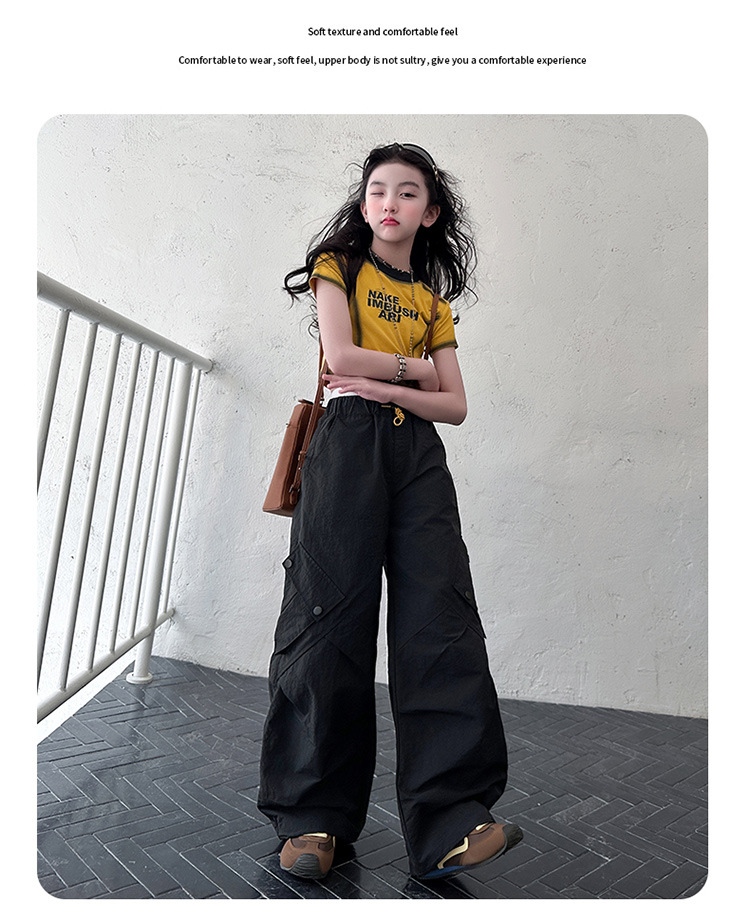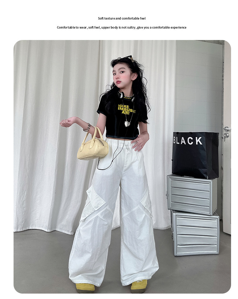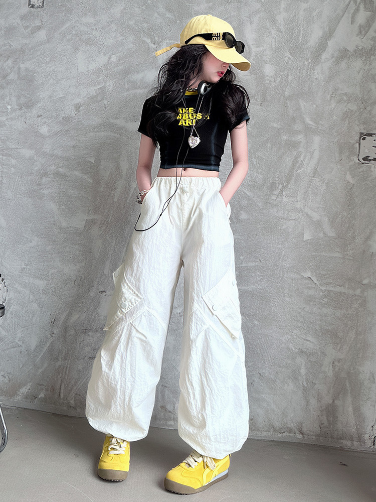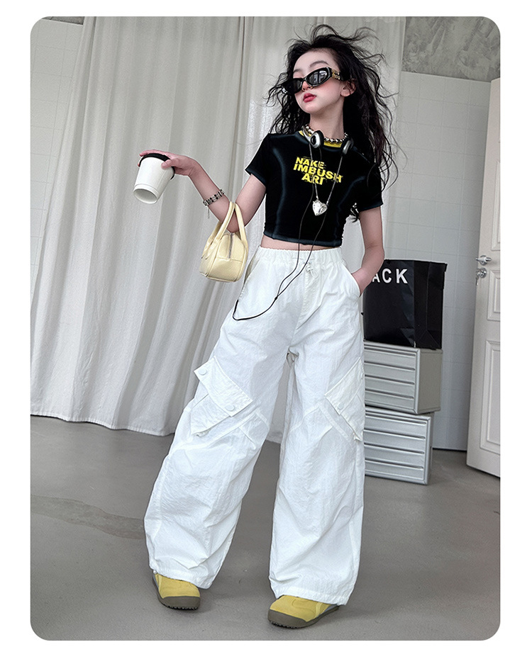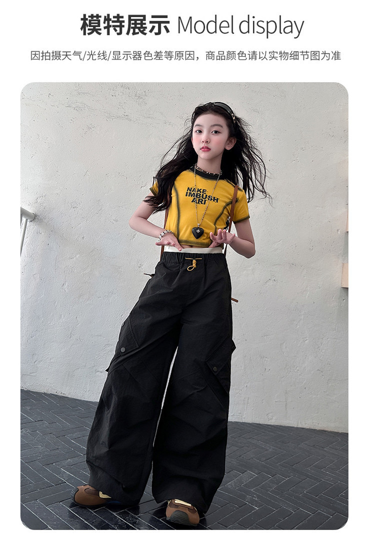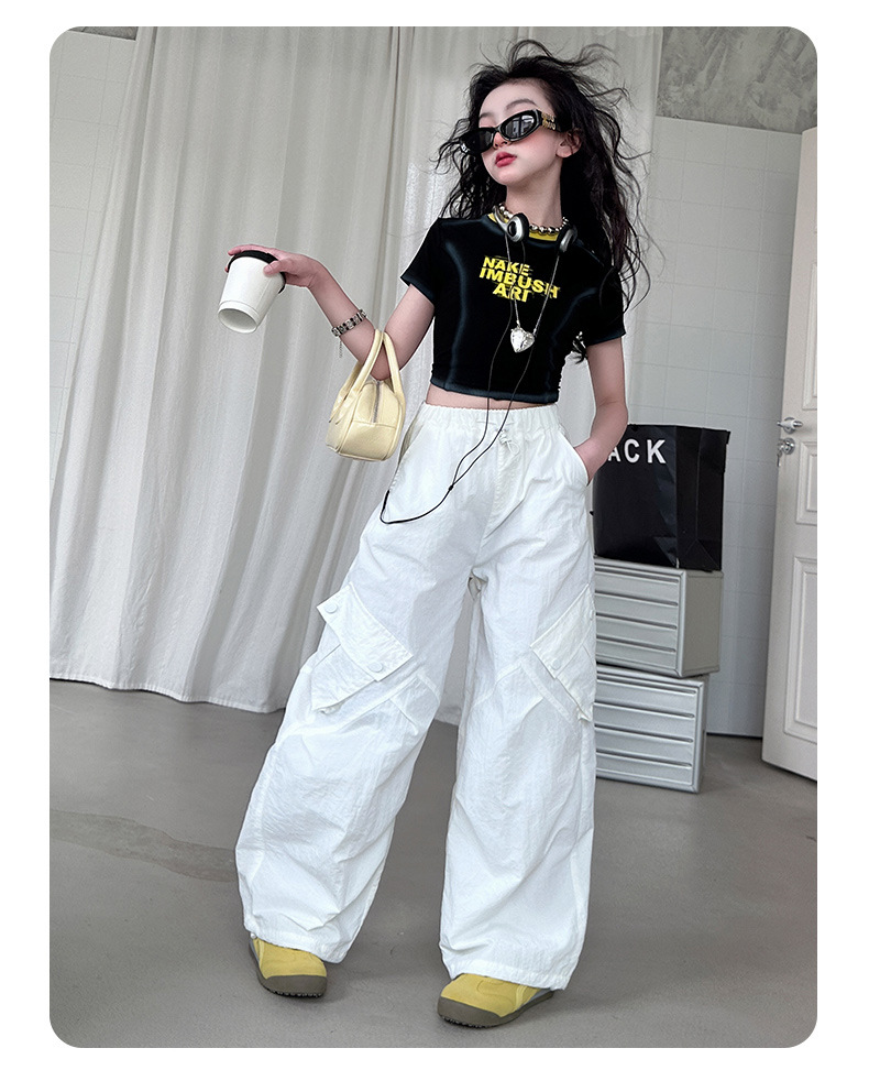 국경 간 여름 새로운 아동복 소녀 슬림 반팔 티셔츠, 어린이 재즈 댄스 공연 의류 세트 조수스토어 가기