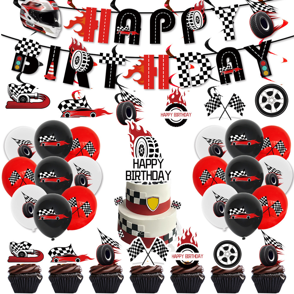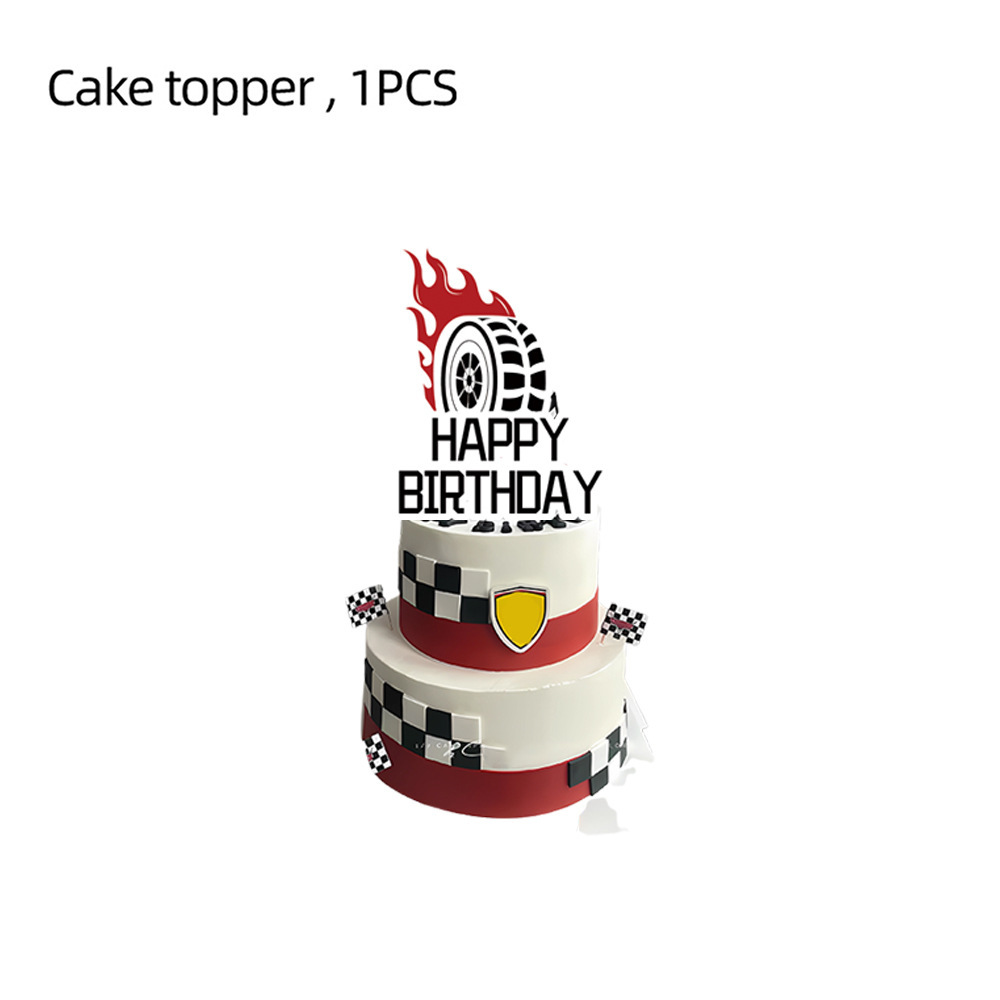 럭셔리카 로고 레이싱 테마 생일 파티 일회용 케이크 큰 삽입 행 풍선 교수형 플래그 파티 장식 용품스토어 가기