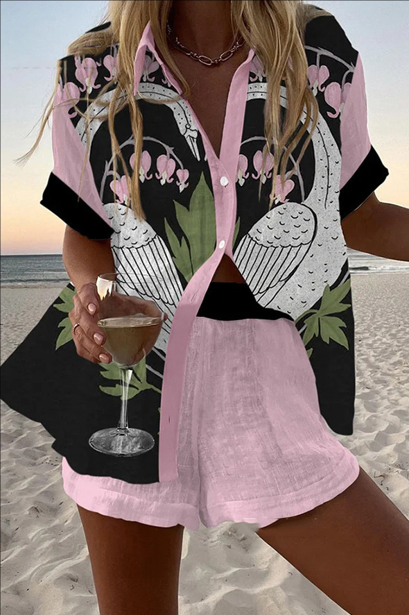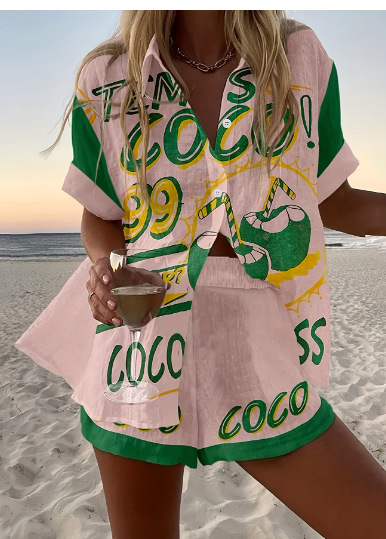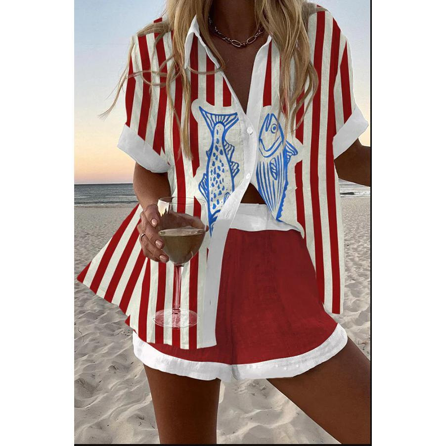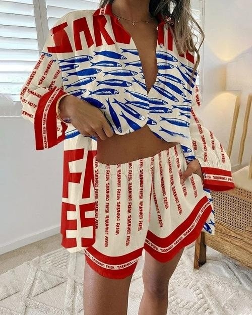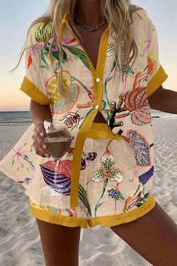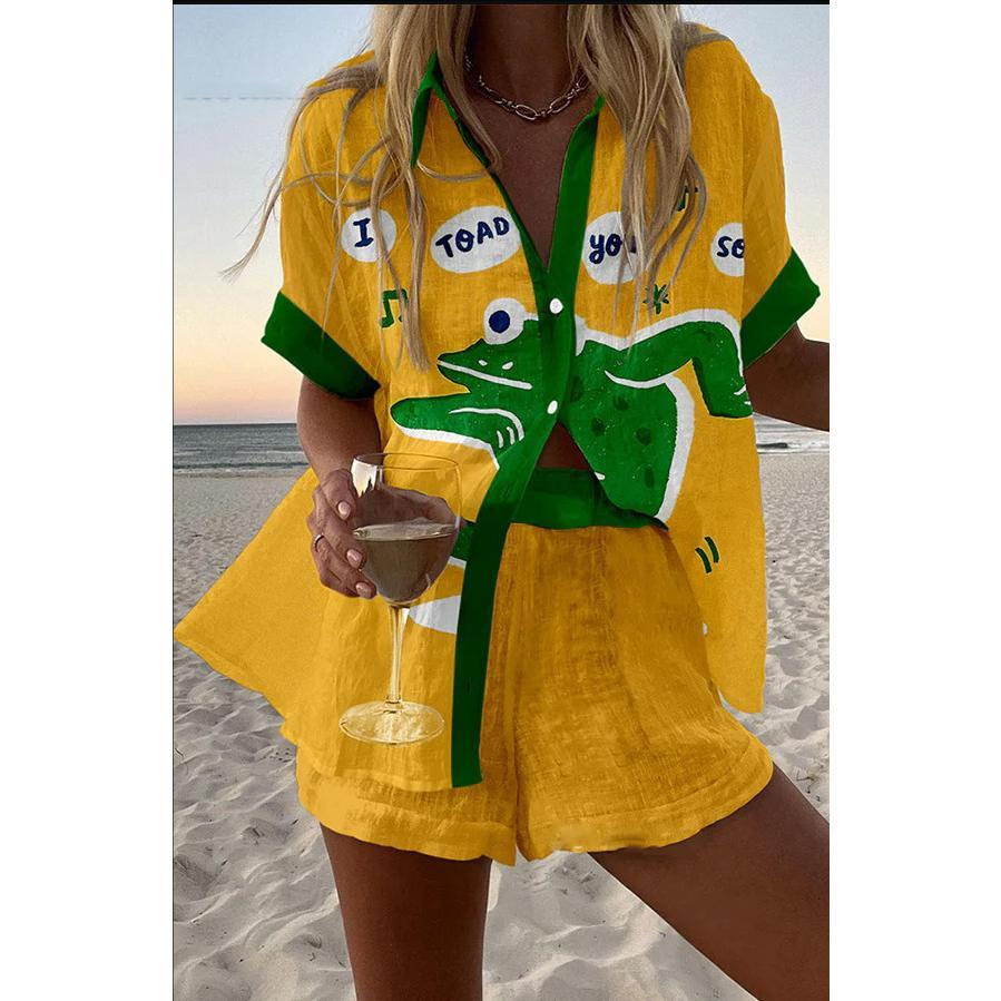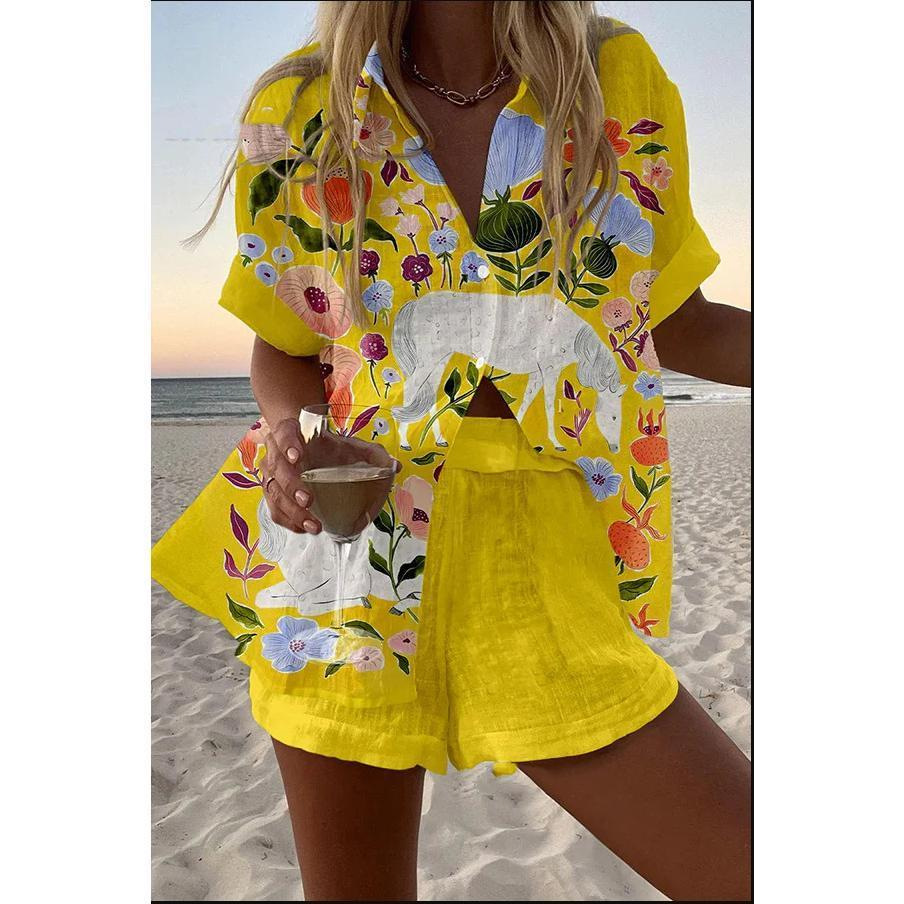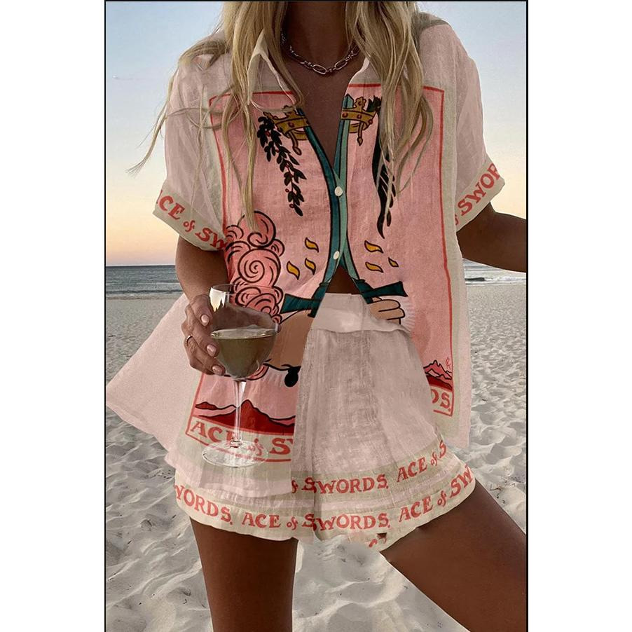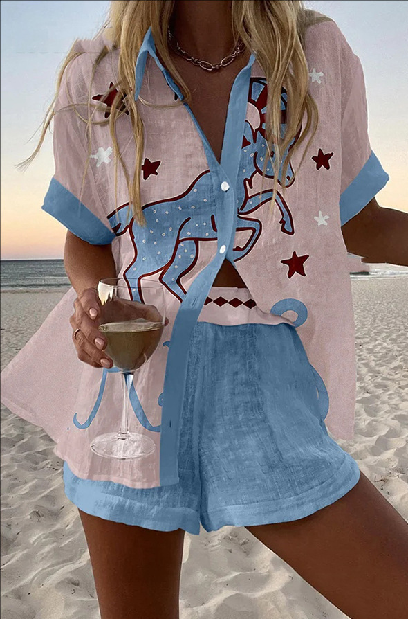 2025 봄과 여름 아마존 유럽과 미국 국경 패션 여성의 인쇄 느슨한 반팔 셔츠 반바지 POD 사용자 정의