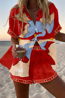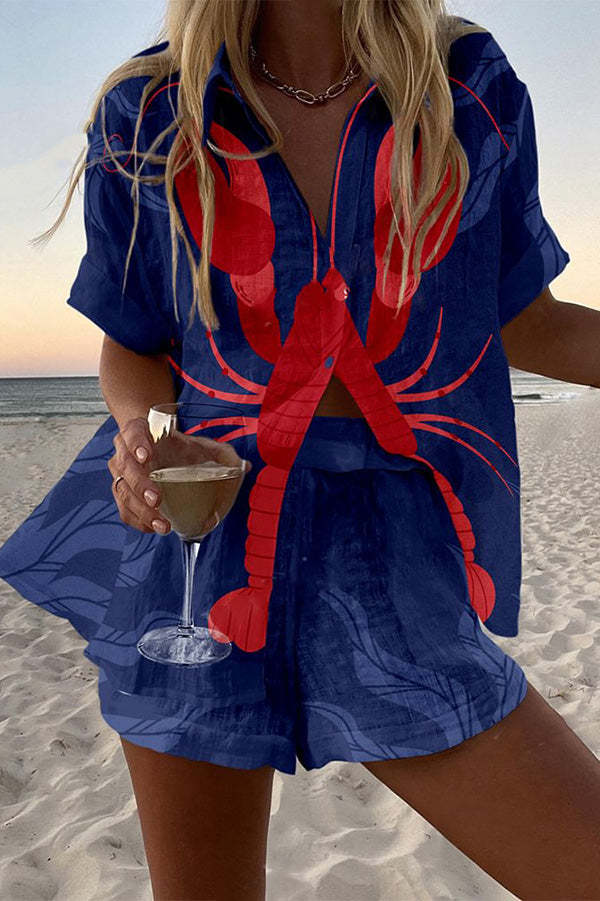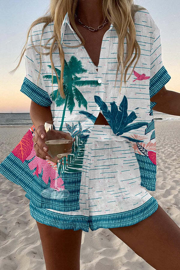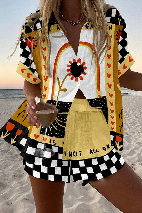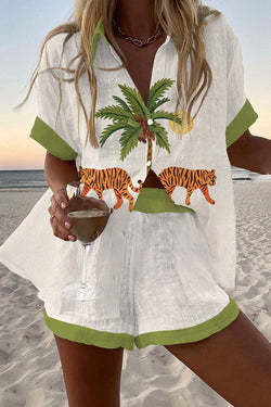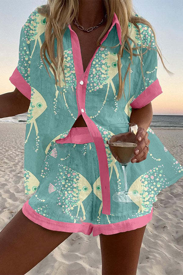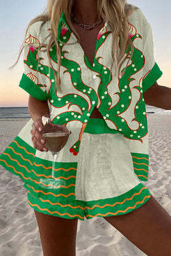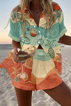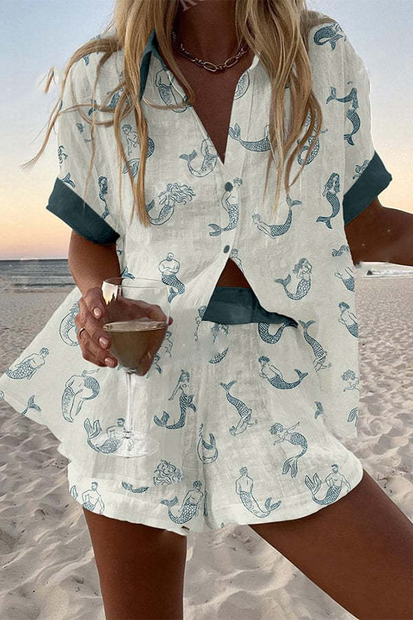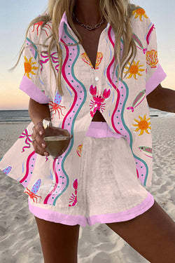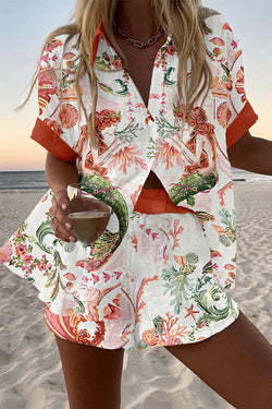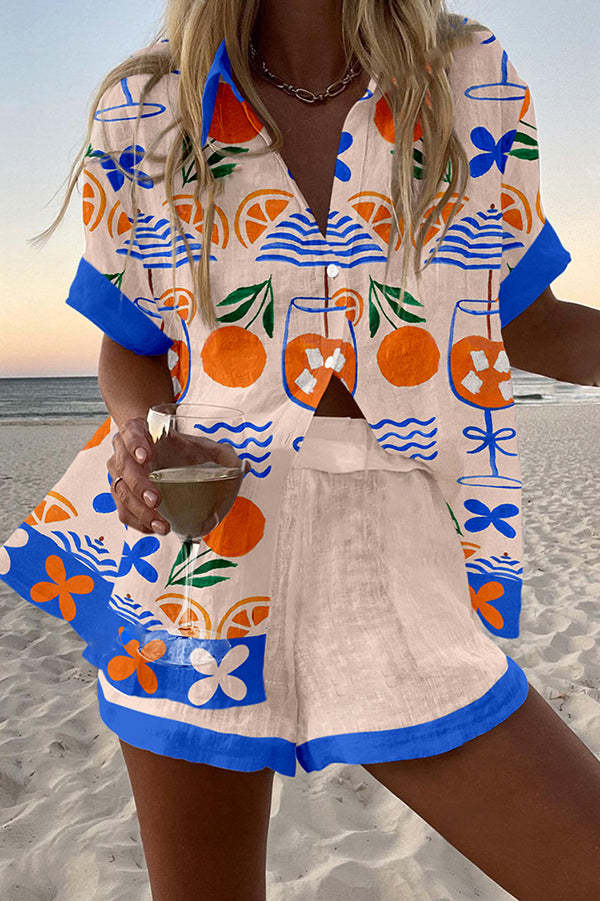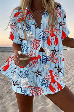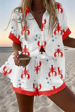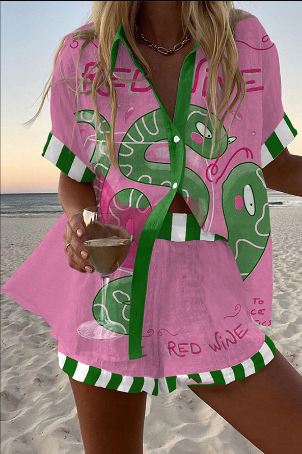 2025 봄과 여름 아마존 유럽과 미국 국경 패션 여성의 인쇄 느슨한 반팔 셔츠 반바지 POD 사용자 정의