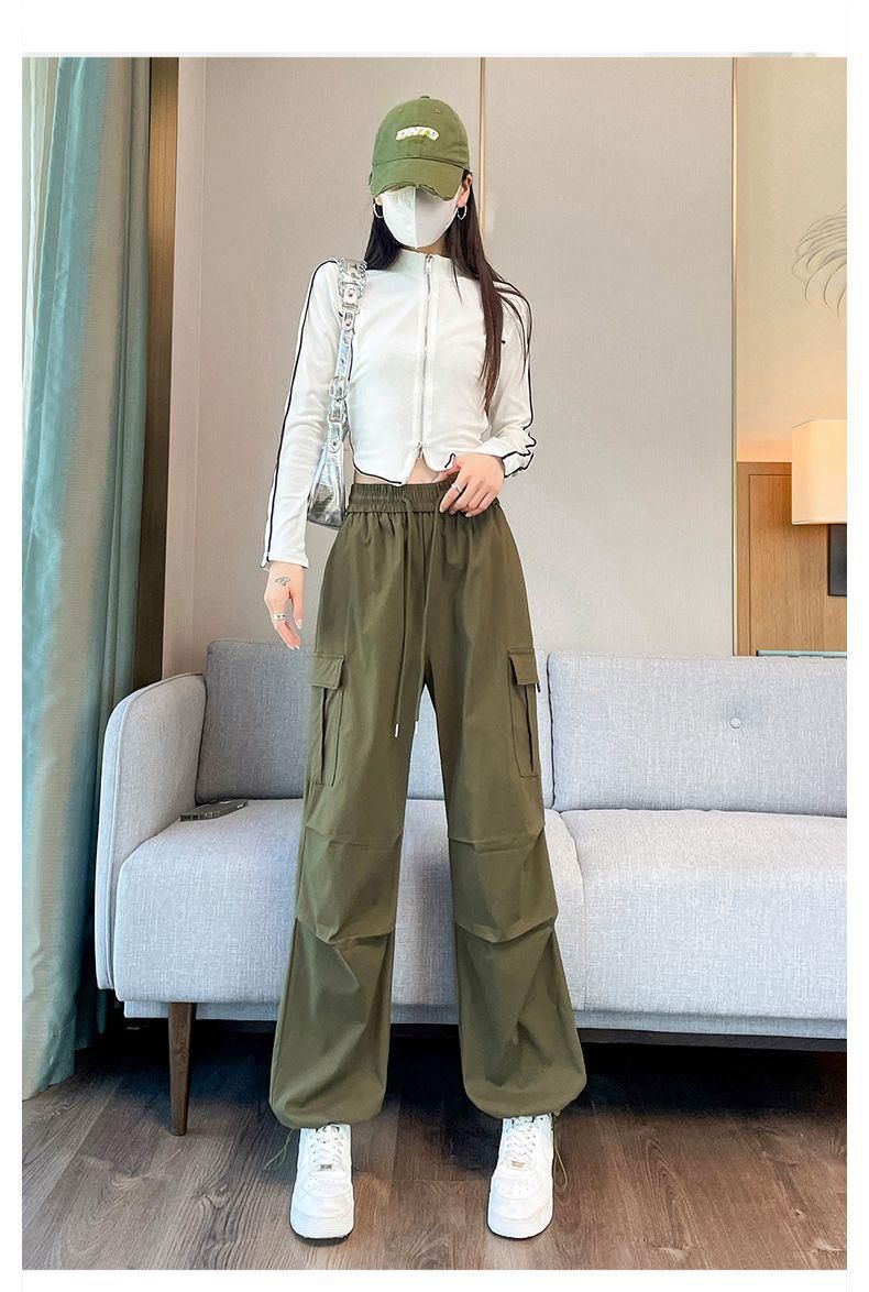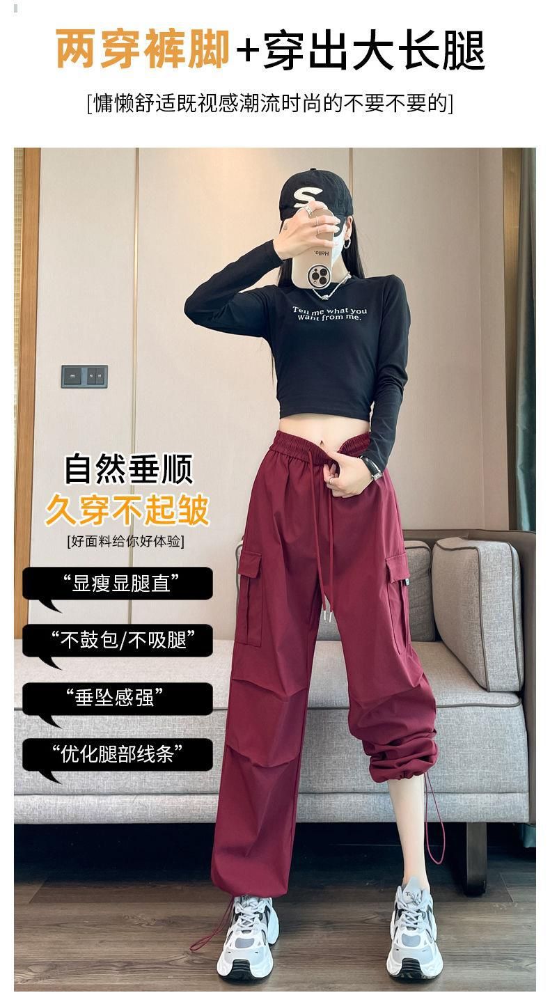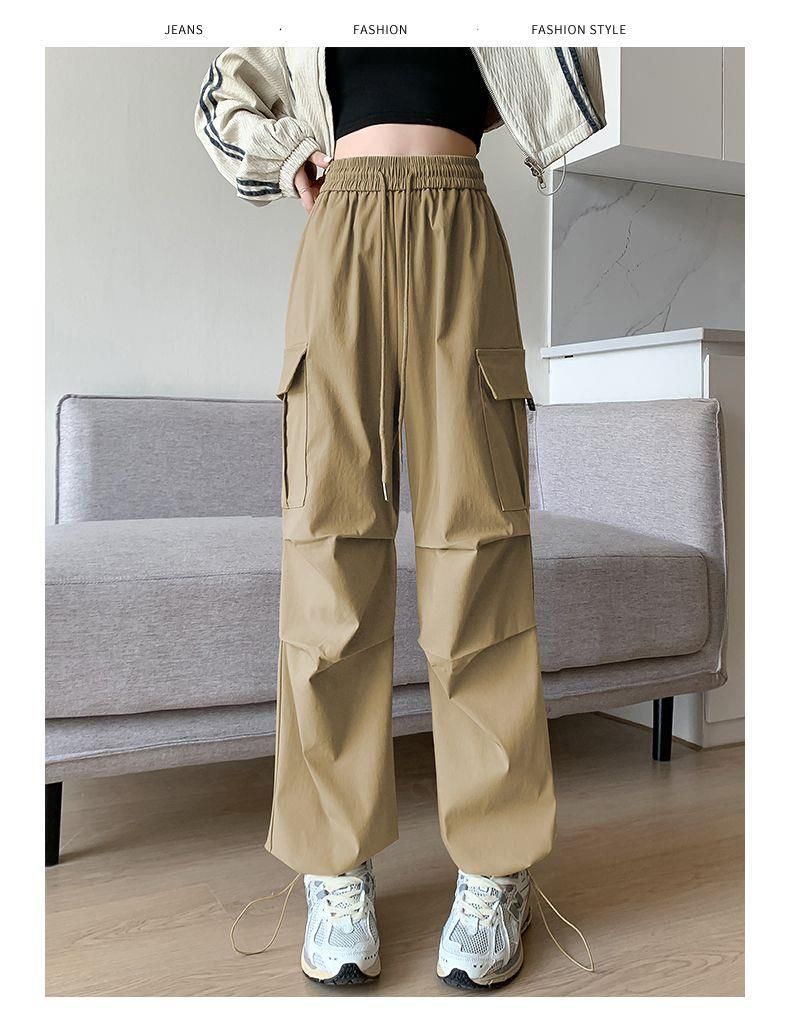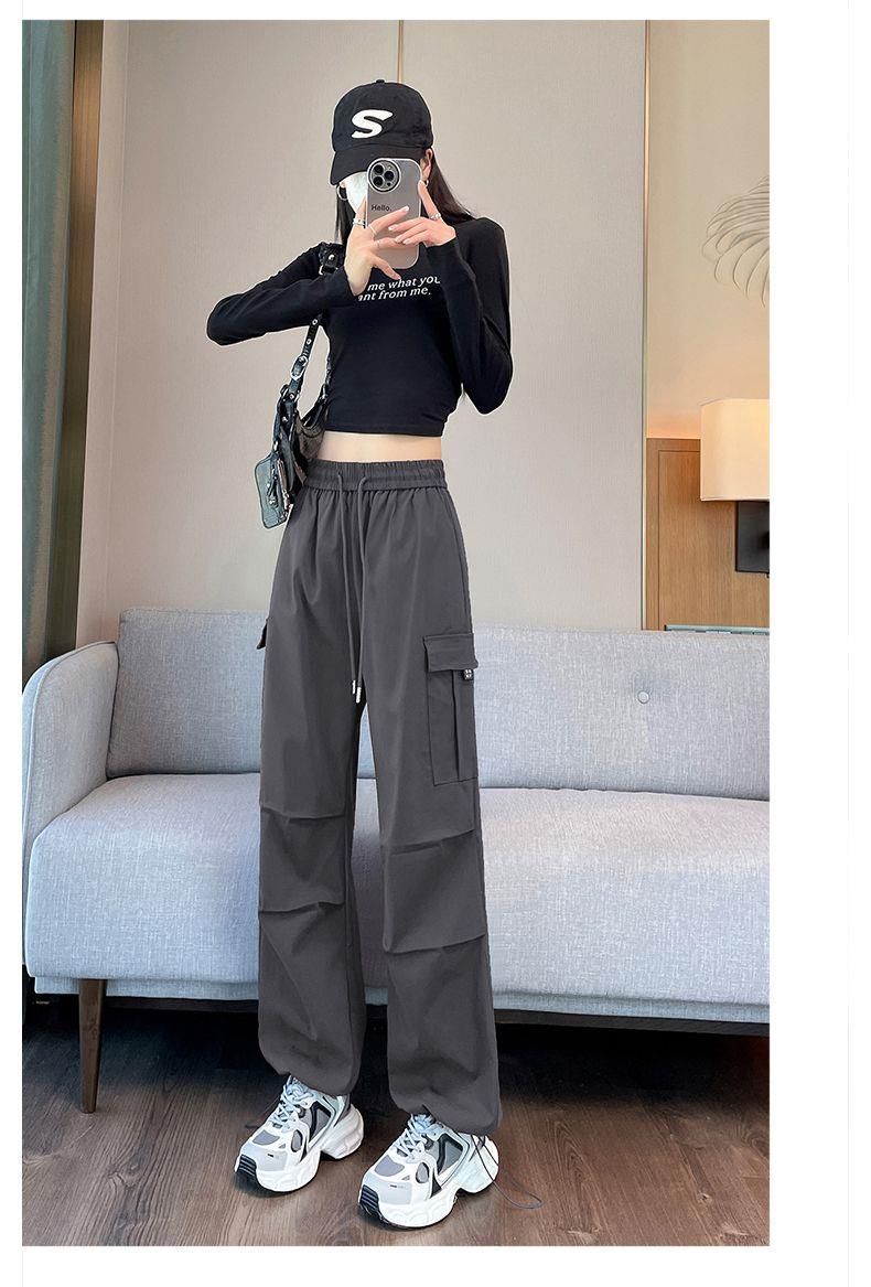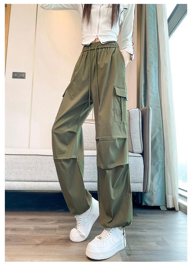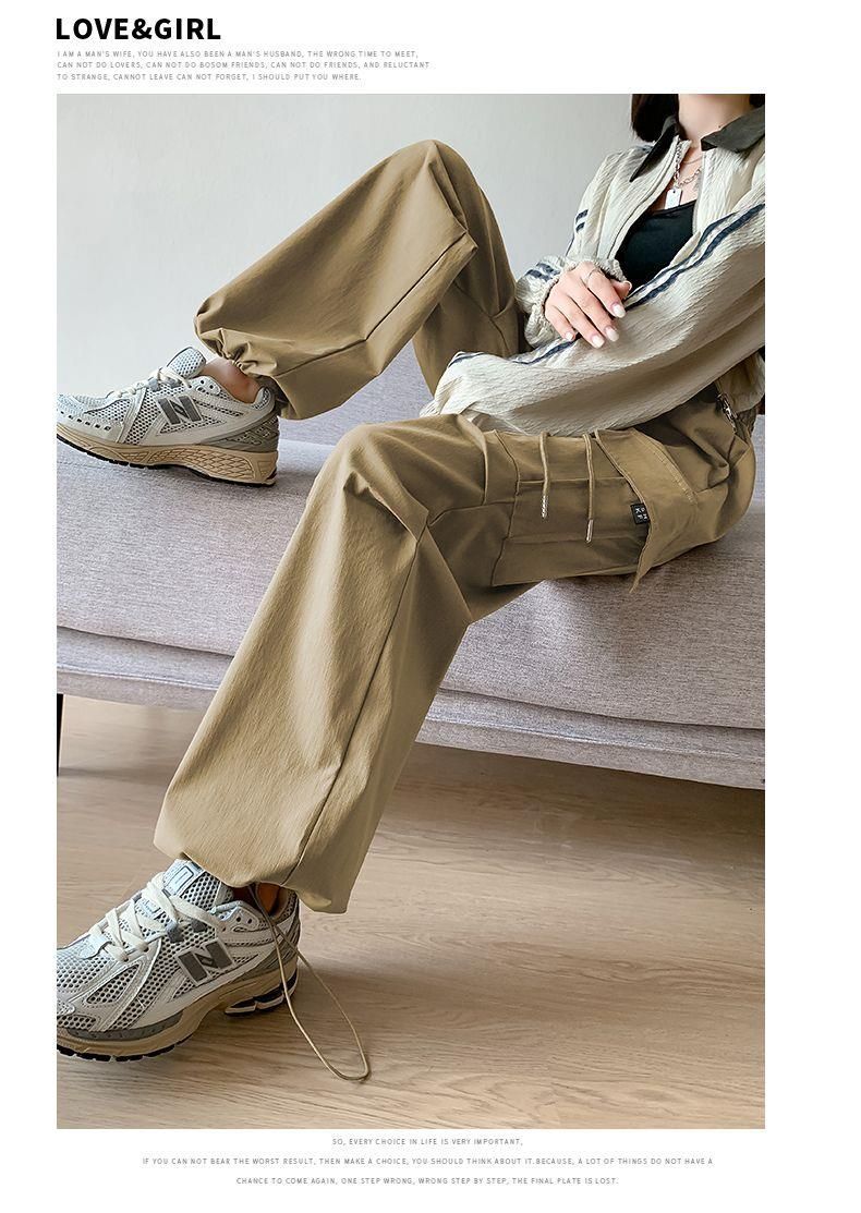 여름 여성용 신형 아메리칸 오버올, 얇은 하이웨이스트 드로스트링 스트레이트 캐주얼 속건성 다용도 스포츠 등산 바지스토어 가기