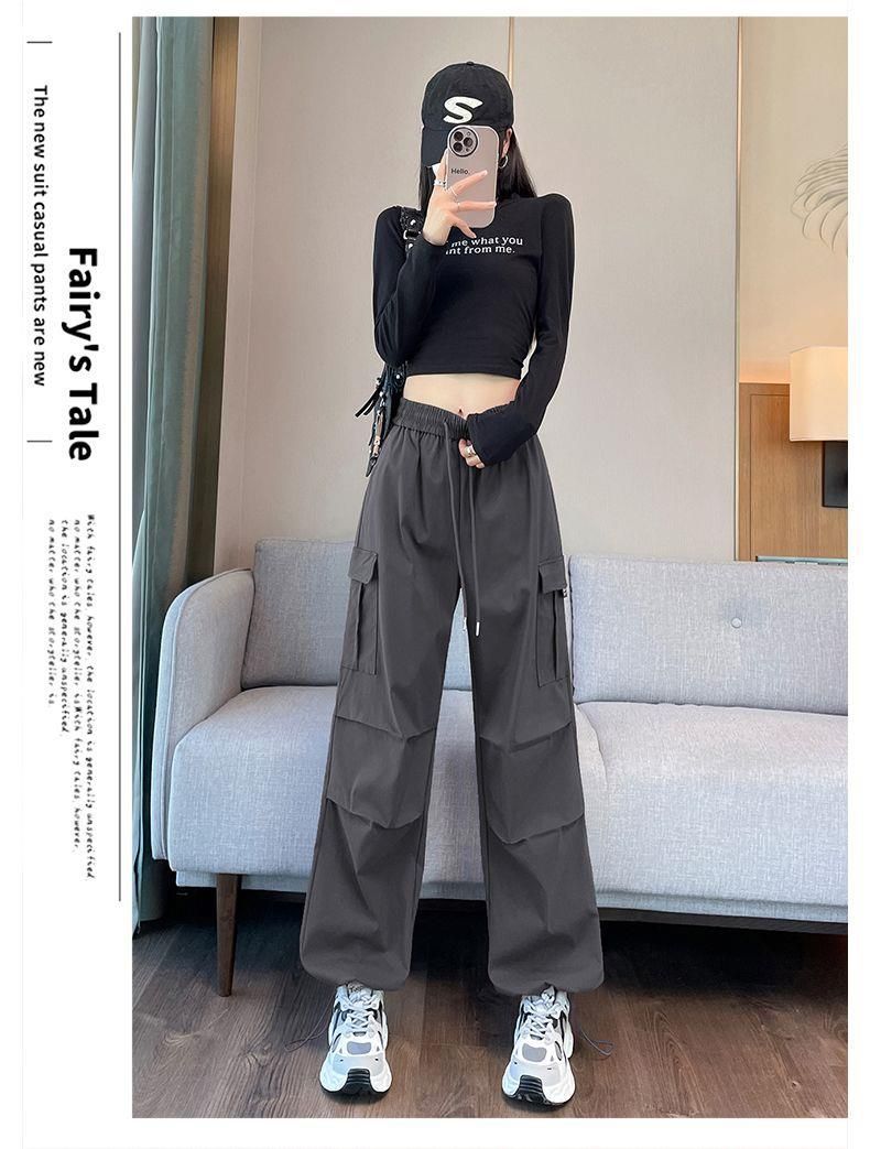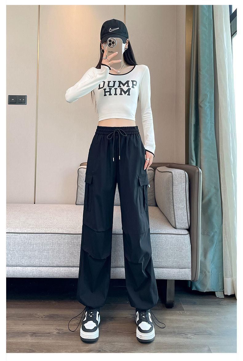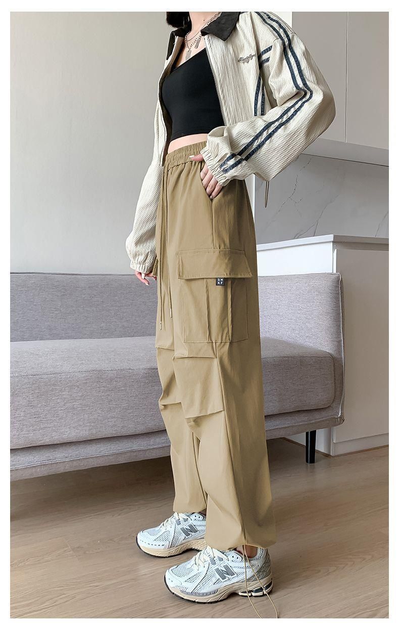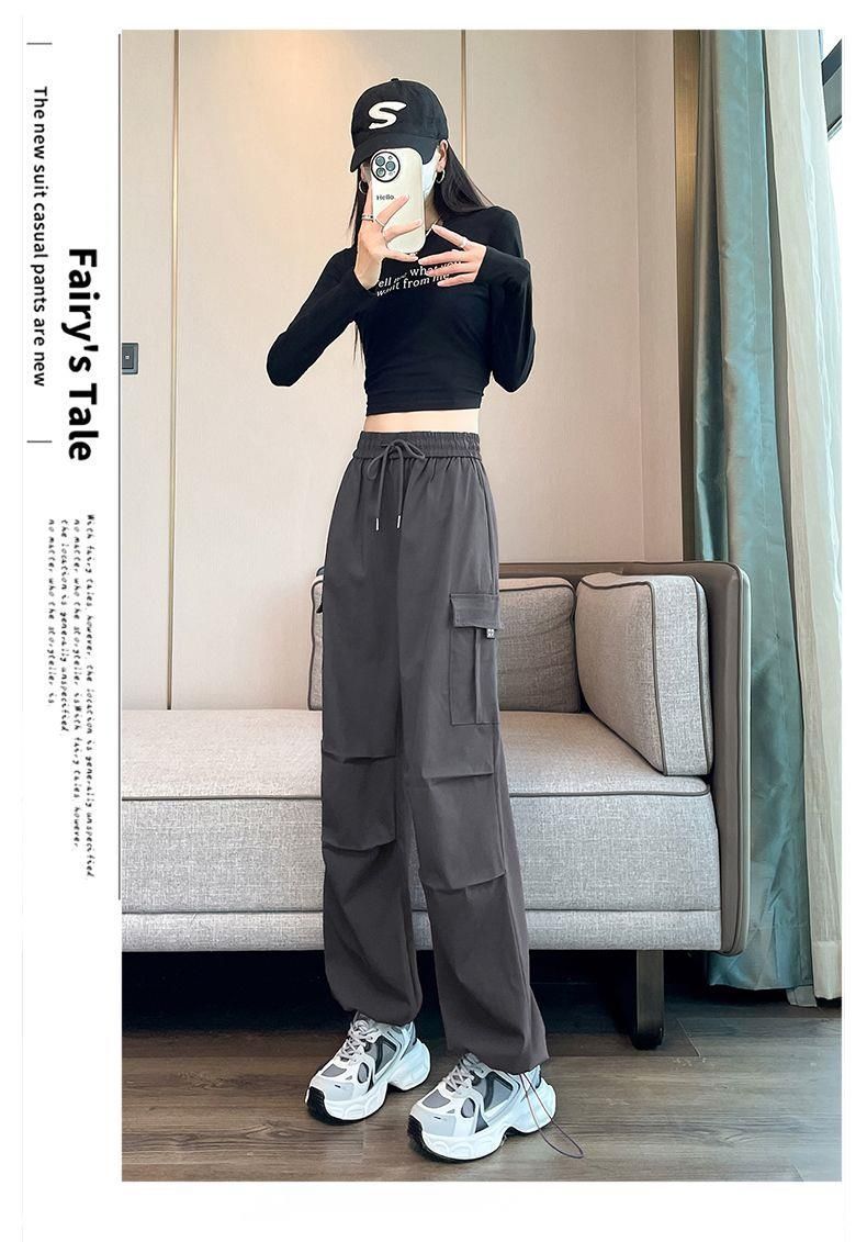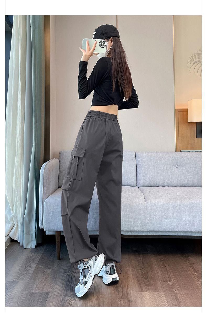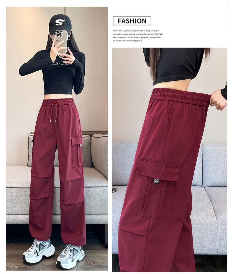 여름 여성용 신형 아메리칸 오버올, 얇은 하이웨이스트 드로스트링 스트레이트 캐주얼 속건성 다용도 스포츠 등산 바지스토어 가기