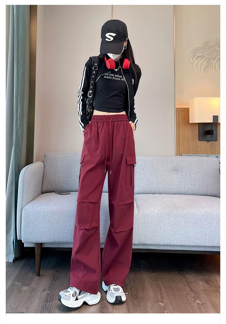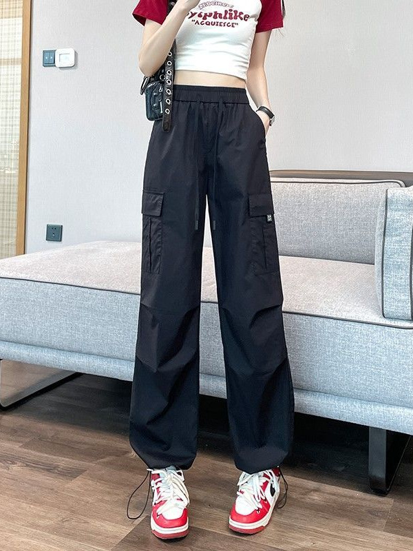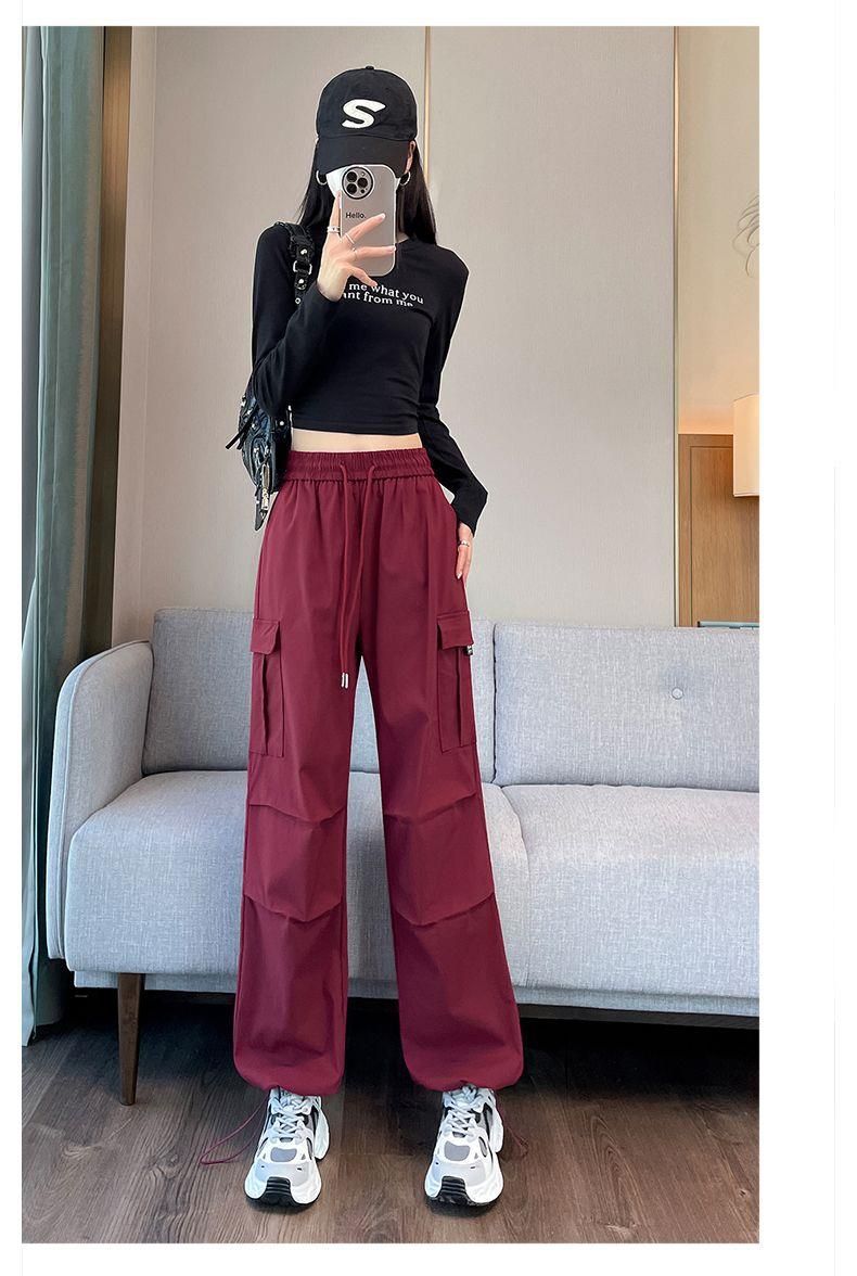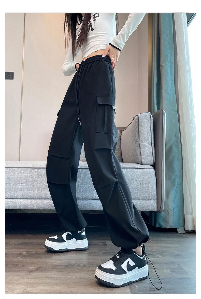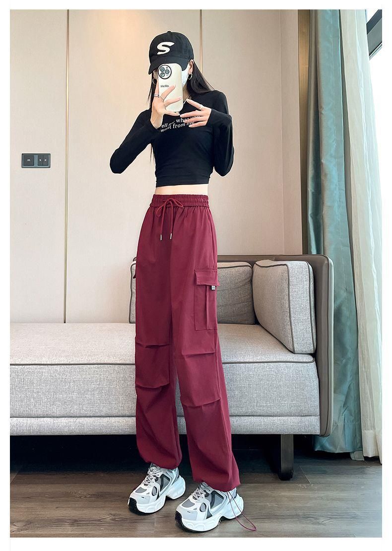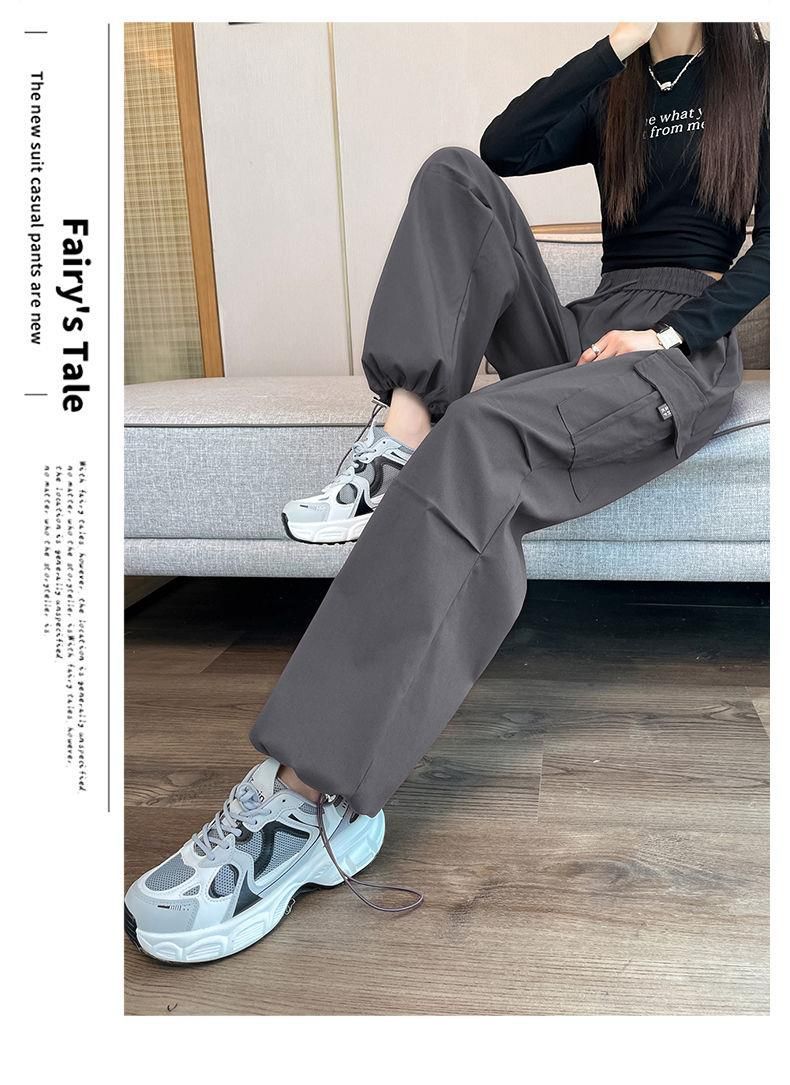 여름 여성용 신형 아메리칸 오버올, 얇은 하이웨이스트 드로스트링 스트레이트 캐주얼 속건성 다용도 스포츠 등산 바지스토어 가기