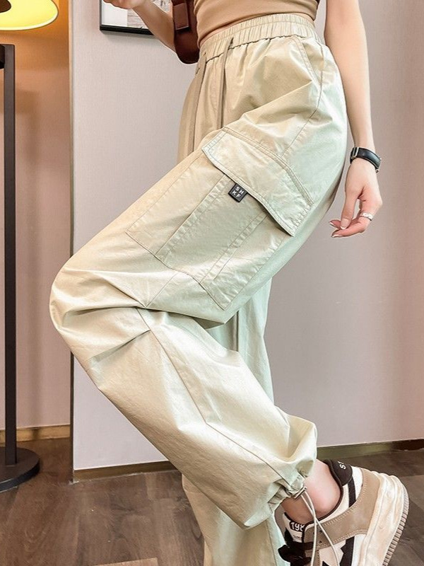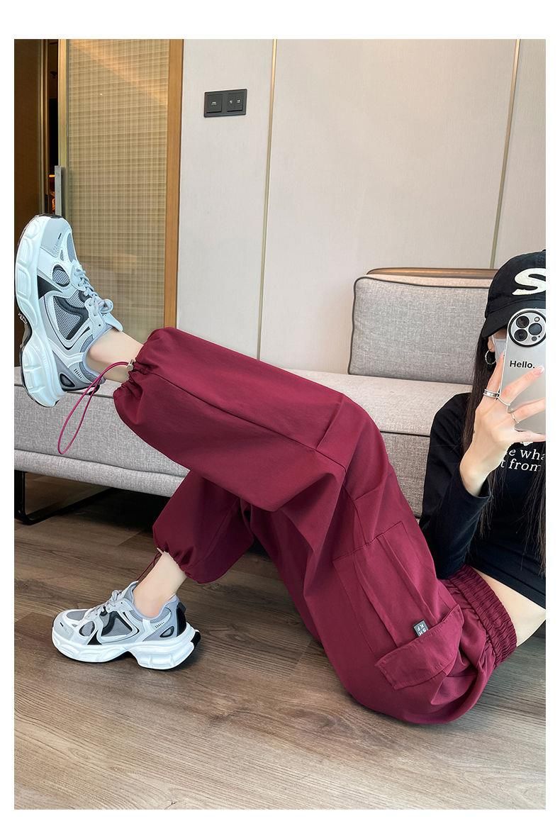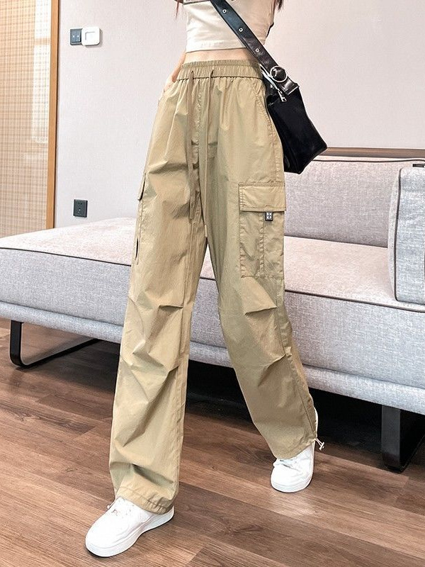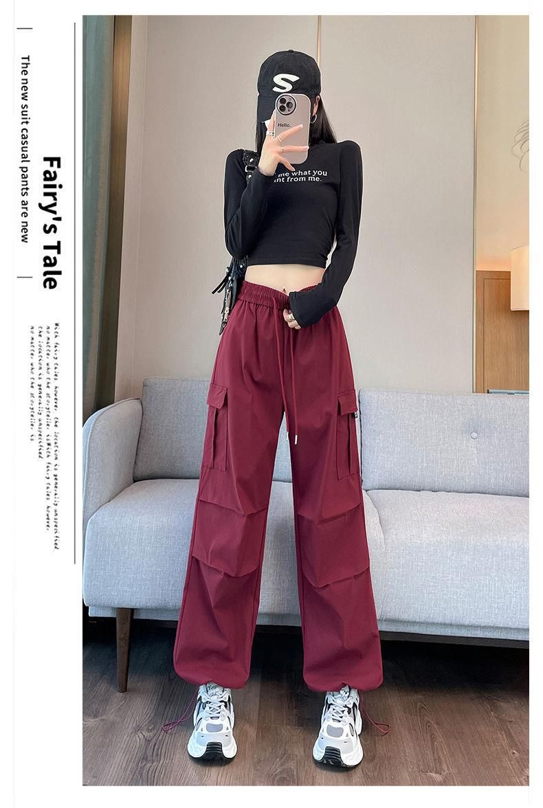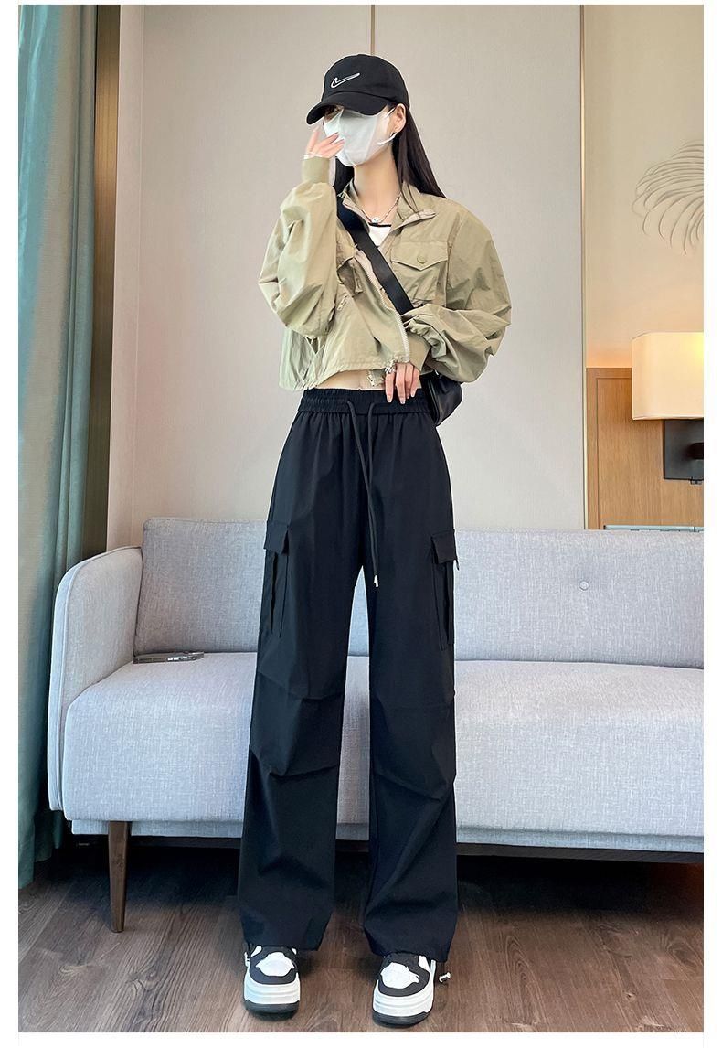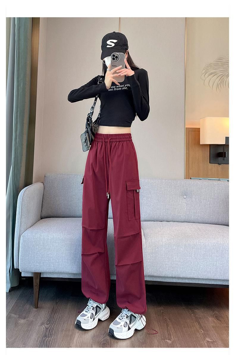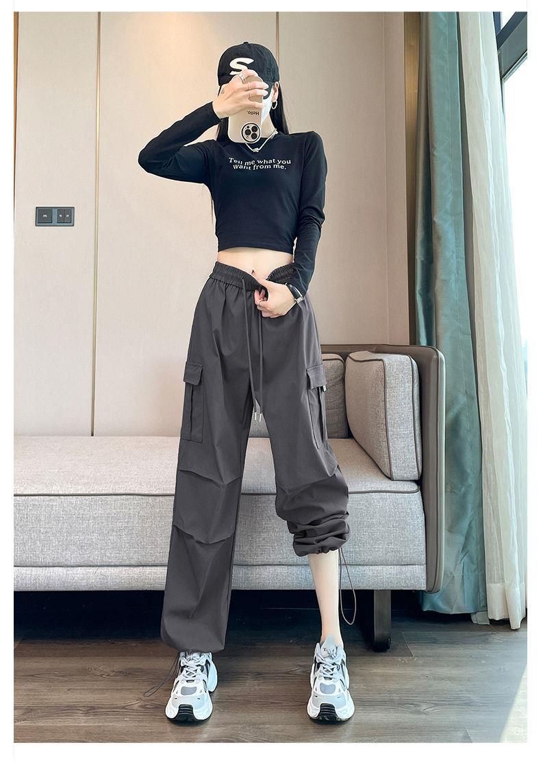 여름 여성용 신형 아메리칸 오버올, 얇은 하이웨이스트 드로스트링 스트레이트 캐주얼 속건성 다용도 스포츠 등산 바지스토어 가기