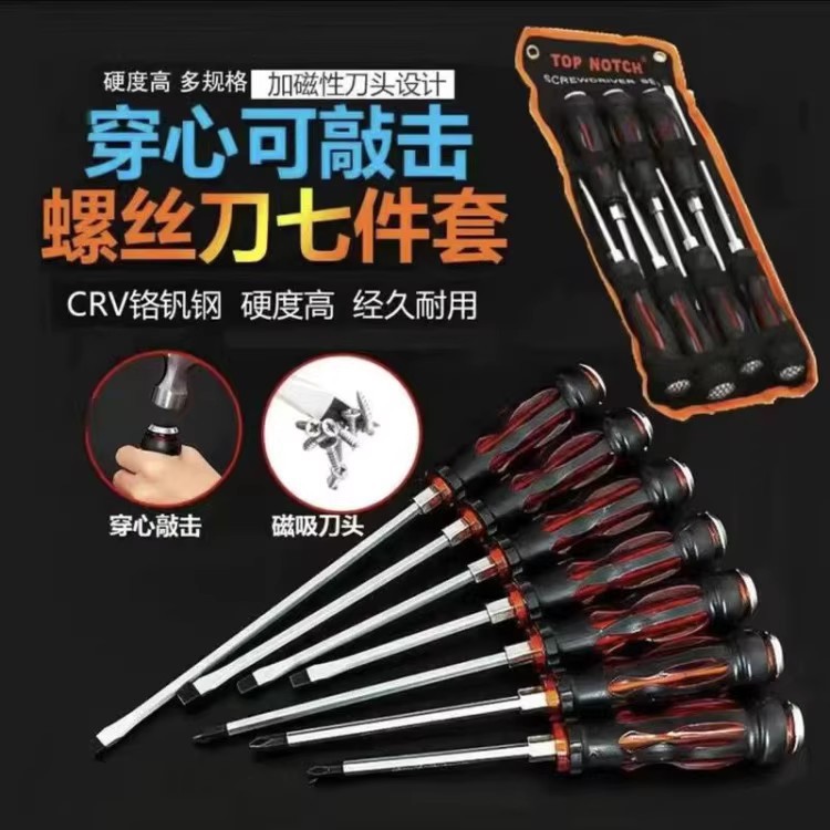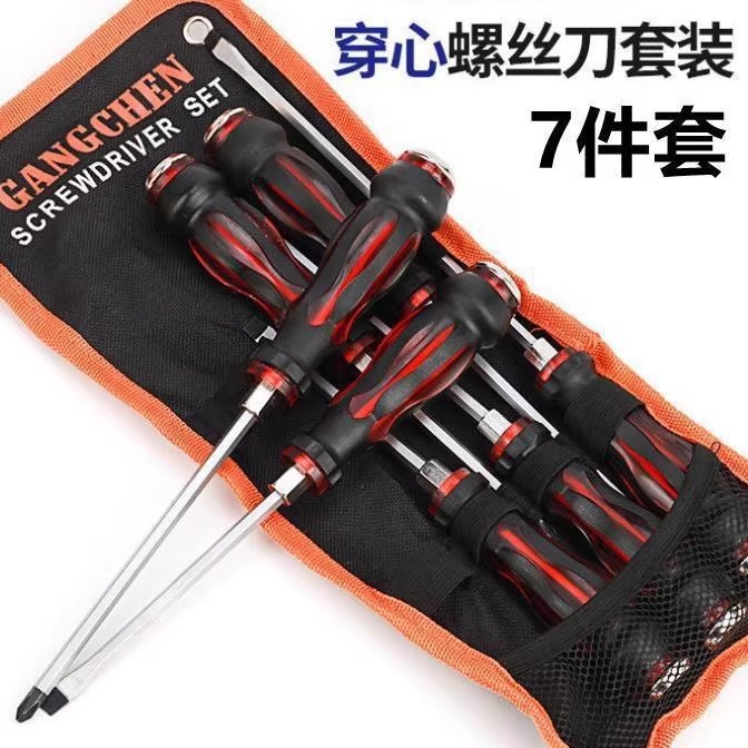 크롬 바나듐강 7종 세트, 펀치형 드라이버, 자석이 있는 초경량 십자형 일자형 드라이버 도구스토어 가기