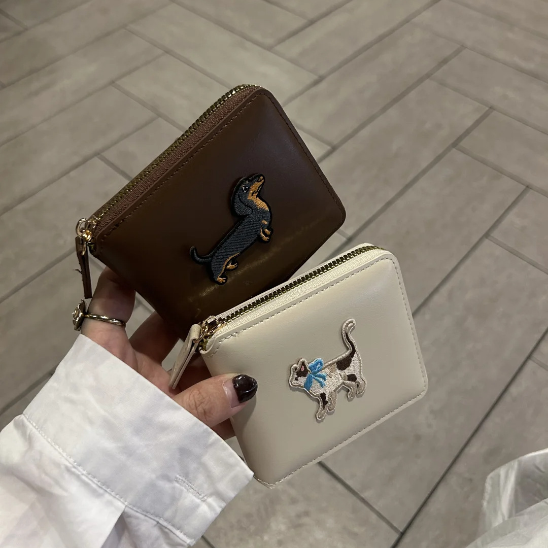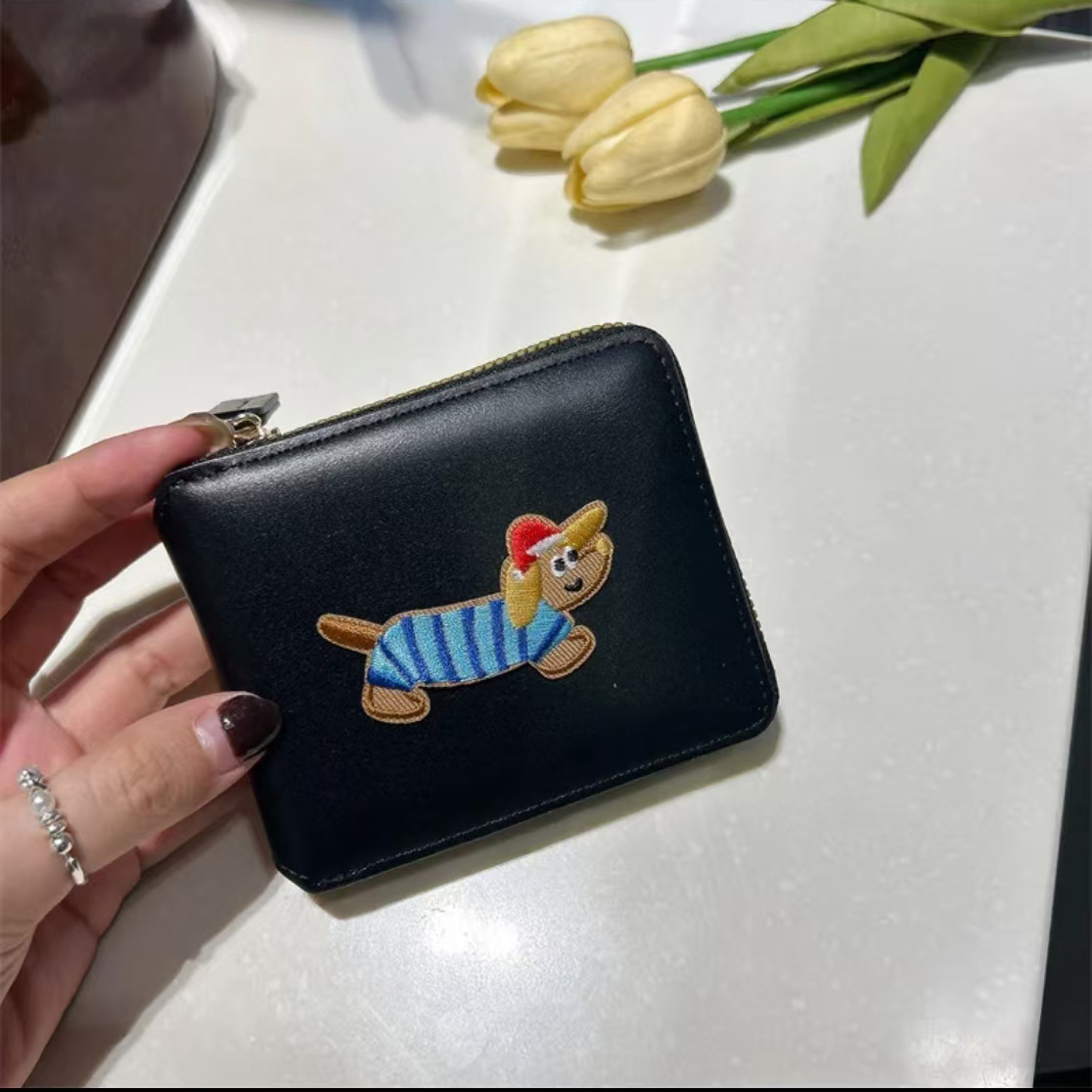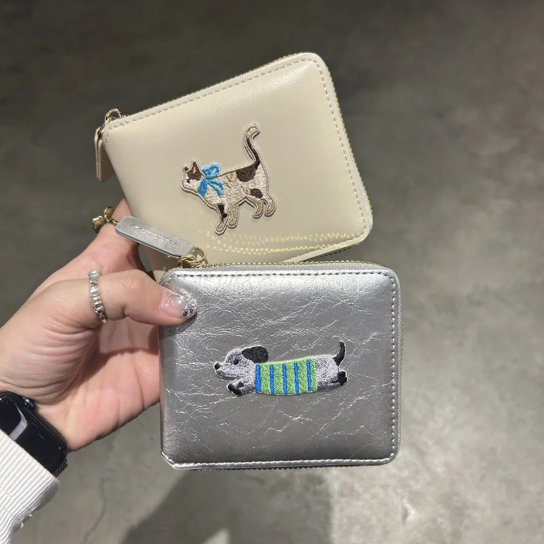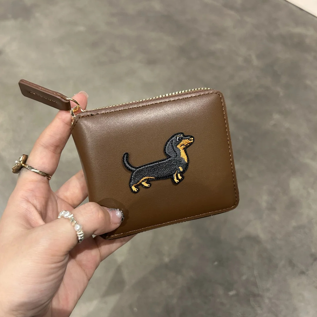 정사각형 가죽 질감 맞춤형 소형 지갑 동전 지갑 가죽 대용량 닥스훈트 광택 실버 카드 홀더 동전 가방스토어 가기